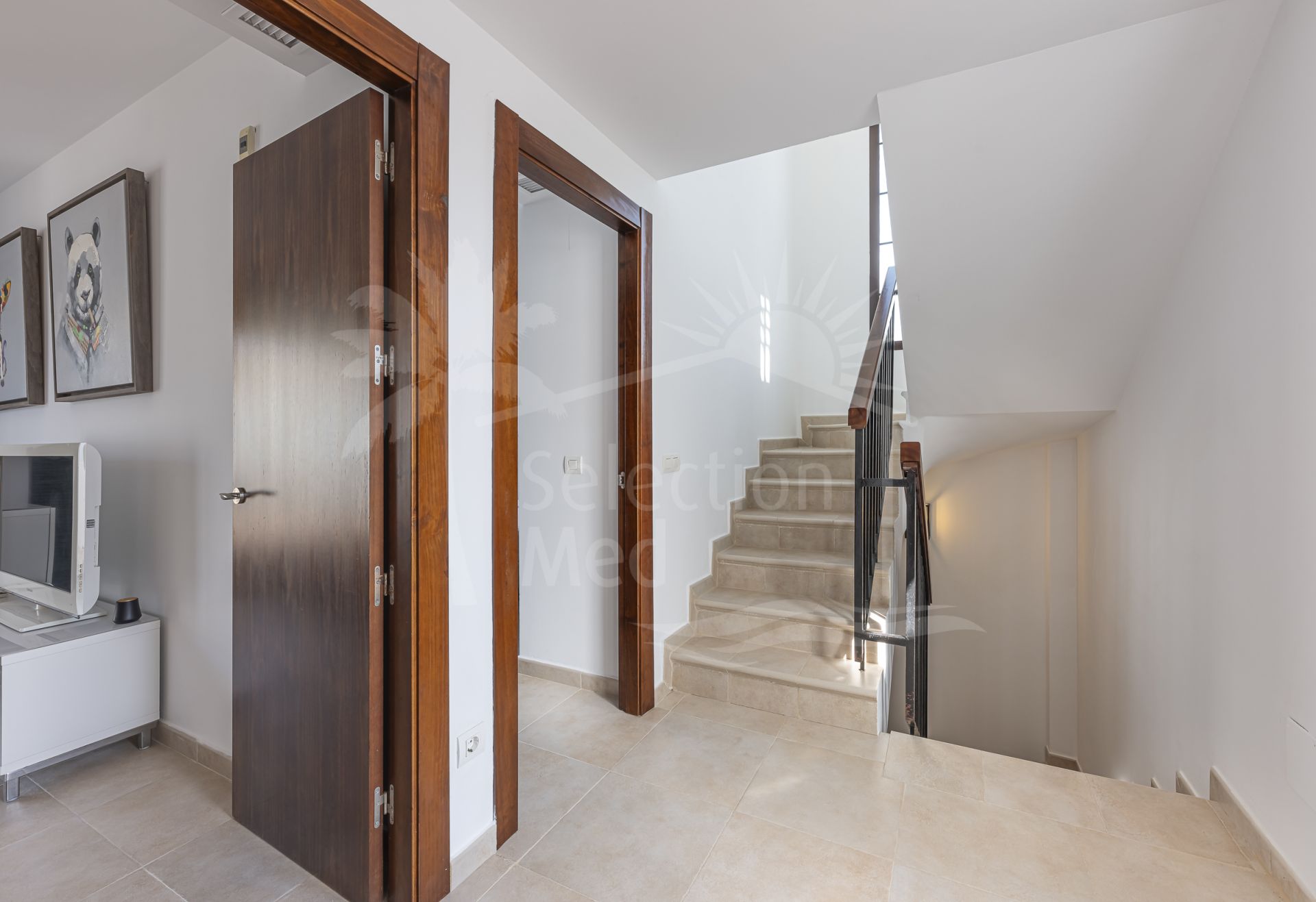 Immaculée face au sud triplex situé dans une communauté fermée à Altos de Los Monteros, Marbella Est. La propriété est répartie sur trois niveaux :