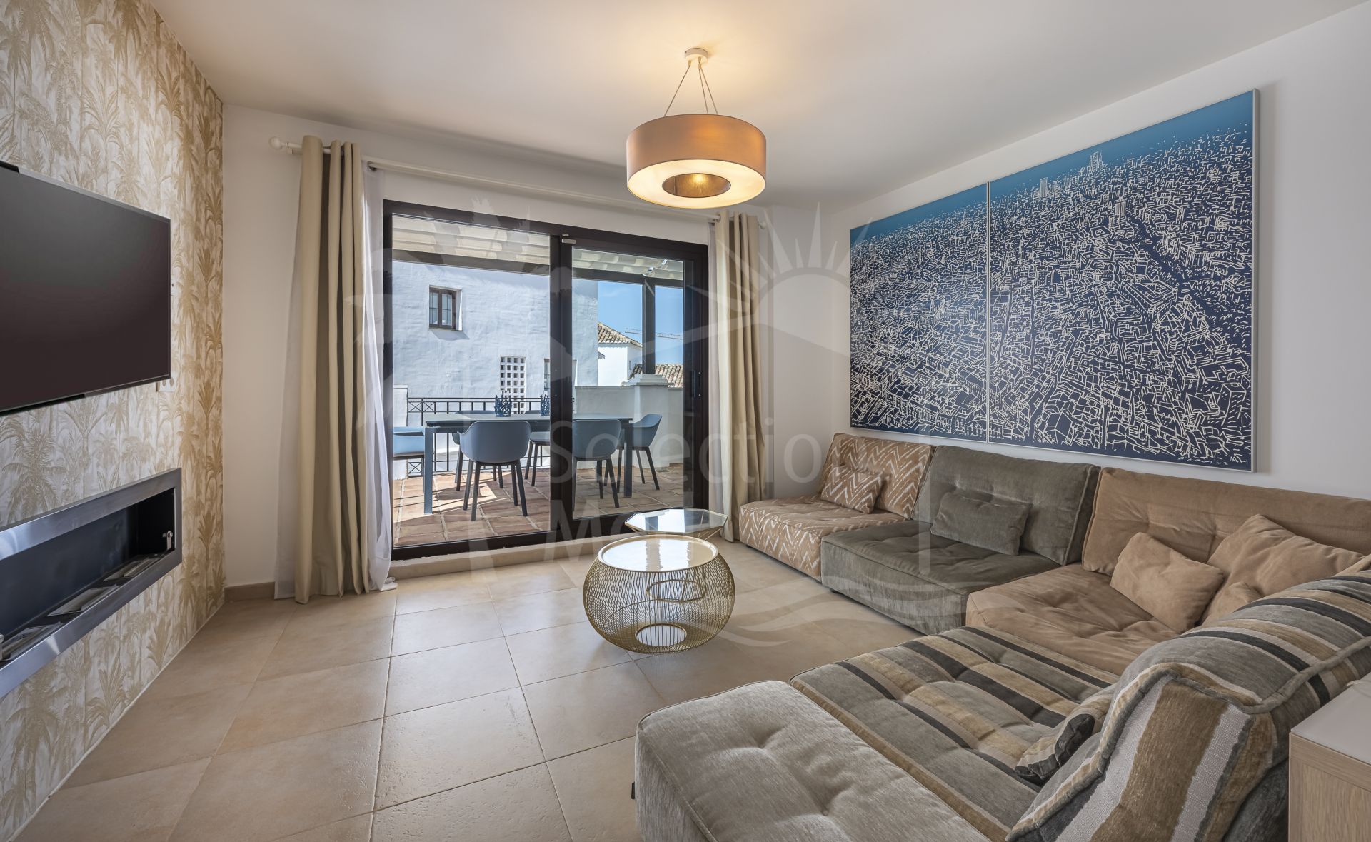 Immaculée face au sud triplex situé dans une communauté fermée à Altos de Los Monteros, Est Marbella