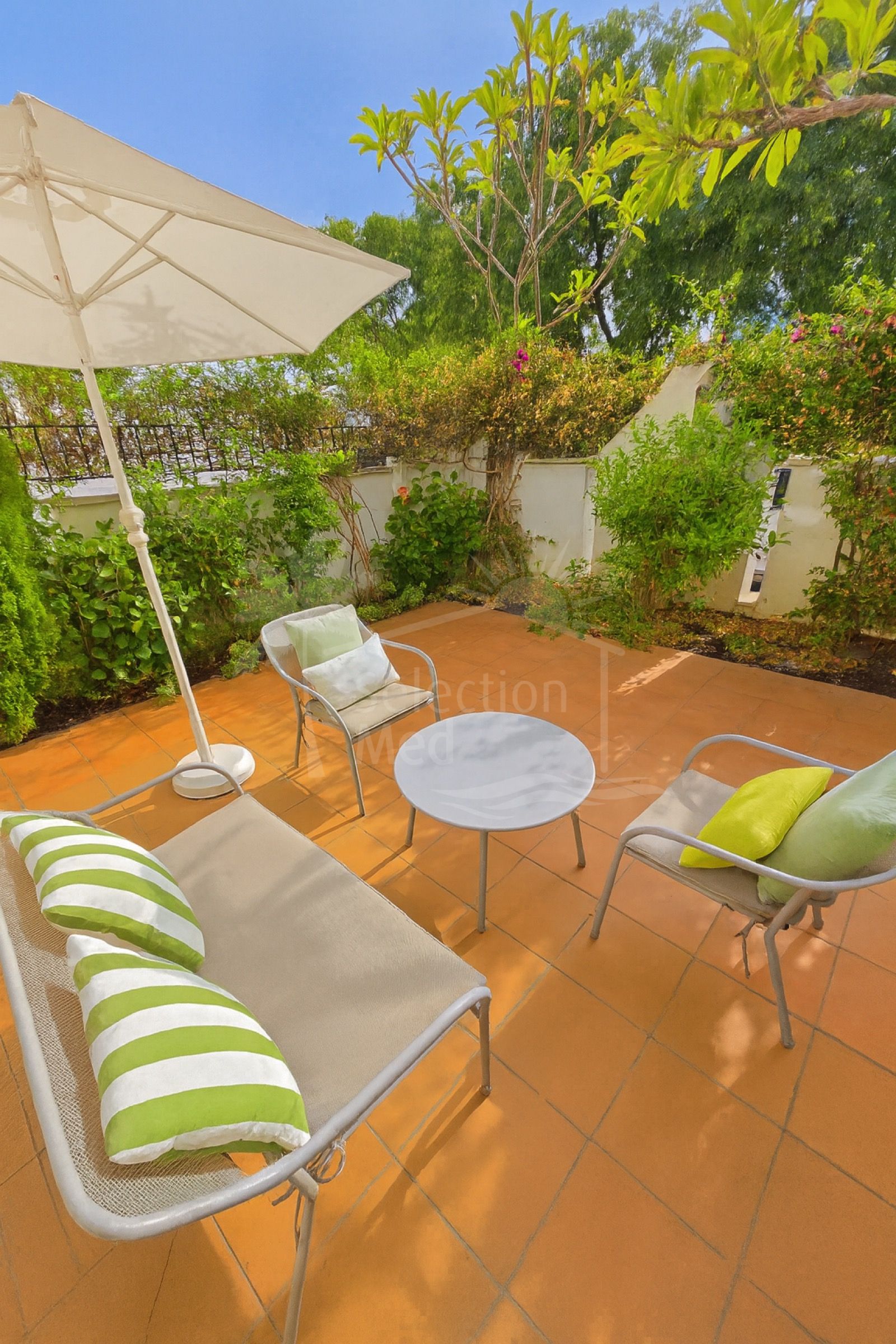 Cette propriété, orientation ouest, dispose des commodités suivantes: terrasse privée, À proximité des commerces, près de la ville, près du port, proche des écoles, insidegolfresort, groundfloorpatio, terrasse couverte, placards, vue sur le jardin, première ligne de golf, services de proximité, transport proche, climatisation, partiellement meublé, cuisine entièrement adaptée, parc pour enfants proche, plancher en marbre, proche de la mer/plage, golf à proximité, terrasse découverte, cuisine ouverte, accès pour handicapées, excellent état et récemment rénové.