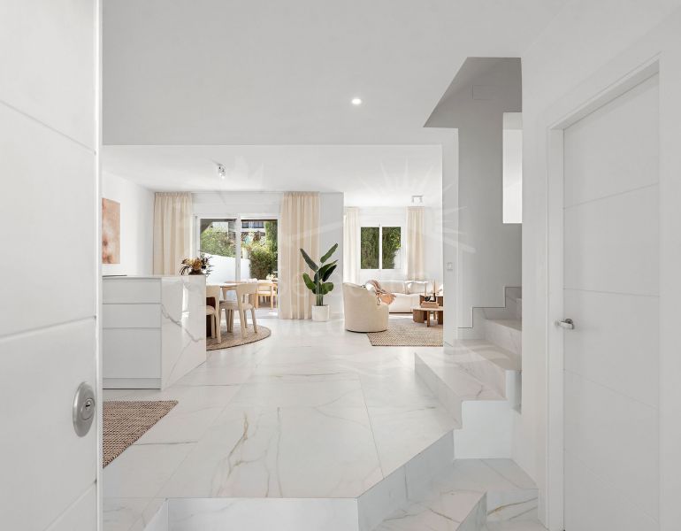 Maison de Ville à vendre à Los Naranjos de Marbella, Nueva Andalucia avec 3 chambres, 3 salles de bains, 2 salles de bain en-suite, 1 toilettes, construit à 2004 et a piscine (communautaire), garage (privé) et jardin (communautaire). Dimensions: 149m²...