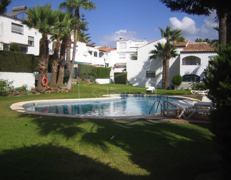 Maison de Ville à vendre à Bel Air, Estepona Est avec 3 chambres, 2 salles de bains, 1 salles de bain en-suite, construit à 1990 et a piscine (communautaire), garage (privé) et jardin (communautaire). Dimensions: 116m² construit et 30m² terrasse. Cette...