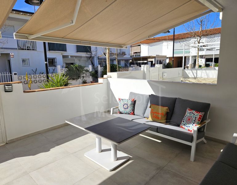 Découvrez cette élégante maison mitoyenne entièrement meublée et prête à emménager, située dans la prestigieuse urbanisation Pueblo de Guadalmina, à Guadalmina Baja. Un emplacement incomparable : à seulement 5 minutes à pied de la plage, entourée de terrains de golf...