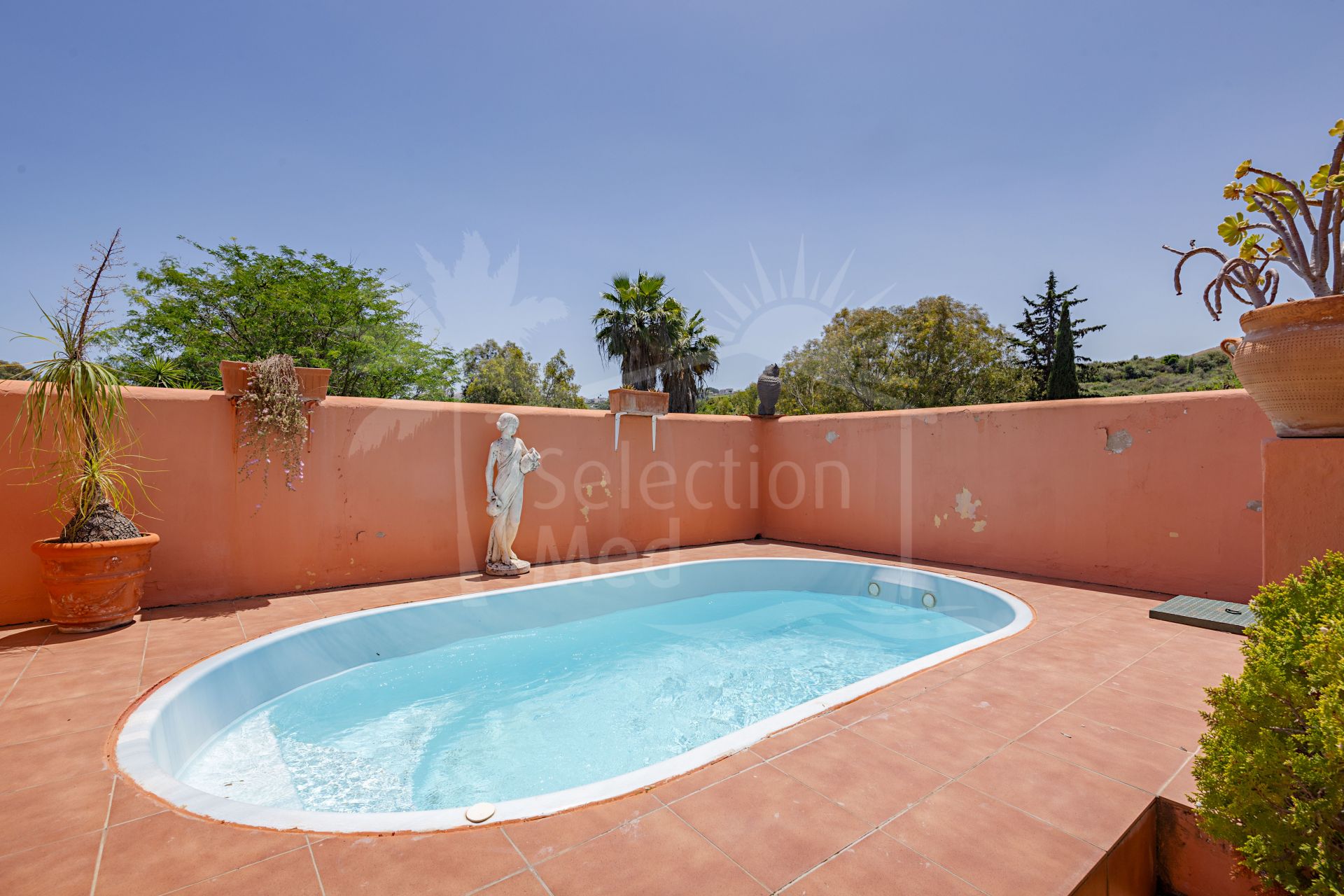 Située sur un terrain rustique de 30 088 m², la finca dispose d'une magnifique cour de style romain avec 4 chambres avec salle de bains privative, un jacuzzi extérieur et une terrasse sur le toit avec une piscine accueillante — votre propre havre de paix entouré par la nature.