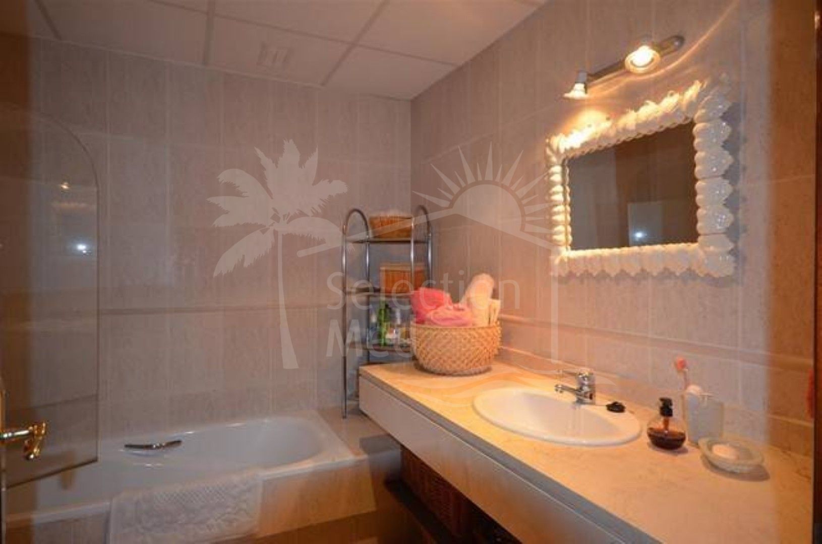 Cette propriété, orientation ouest, dispose des commodités suivantes: terrasse privée, salle de séjour, près du port, surveillancecameras, vue sur le golf, climatisation individuelle, volets de sécurité, résidence fermée, ascenseur, vue sur le jardin, vue panoramique, première ligne de golf, services de proximité, transport proche, climatisation, cuisine entièrement adaptée, proche de la mer/plage, closetorestaurants, terrasse découverte, individualheating, double vitrage, video interphone, garageincludedinprice, salle à manger et bon état.