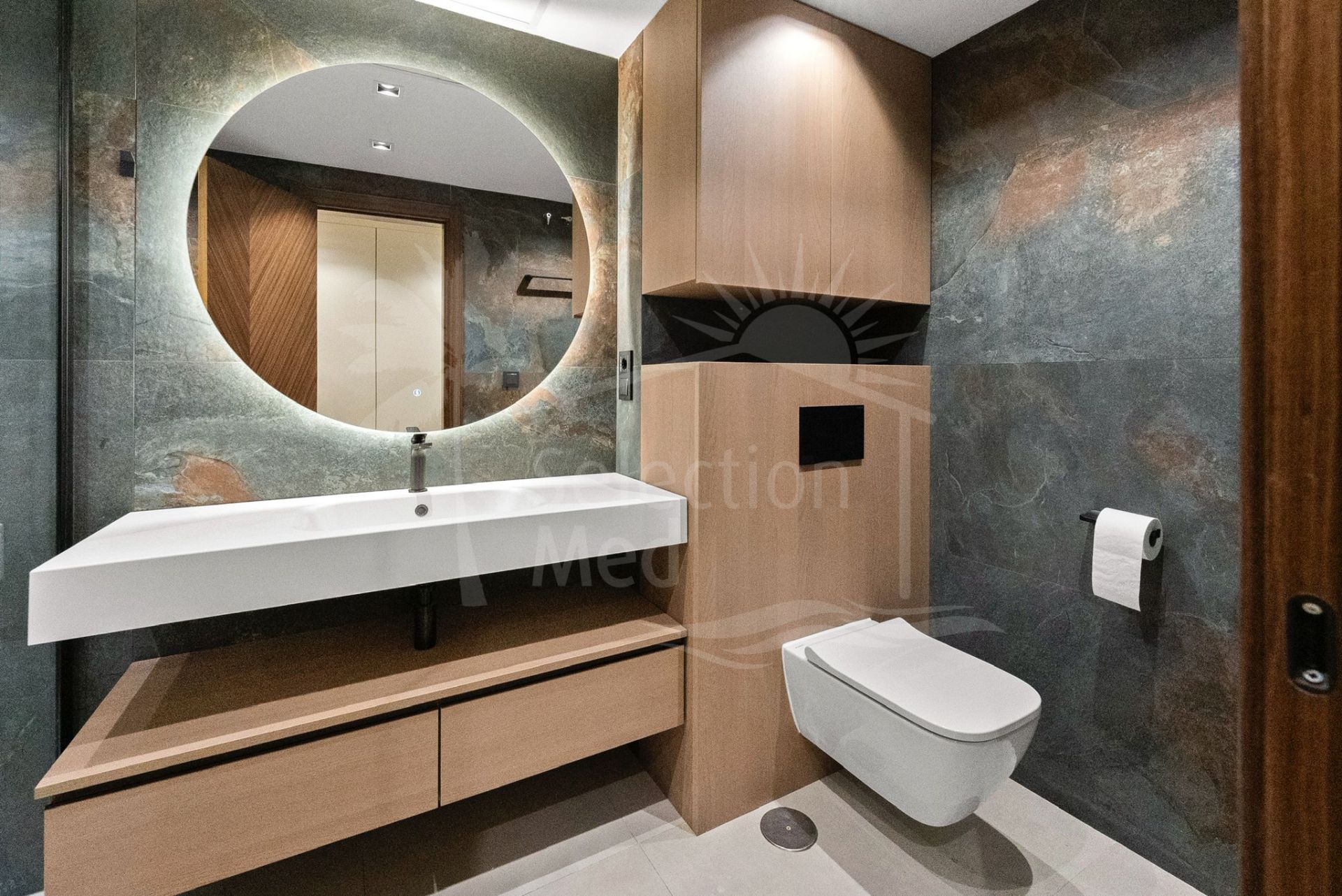 Appartement rez de chaussée à vendre à Marbella Golden Mile, Marbella avec 3 chambres, 2 salles de bains, 1 salles de bain en-suite, 1 toilettes, construit à 2022 et a piscine (communautaire), garage (privé) et jardin (communautaire). Dimensions: 160m² construit et 140m² intérieur.