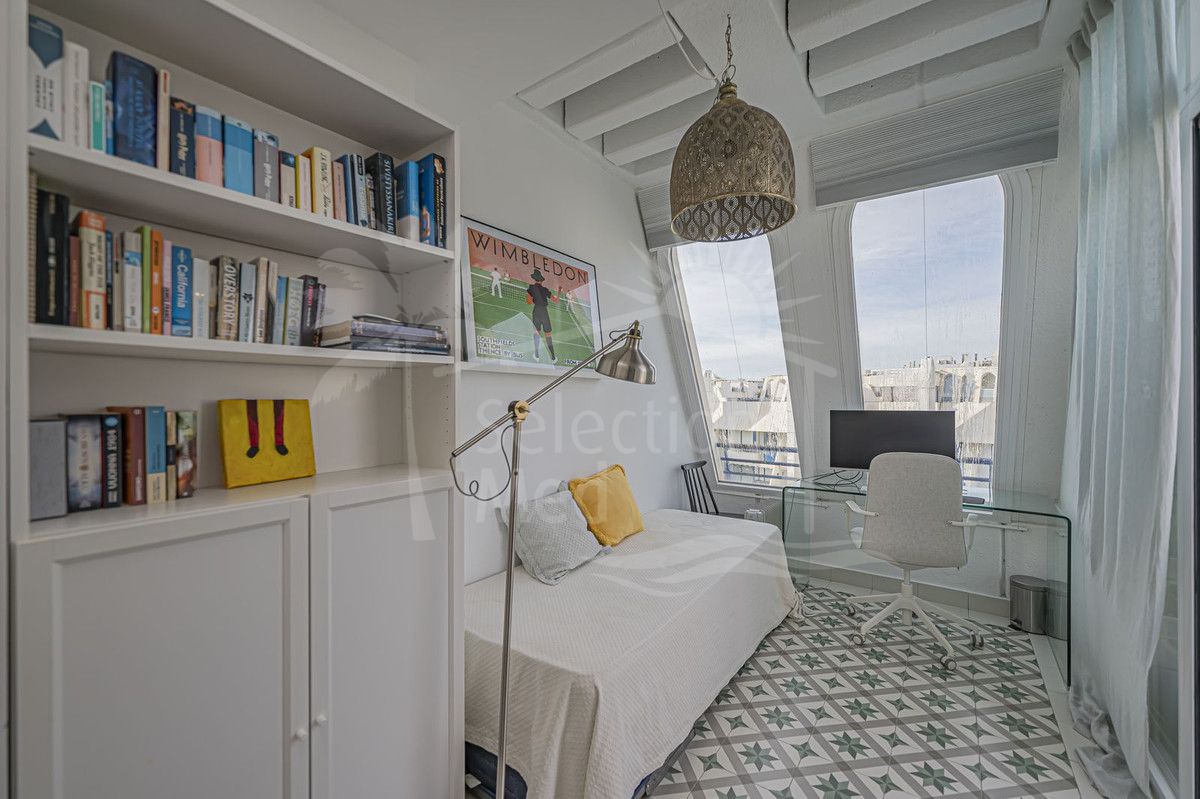 Le toit-terrasse est l’un des grands atouts de ce penthouse : un spectaculaire solarium privé avec espace barbecue et vues panoramiques sur la mer et la montagne. Ce niveau comprend également un studio indépendant, parfait comme chambre complémentaire, bureau ou salle de lecture.