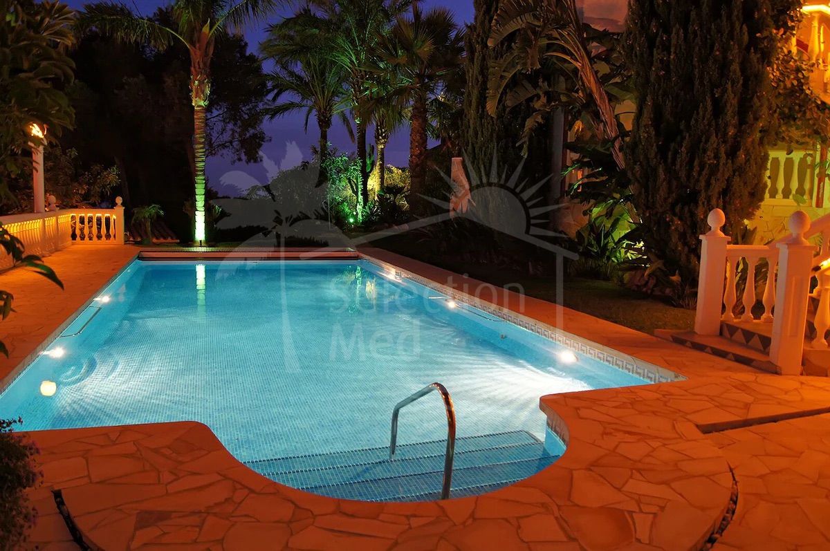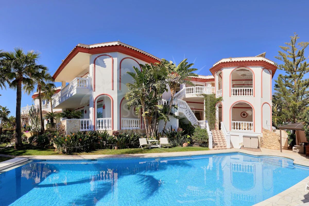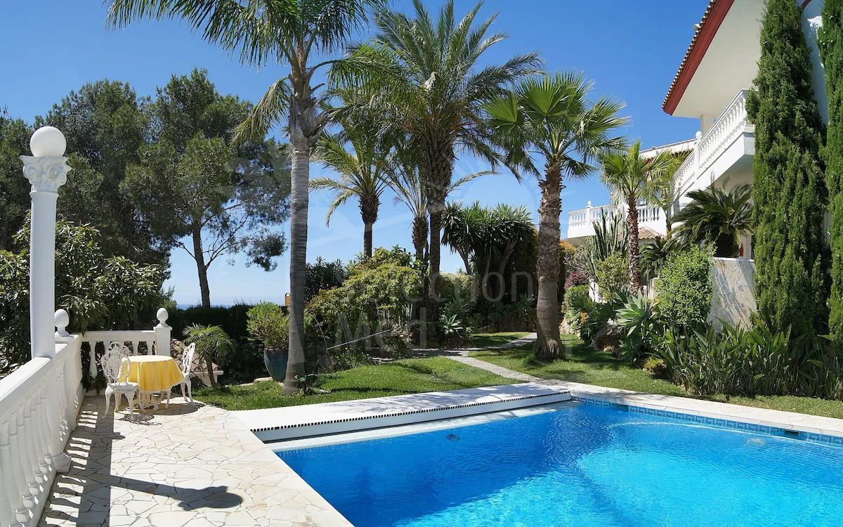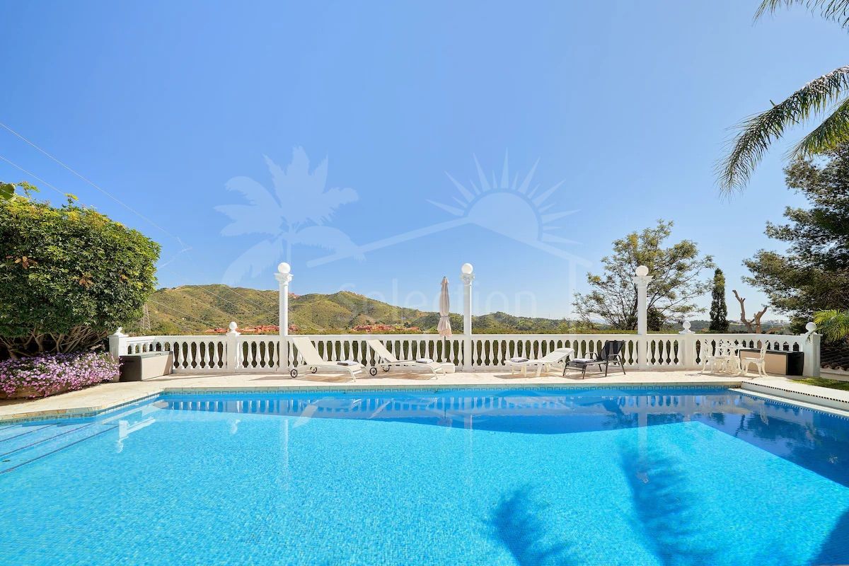 Située dans la prestigieuse et sécurisée enclave de Hacienda Las Chapas, cette luxueuse villa offre une vue panoramique sur la mer Méditerranée, une intimité exceptionnelle et une flexibilité exceptionnelle. Situé sur un terrain de 1700 m2 avec des jardins paysagers et de beaux palmiers, la propriété dispose d'une piscine chauffée au soleil, de multiples terrasses et de beaux espaces de vie intérieurs extérieurs.