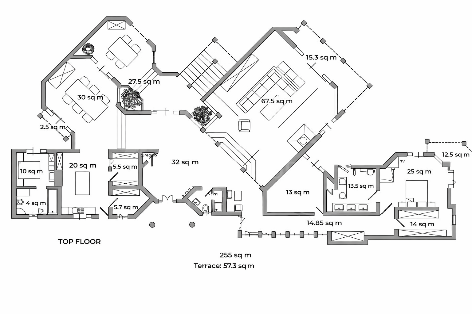 Construite selon des normes de qualité élevées, la villa offre 650 m2 d'espace de vie lumineux et est actuellement divisée en quatre appartements indépendants, ce qui la rend idéale pour une grande famille, des invités, ou des revenus de location. Il peut facilement être transformé en une maison individuelle spacieuse. Une maison d'hôtes séparée, un ascenseur potentiel, sauna, panneaux solaires, et un grand parking augmentent encore sa valeur.