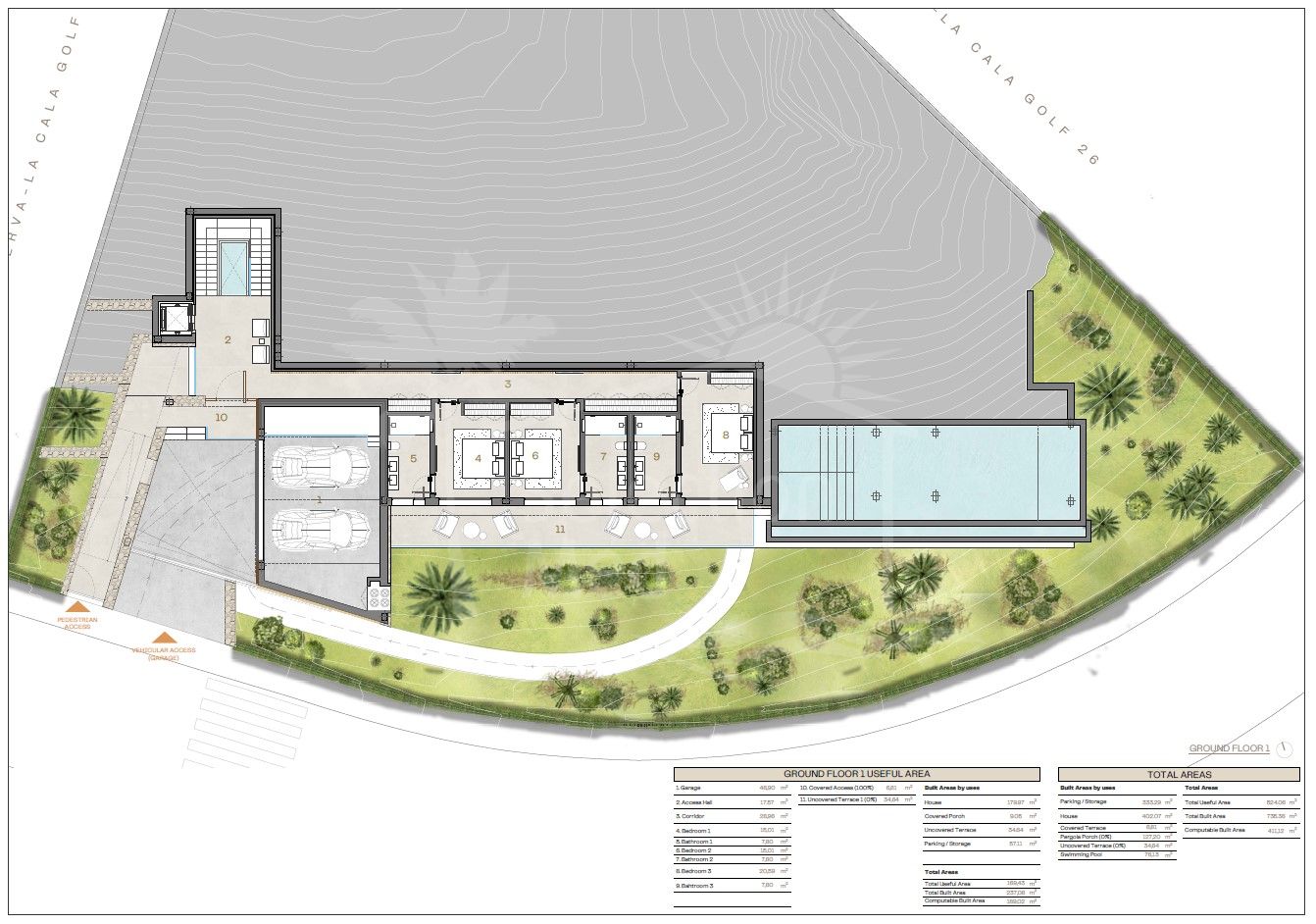 La Reserva de la Cala Golf. Cette villa contemporaine à vendre est située à La Cala Golf, Mijas Costa, entre Marbella et la ville de Málaga, Costa del Sol, sud de l'Espagne. Le projet de villa de luxe offre de fabuleuses vues panoramiques sur la mer et les montagnes, un confort et une intimité complets, entourés d'un magnifique paysage verdoyant. La propriété sera construite avec des matériaux de haute qualité et comprend 4 chambres, 4 salles de bains en suite, 1 toilettes invités, cuisine ouverte entièrement équipée avec appareils Miele et une arrière-cuisine supplémentaire, des terrasses couvertes et non couvertes, une piscine privée d'eau salée, un jardin paysager méditerranéen avec des palmiers, des oliviers, des cyprès et système d’irrigation automatique et garage privé pour 2 voitures. Elle est également équipée avec la climatisation H/C, le chauffage au sol dans toute la propriété, un ascenseur, des fenêtres à double vitrage du sol au plafond, un système domotique, des panneaux solaires et une pré-installation pour une unité de recharge EV. Des extras et des fonctionnalités personnalisées illustrés par des images 3D, tels qu'une 5ème chambre avec salle de bains privative, une salle de cinéma, un fitness, un jacuzzi, un sauna, une cave à vin, une cuisine extérieure, une piscine chauffée, etc., sont en option et peuvent être inclus en supplément (non inclus dans le prix de vente).
