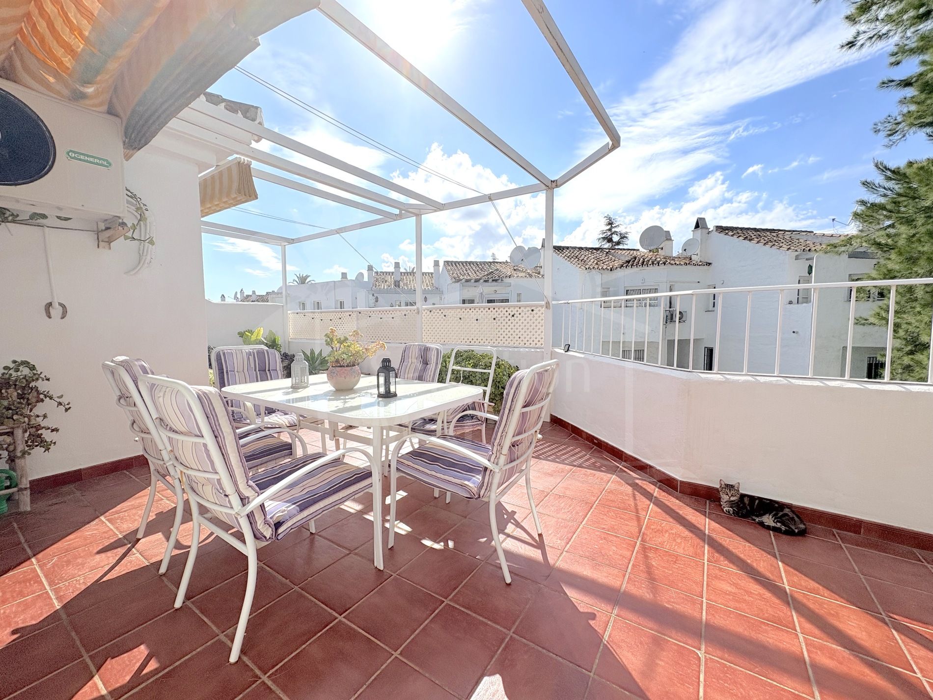 Une occasion rare d'acquérir un penthouse lumineux et spacieux au dernier étage dans la zone recherchée de Mijas Golf, offrant un espace de vie généreux, de belles terrasses et un excellent rapport qualité-prix.