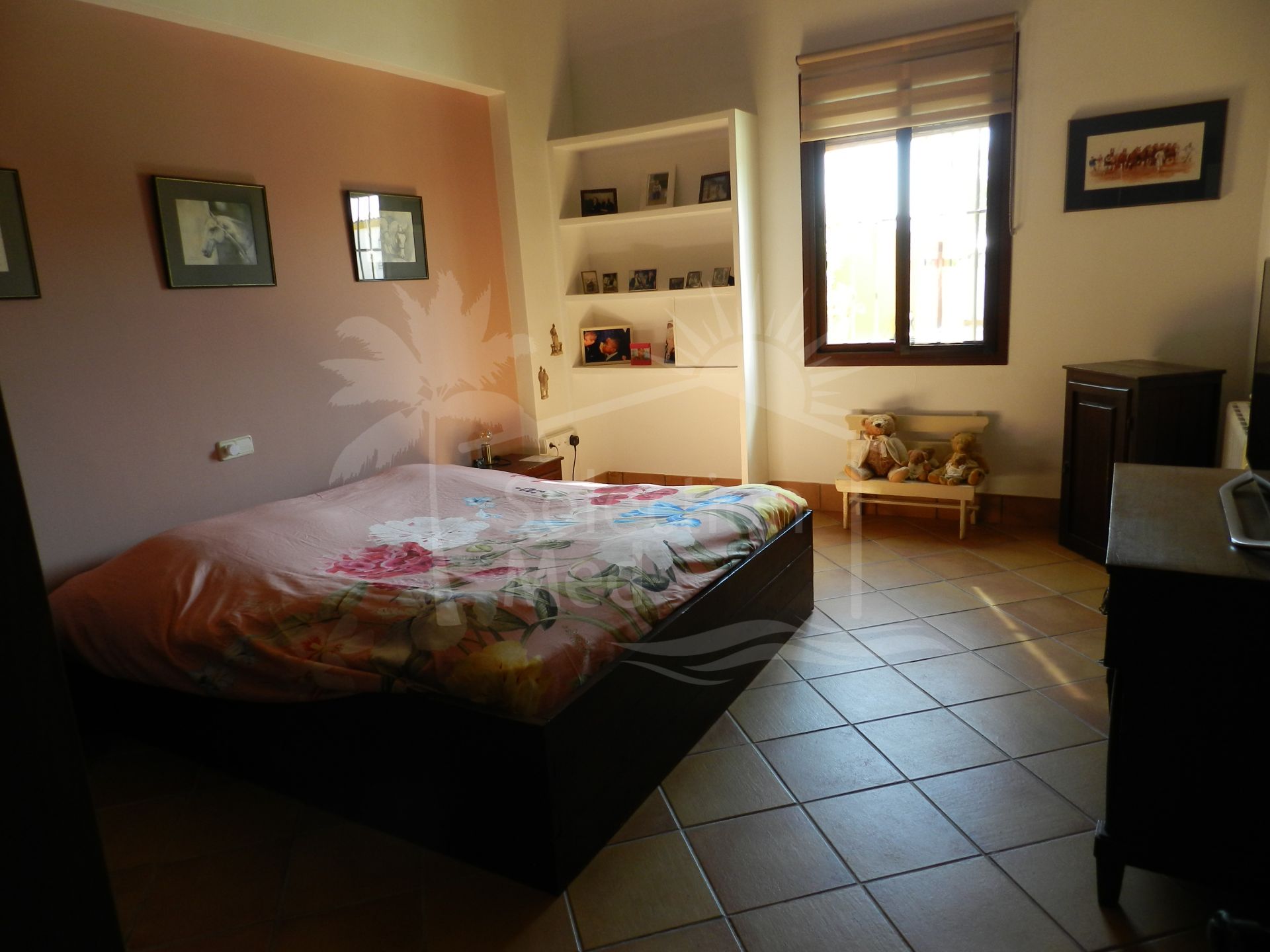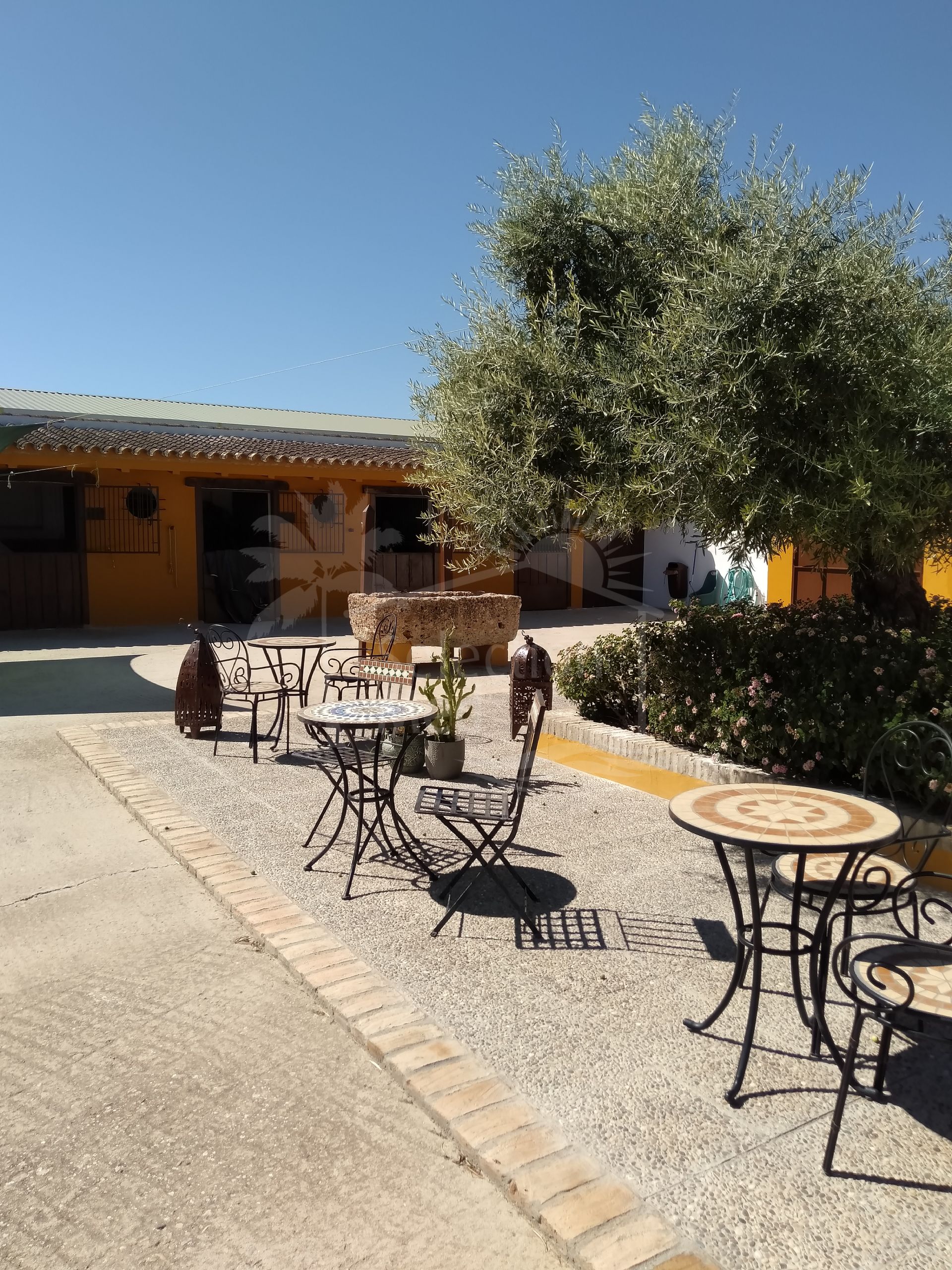 Le cortijo est approché par une entrée fermée et le long d'une allée privée, menant à une charmante résidence aménagée autour d'une cour intérieure traditionnelle. La maison principale est présentée dans un état immaculé, ses intérieurs définis par de hauts plafonds voûtés, une cuisine nouvellement équipée, et trois chambres spacieuses, joliment aménagées qui allient charme rustique au confort contemporain.