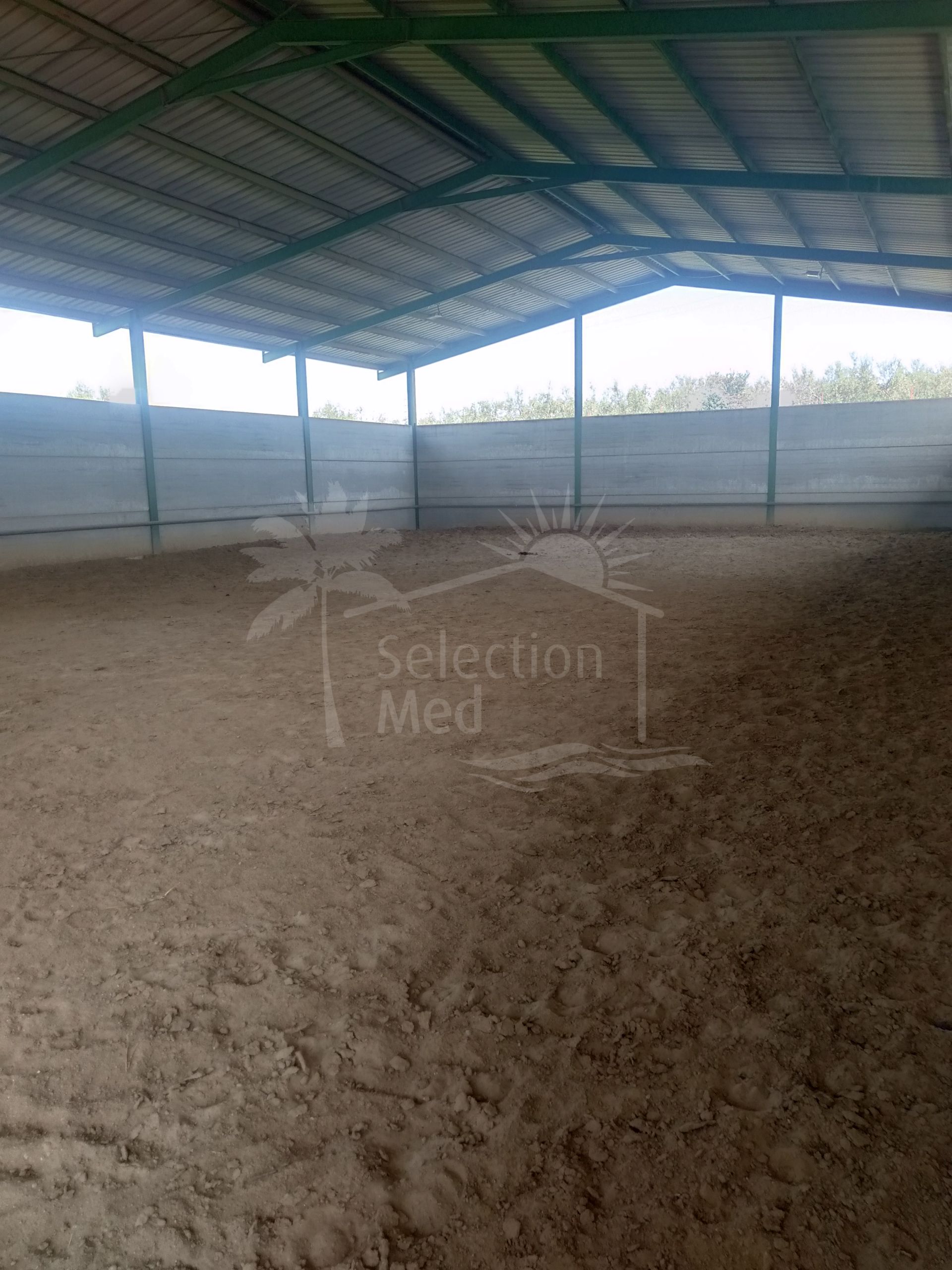 Les installations équestres sont au cœur de ce domaine, conçu selon les normes les plus élevées pour l'usage professionnel et privé. Les terrains comprennent une superbe arène de sable complétée par une rare école d'équitation intérieure, assurant des possibilités d'entraînement toute l'année. Cinq écuries bien construites, de grands paddocks plats et de multiples dépendances offrent beaucoup d'espace pour les chevaux et l'équipement, tandis que le code illimité de la propriété souligne son aptitude pour les entreprises équestres ou le plaisir privé à grande échelle.