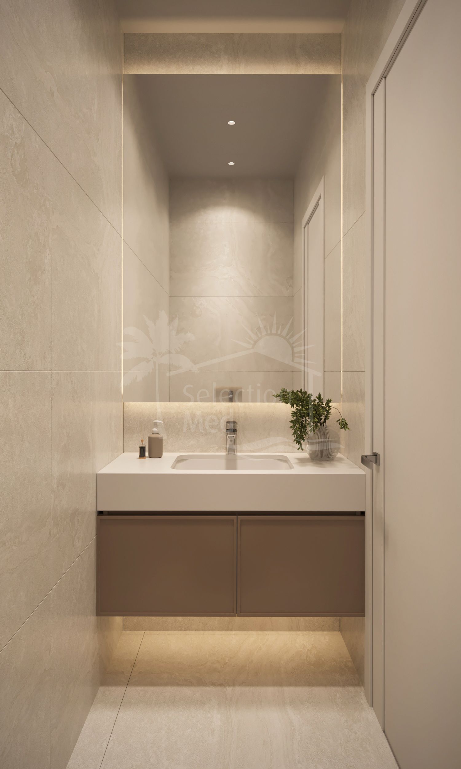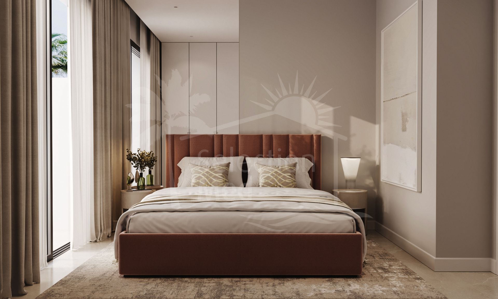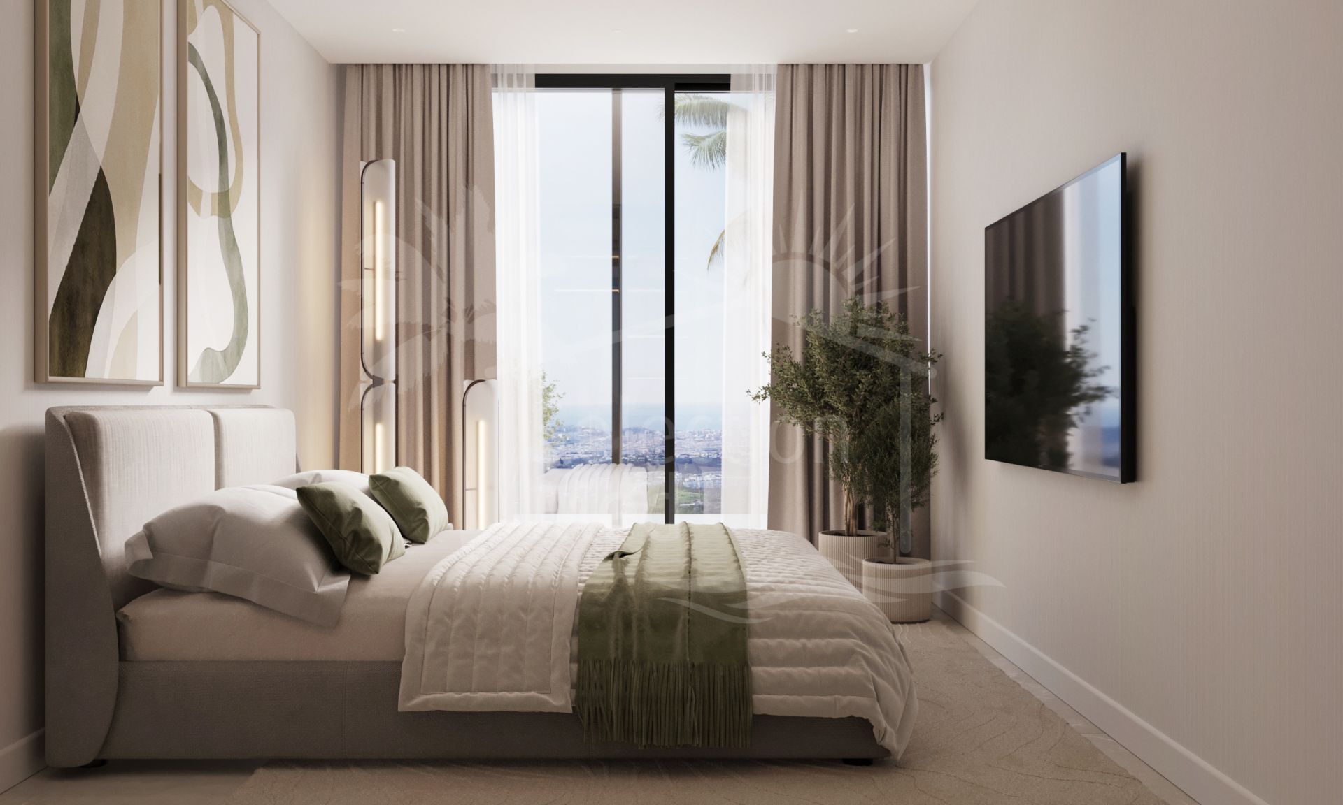 Cette propriété, orientation sud, dispose des commodités suivantes: terrasse privée, piscine d'eau salée, près de la ville, proche des écoles, vue mer, vue montagne, chauffage par le sol (partout), système d'arrosage automatique, système domotique, portes blindées, terrasse couverte, placards, aérothermie, résidence fermée, ascenseur, vue sur le jardin, vue sur la piscine, vue panoramique, services de proximité, vue sur la rue, maturejardens, climatisation, cuisine entièrement adaptée, proche de la mer/plage, golf à proximité, cave, portes en verre, entrepôt, solarium, entrée sécurizé, double vitrage, video interphone, neuf, garageincludedinprice, téléphone et toilette d'invités.