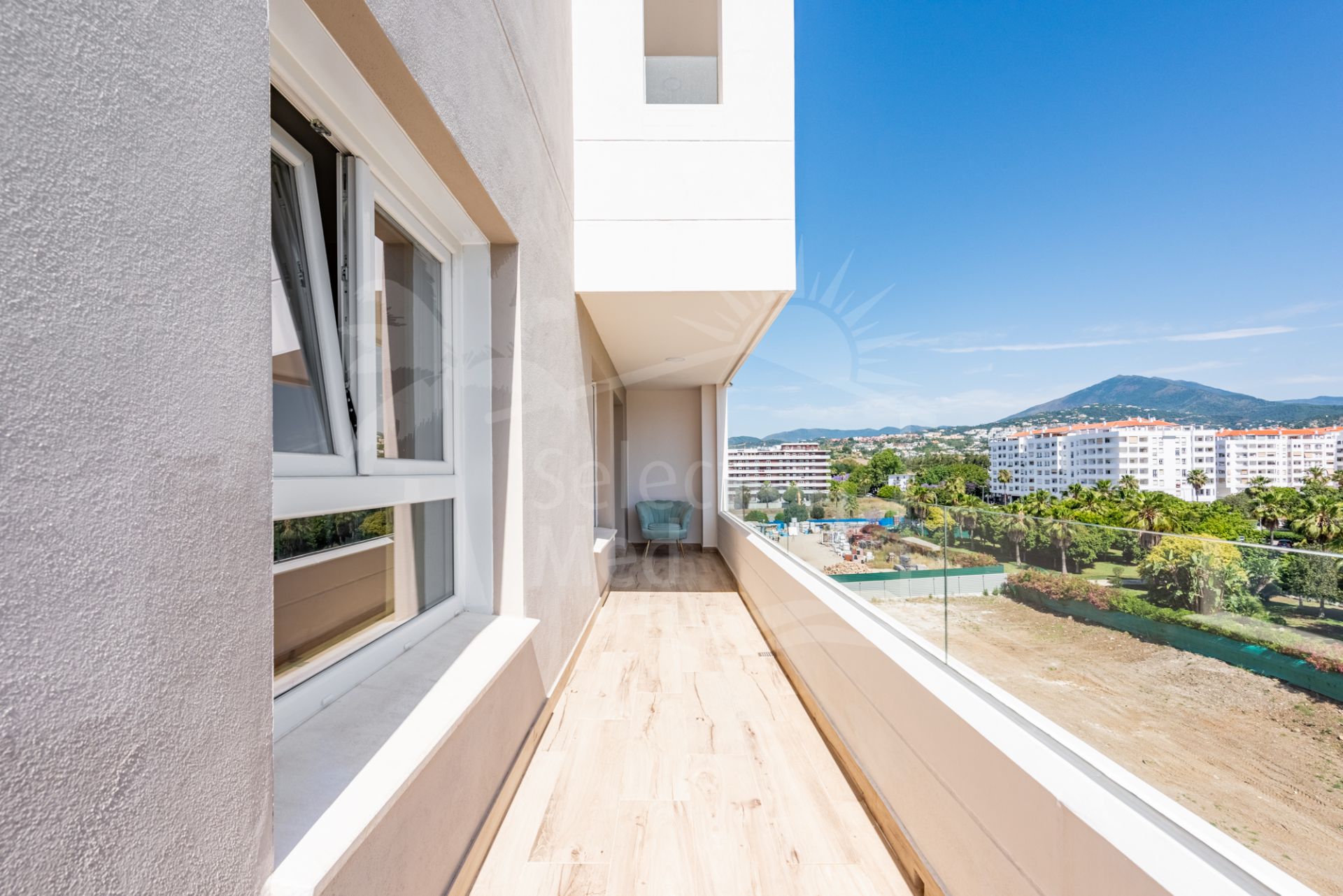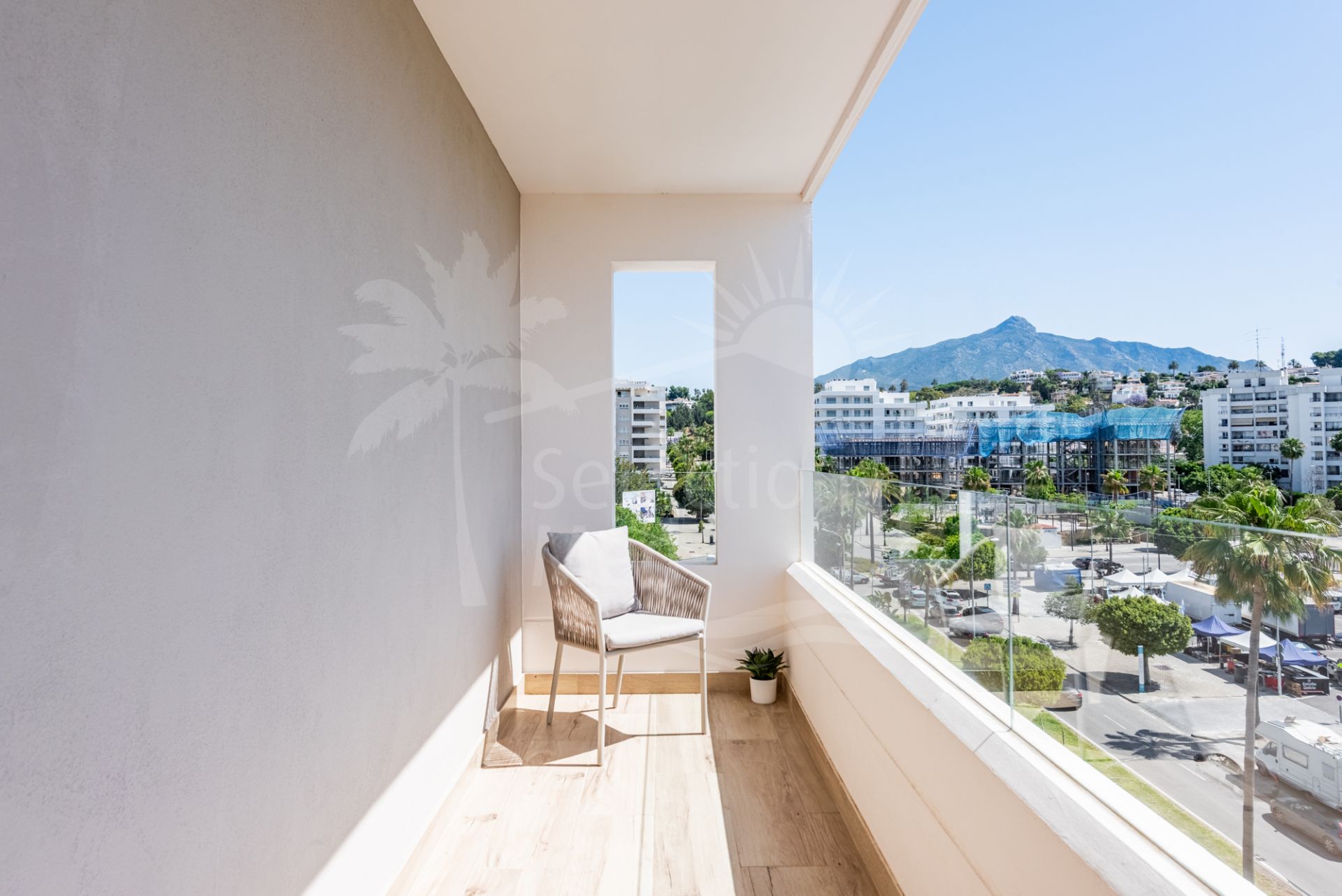 Grâce à sa position d’angle, l’appartement bénéficie d’une abondante lumière naturelle et de vues dégagées sur les montagnes, la silhouette urbaine et des aperçus sur la mer Méditerranée. L’agencement contemporain s’articule autour d’une spacieuse cuisine ouverte, équipée d’appareils électroménagers neufs sous garantie, qui s’ouvre harmonieusement sur un séjour lumineux et une terrasse privée — idéale pour profiter du climat méditerranéen.