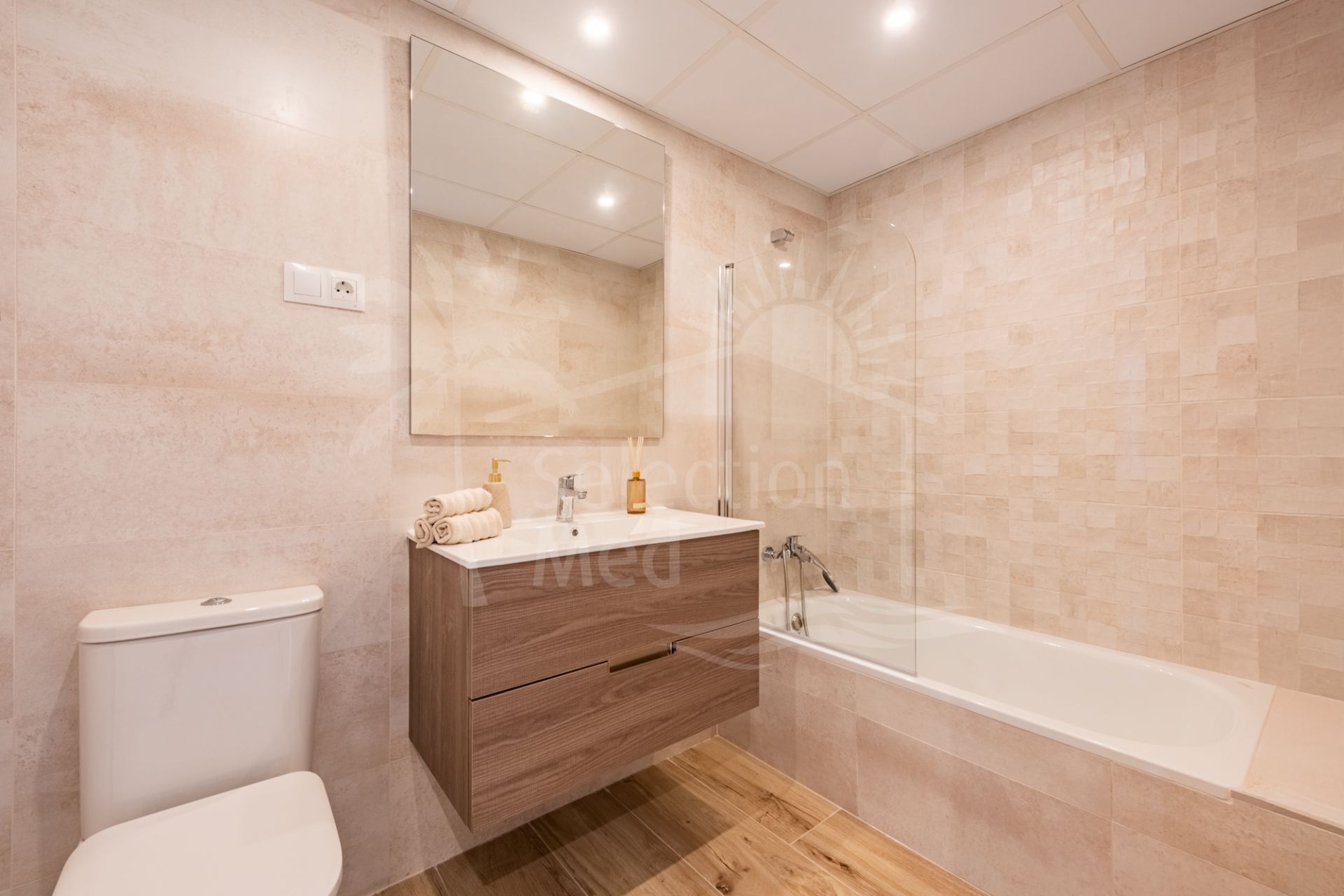 Le bien est doté de la climatisation, de volets électriques, d’une connexion internet par fibre optique et de finitions de haute qualité dans tout l’appartement. Sécurité et confort sont au rendez-vous, avec une porte d’entrée blindée, un système d’interphone vidéo, des caméras de surveillance et un ascenseur au sein d’une résidence sécurisée. Les résidents bénéficient également d’un nettoyage quotidien des parties communes et d’un service de conciergerie disponible six jours par semaine.