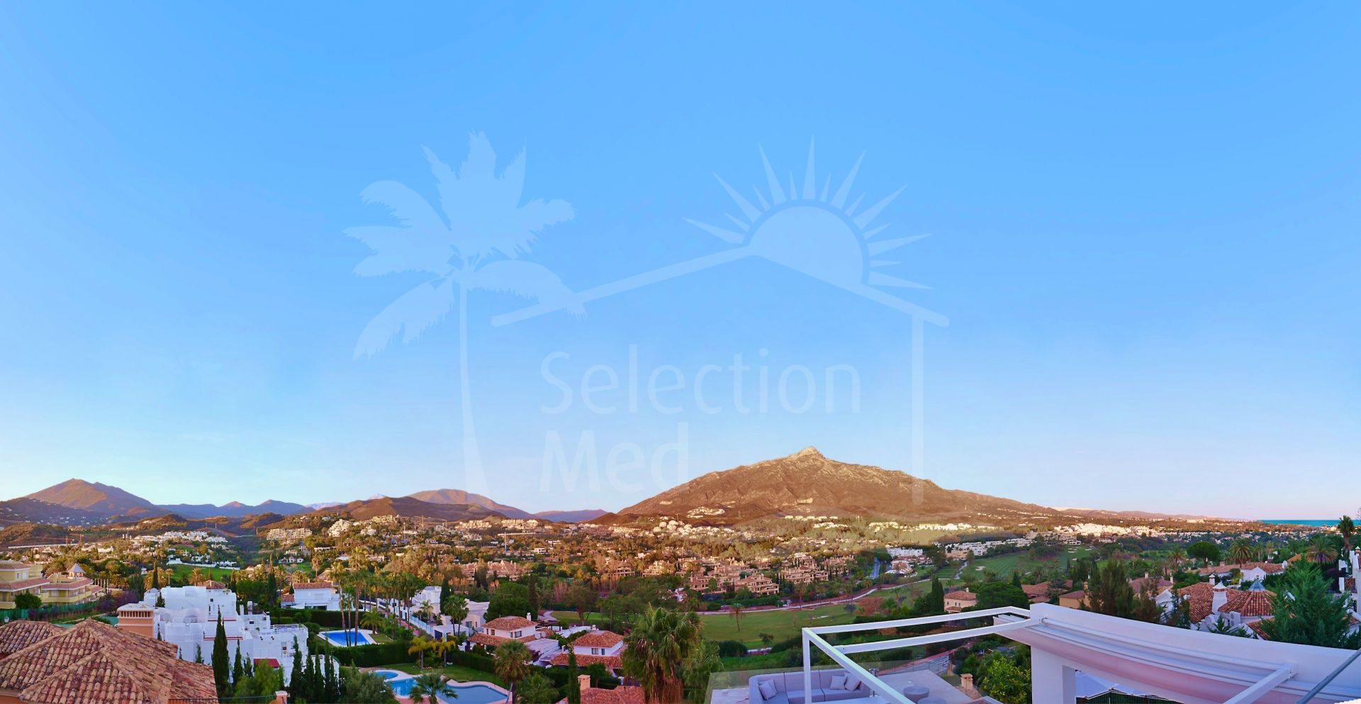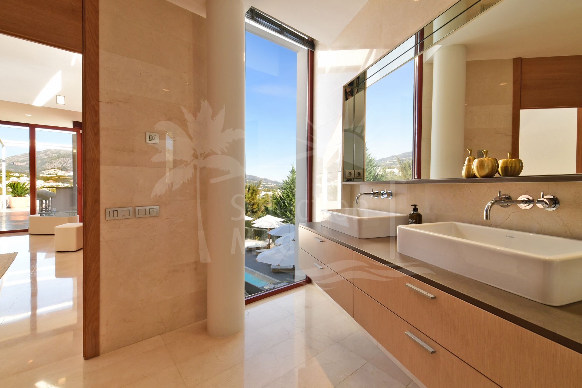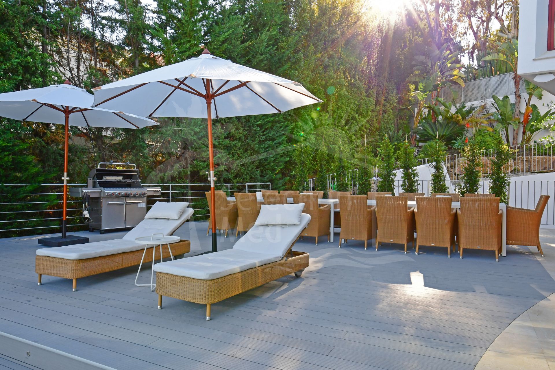 Maison à vendre et à louer à Nueva Andalucia, Marbella avec 7 chambres, 6 salles de bains, 1 toilettes et a piscine (privé) et jardin (privé). Dimensions: 667m² construit, 1000m² parcelle et 200m² terrasse.