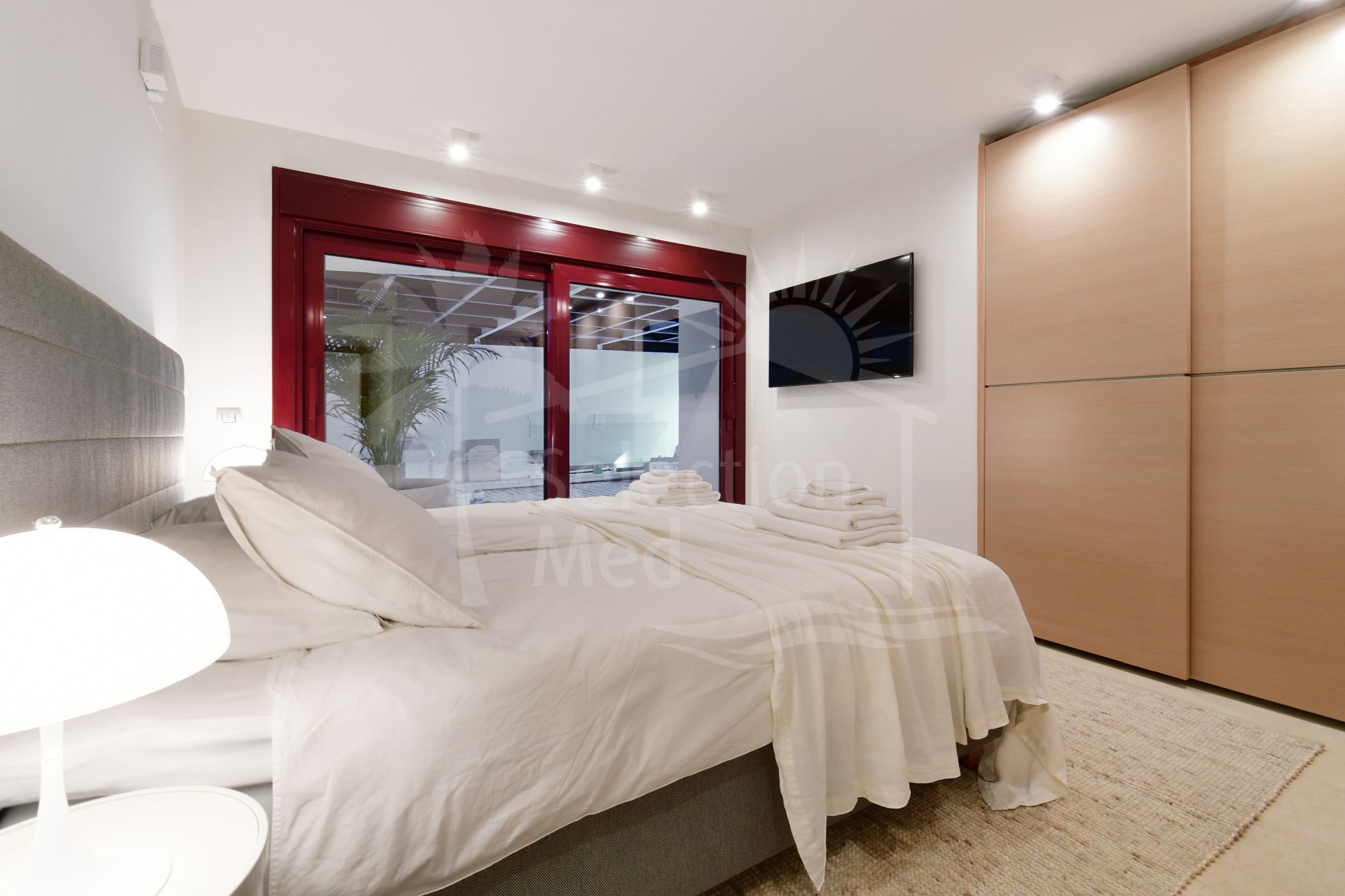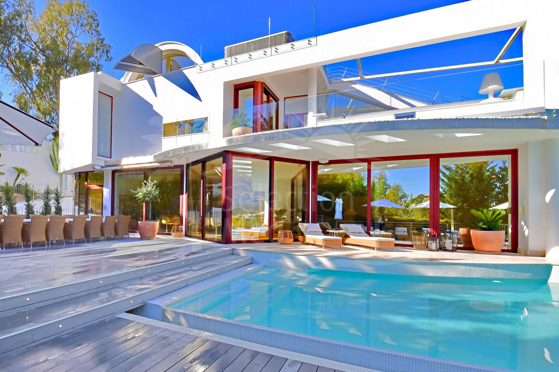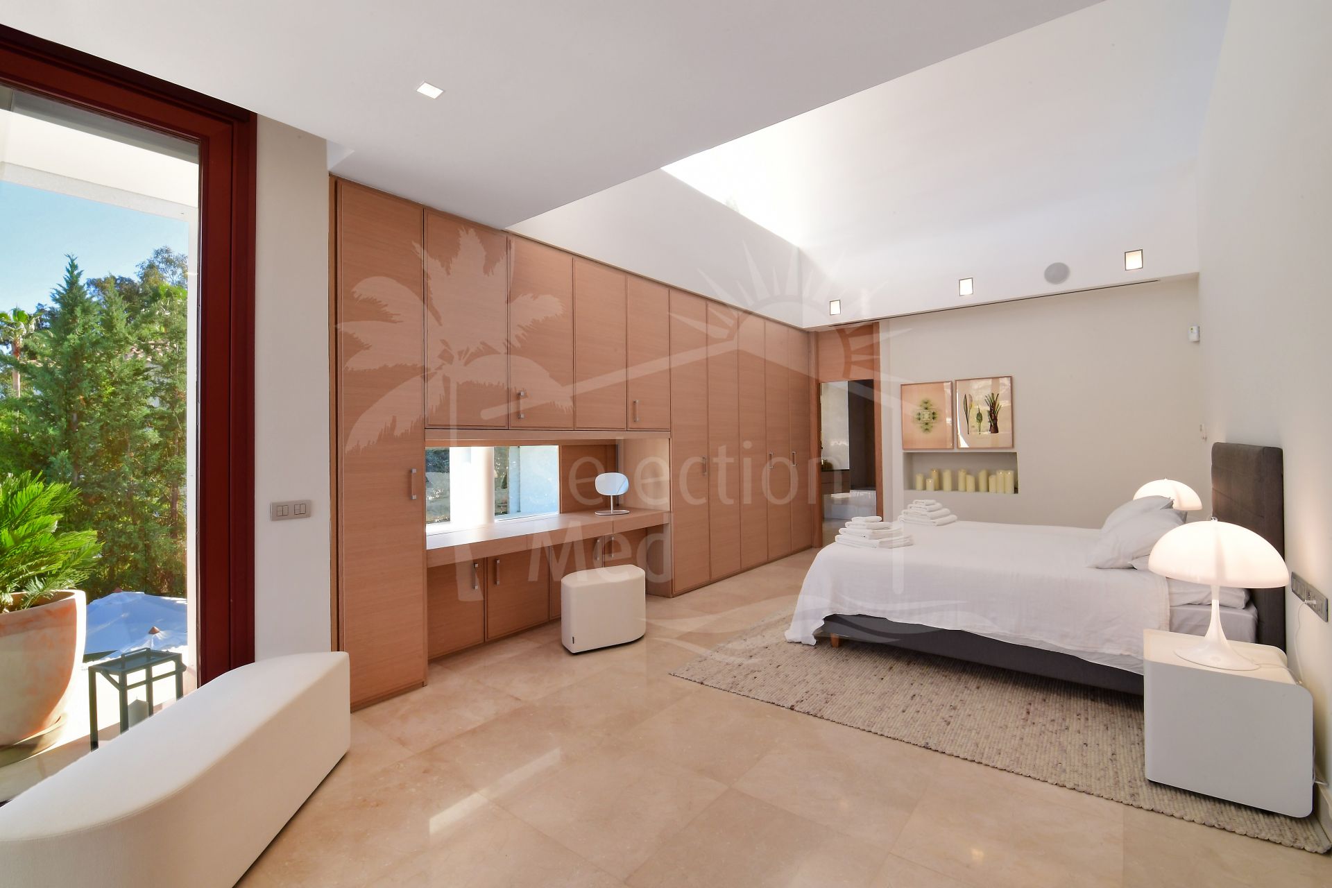 Maison à vendre et à louer à Nueva Andalucia, Marbella avec 7 chambres, 6 salles de bains, 1 toilettes et a piscine (privé) et jardin (privé). Dimensions: 667m² construit, 1000m² parcelle et 200m² terrasse.