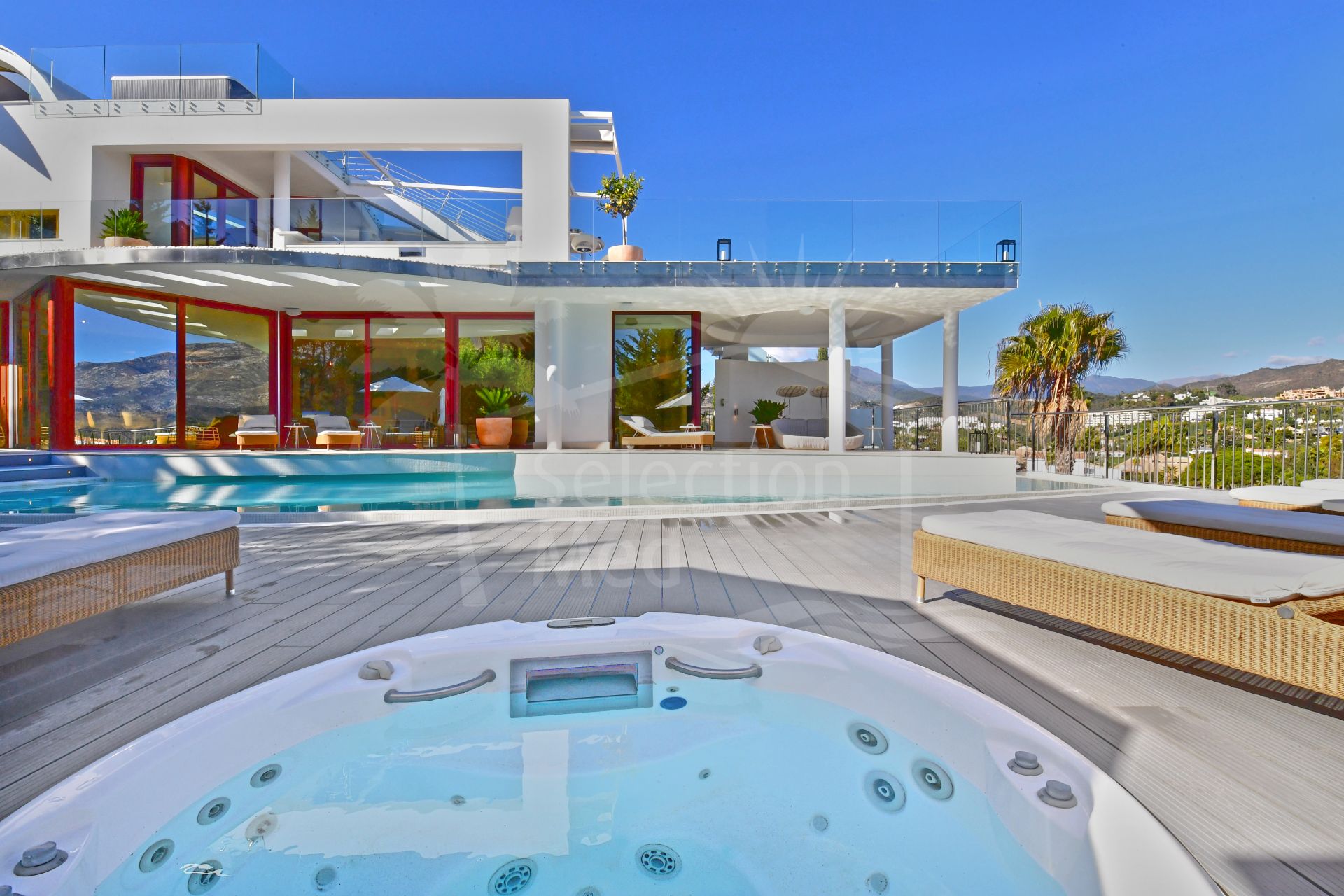 Cette propriété dispose des commodités suivantes: terrasse privée, salle de séjour, près de la ville, proche des écoles, vue mer, vue montagne, vue sur le golf, piscine climatisée, buanderie, internet – wi-fi, groundfloorpatio, terrasse couverte, volets électriques, placards, ascenseur, vue sur le jardin, dressing, vue sur la piscine, vue panoramique, roofterrace, salle de cinéma, services de proximité, vue sur la rue, entièrement meublé, mainswatersupply, cuisine entièrement adaptée, jacuzzi, proche de la mer/plage, golf à proximité, closetorestaurants, cityviews, cave, salle de jeux, portes en verre, chambre d'invités, salle de gym, balcon, solarium, excellent état, salle à manger, barbecue, téléphone, toilette d'invités et vue urbaine.