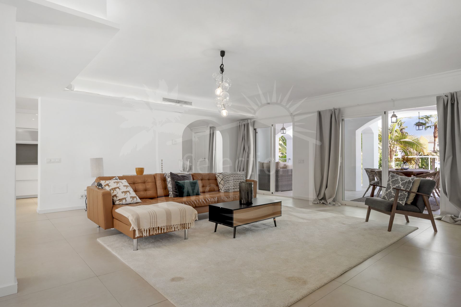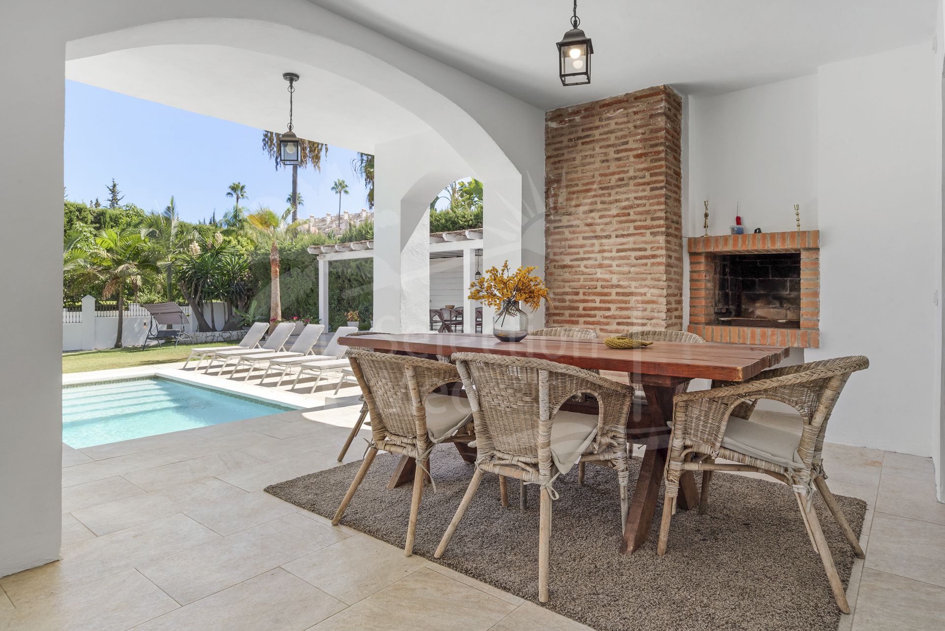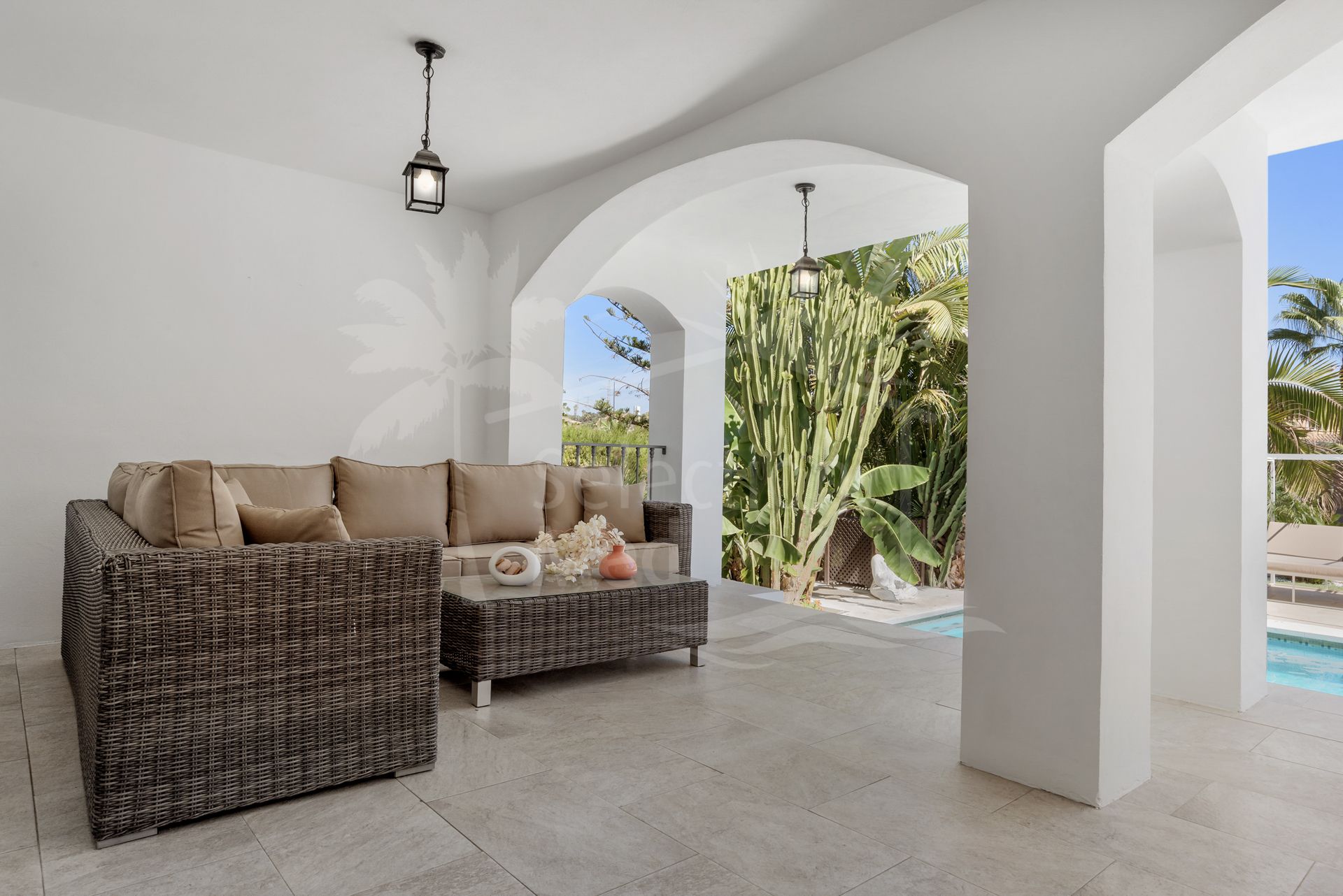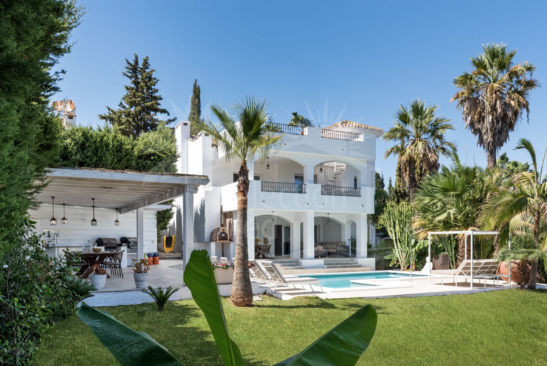 Maison à vendre à Nueva Andalucia, Marbella avec 4 chambres, 3 salles de bains, 1 toilettes et a piscine (privé), garage (privé) et jardin (privé). Dimensions: 336m² construit, 1028m² parcelle et 76m² terrasse.