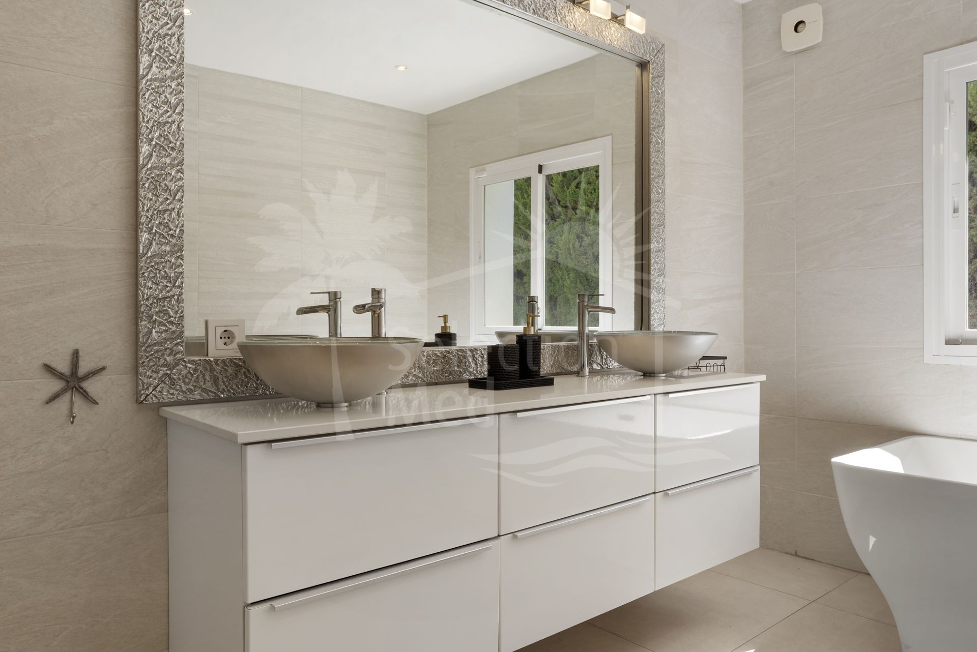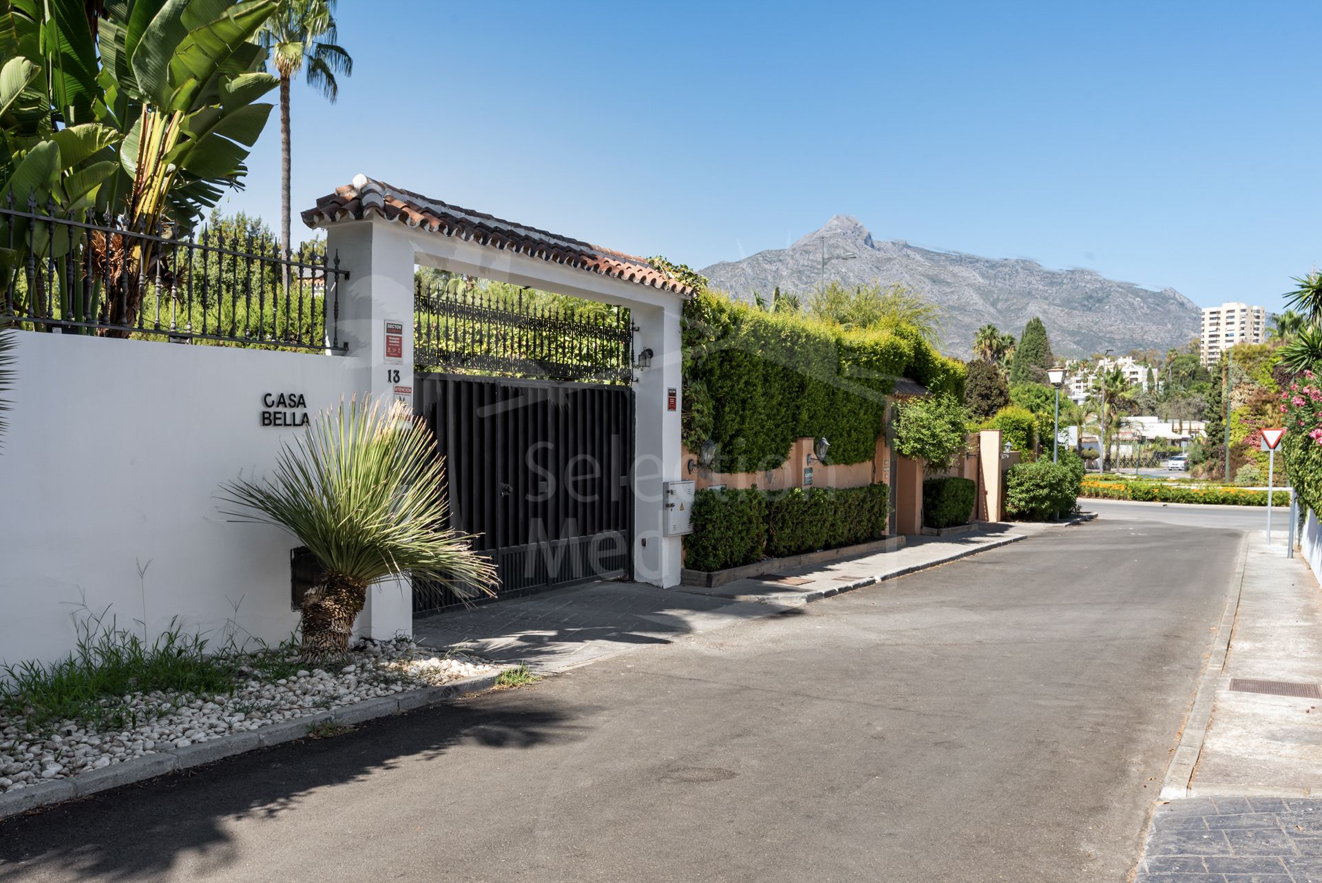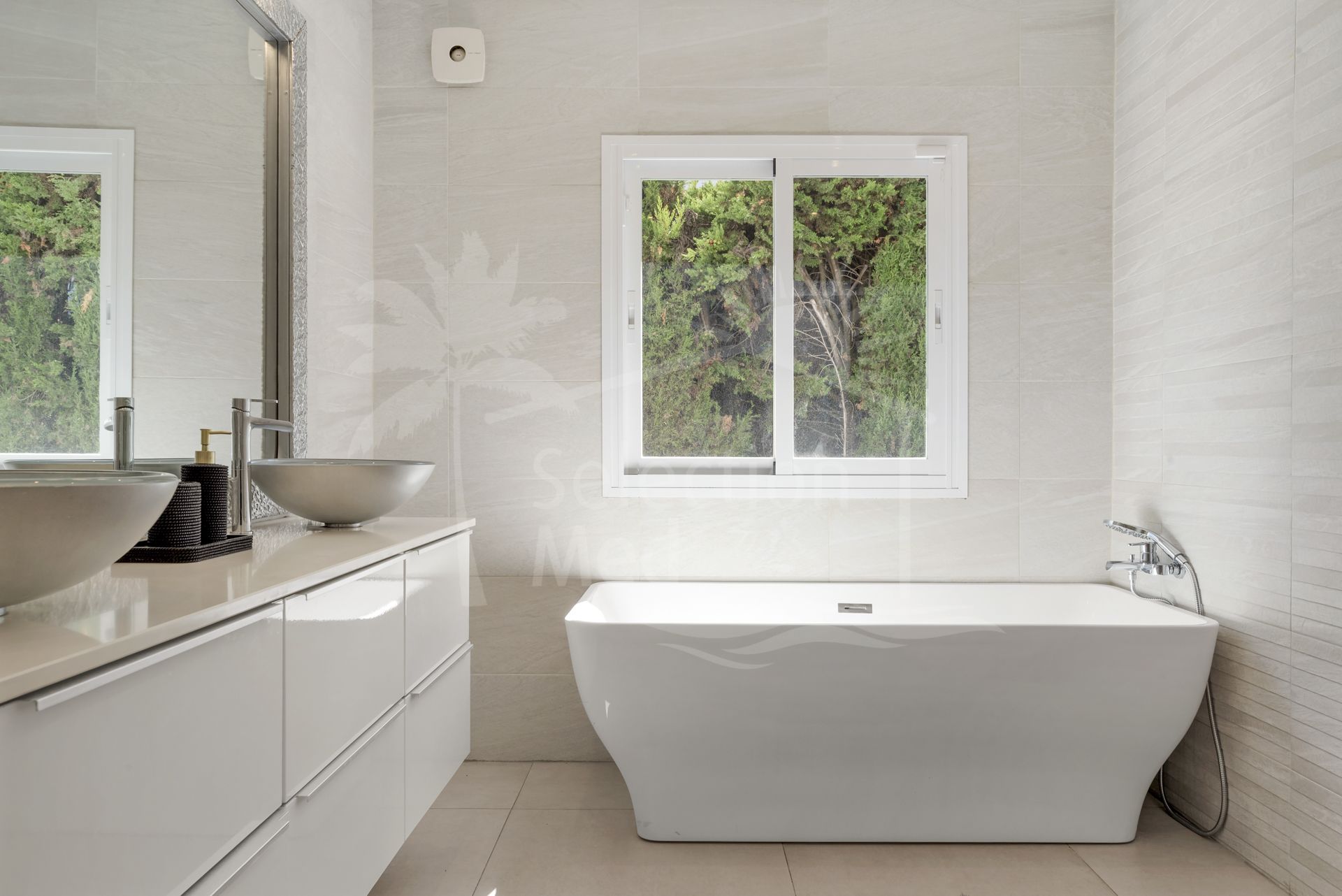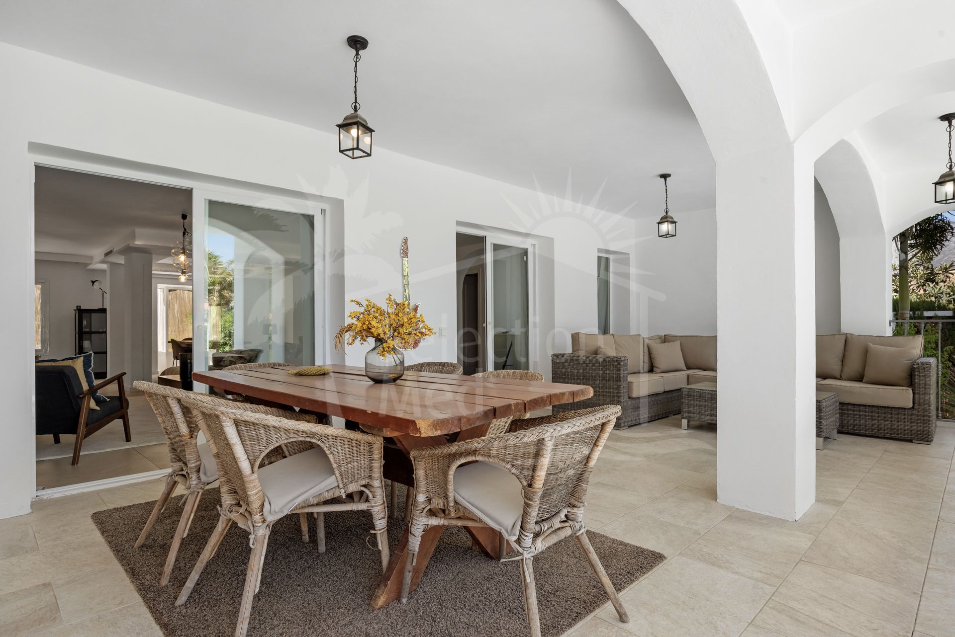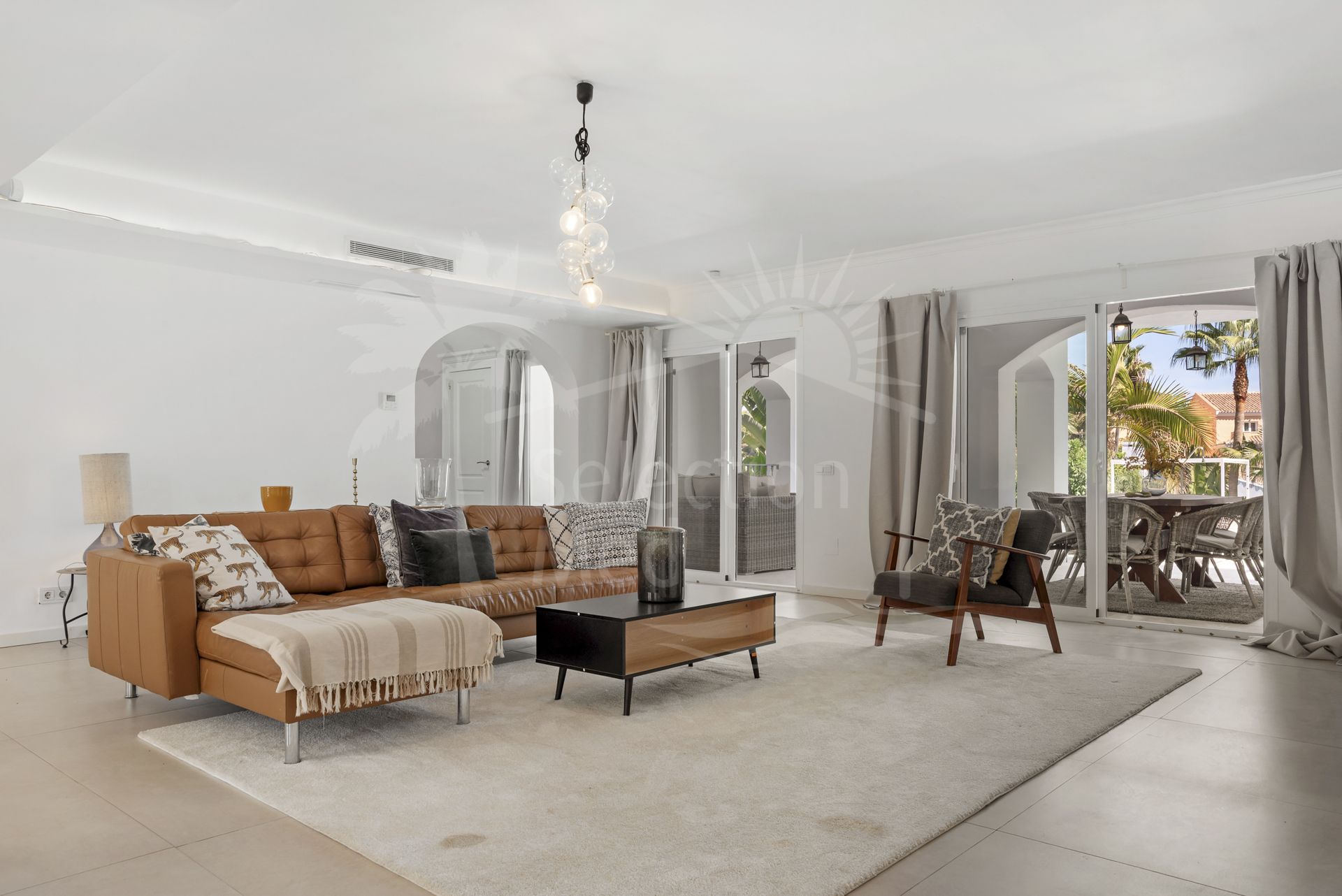 Maison à vendre à Nueva Andalucia, Marbella avec 4 chambres, 3 salles de bains, 1 toilettes et a piscine (privé), garage (privé) et jardin (privé). Dimensions: 336m² construit, 1028m² parcelle et 76m² terrasse.