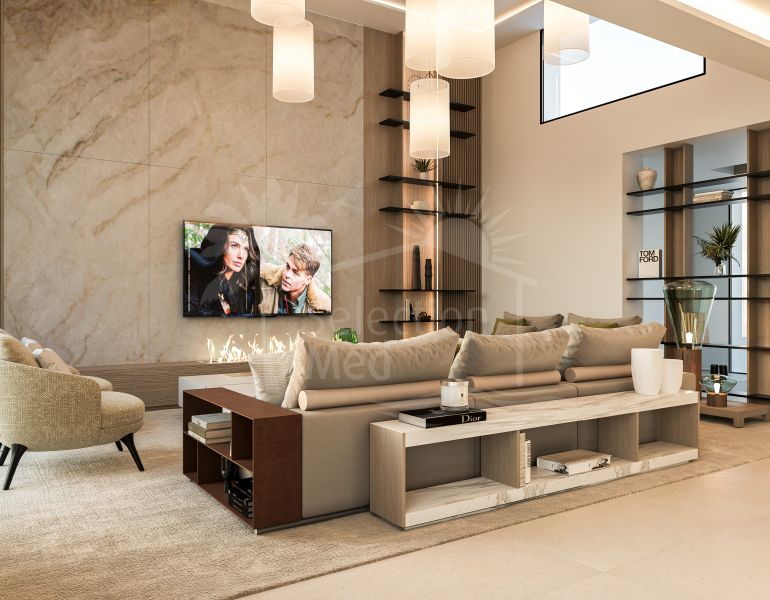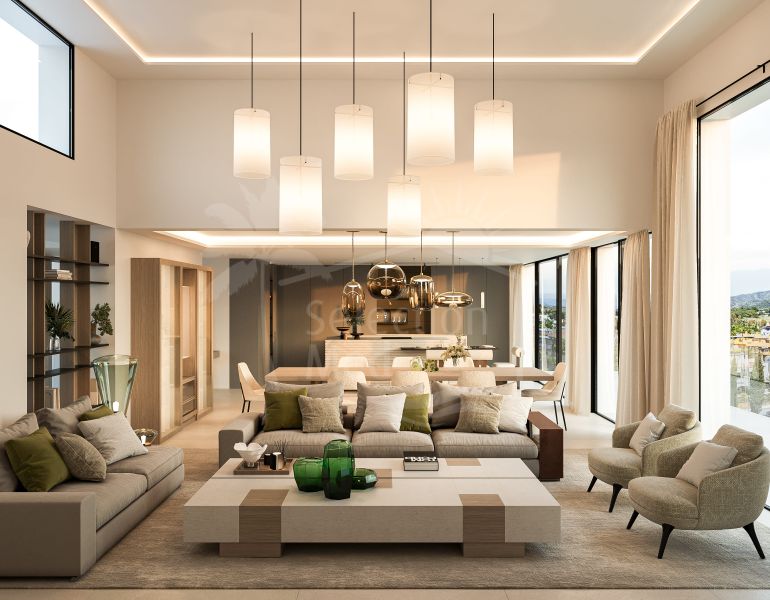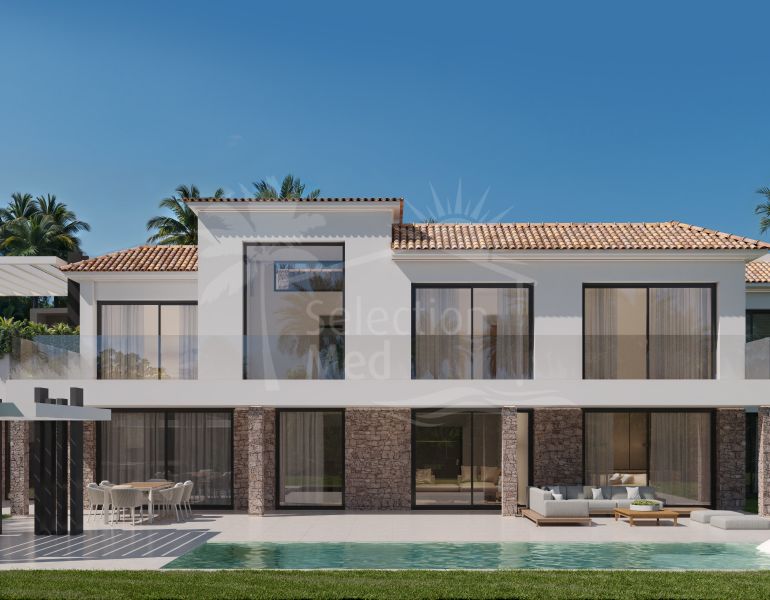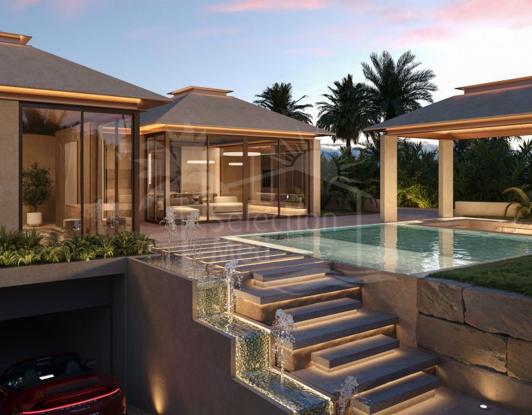 Villa à vendre à Nueva Andalucia, Marbella avec 5 chambres, 5 salles de bains, 2 toilets, construit à 2026 et a piscine (privé), garage (privé) et jardin (privé). Dimensions: 544m² construit, 1014m² parcelle, 451m² intérieur et 318m² terrasse. Cette propriété, orientation...