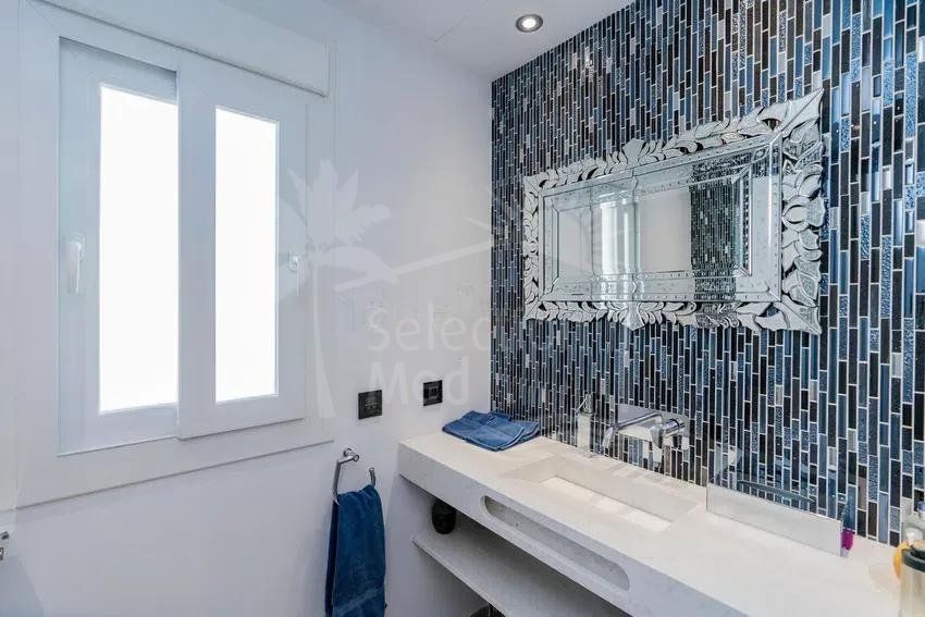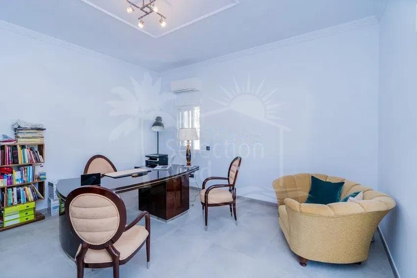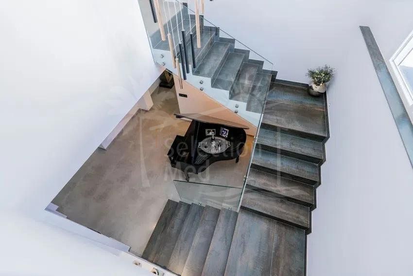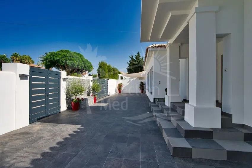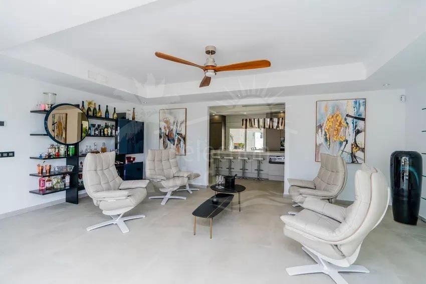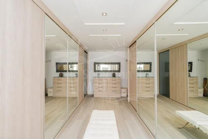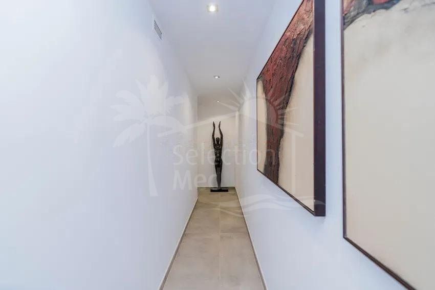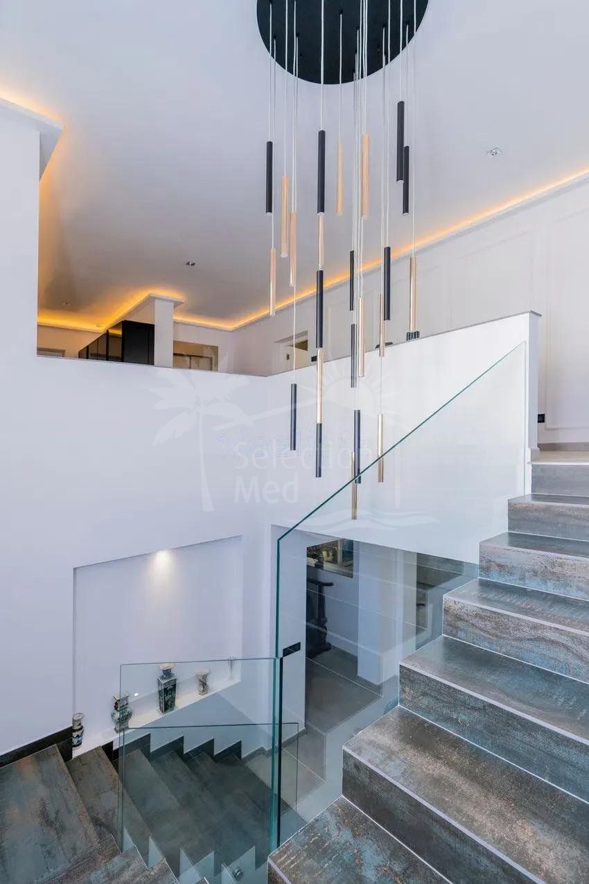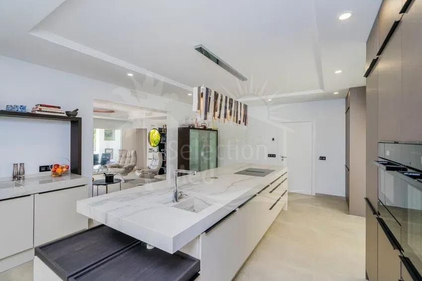 Récemment rénovée selon les normes les plus élevées, la résidence principale présente des intérieurs lumineux et spacieux grâce à son orientation plein sud et à ses vastes baies vitrées qui relient harmonieusement les espaces intérieurs et extérieurs. Le grand salon de réception, la salle à manger formelle et la cuisine contemporaine entièrement équipée créent un cadre idéal pour le confort quotidien et des réceptions sophistiquées. Un ascenseur intérieur permet d’accéder facilement à tous les niveaux.