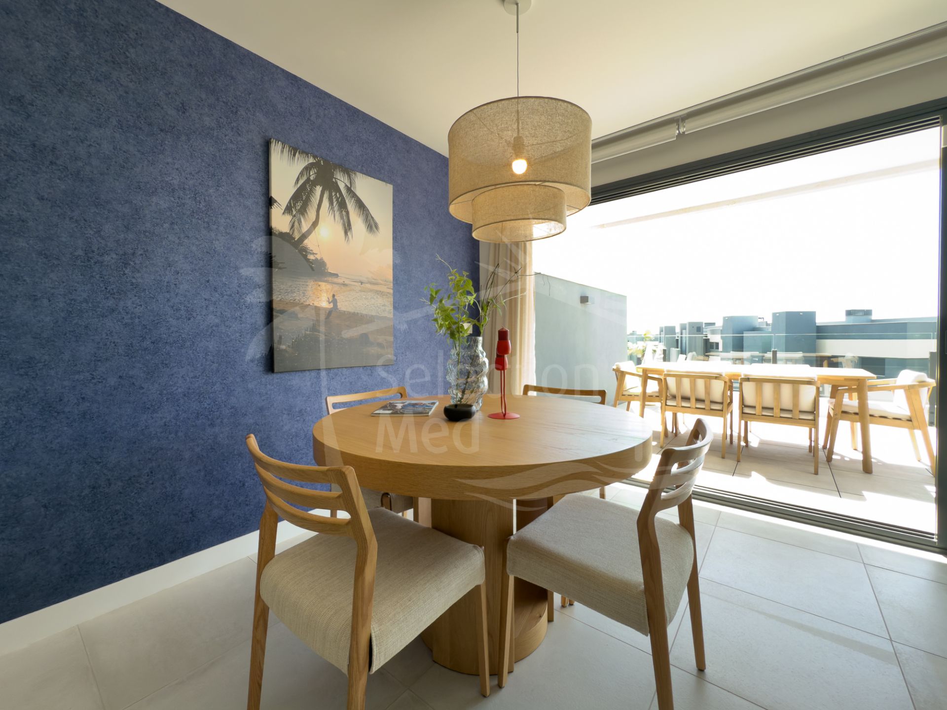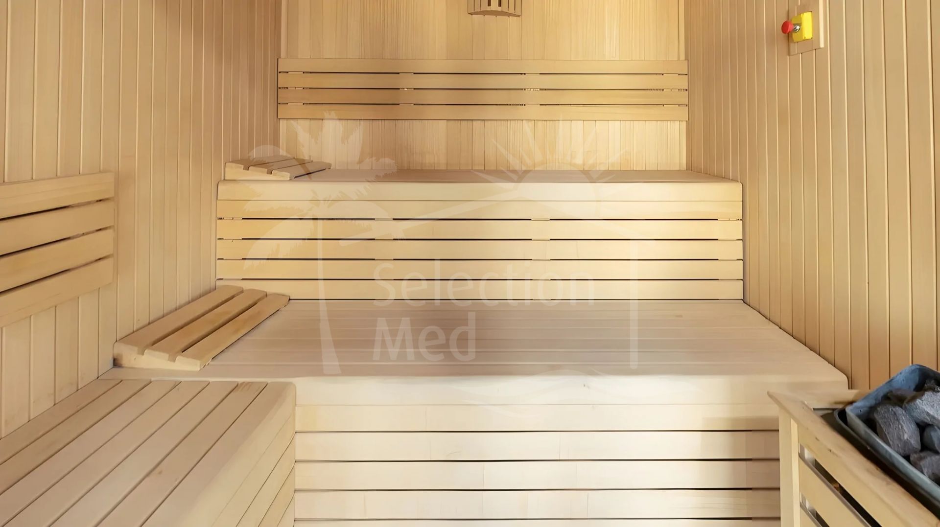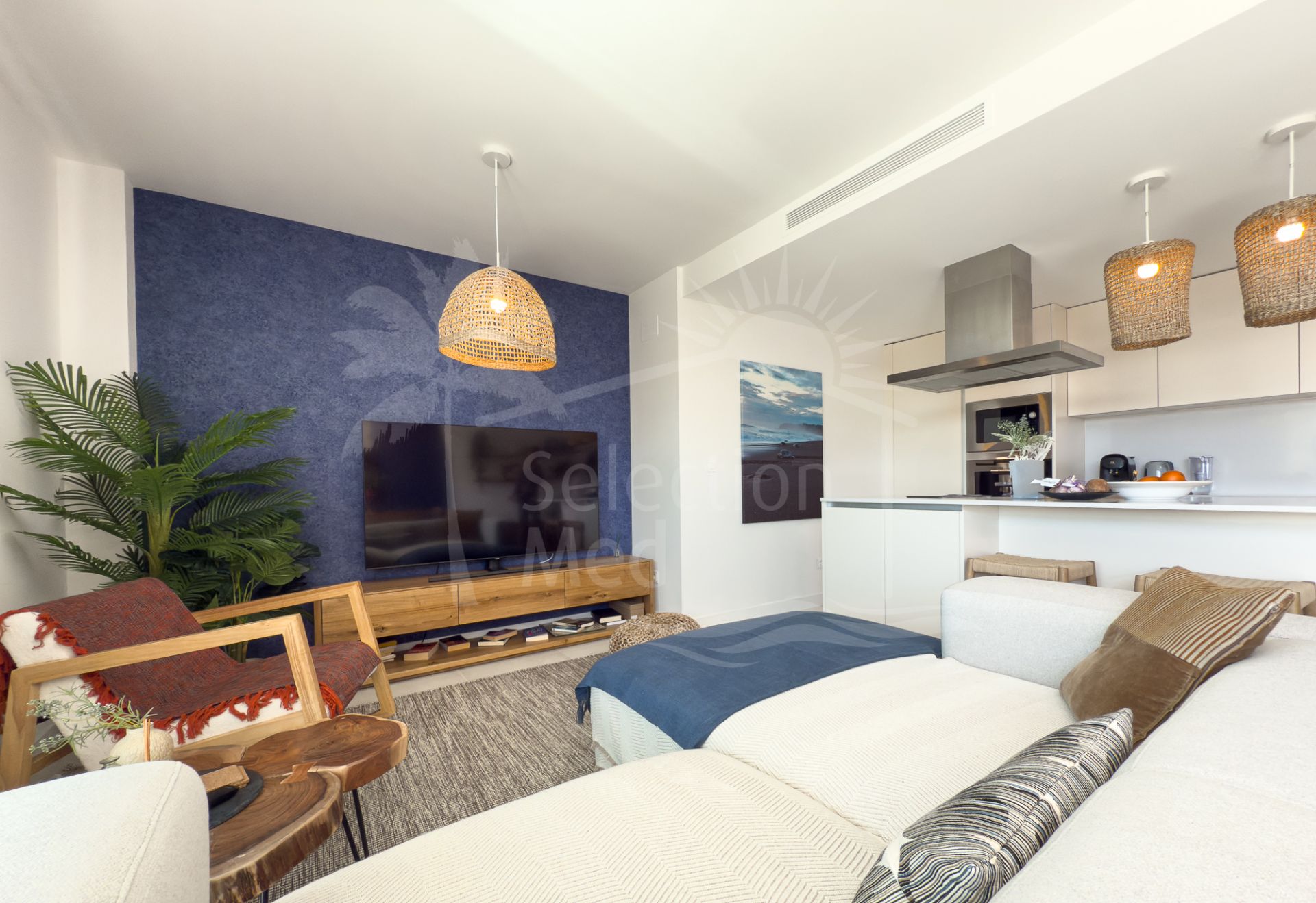 L'appartement dispose de trois chambres spacieuses, deux salles de bains (une avec douche à pied), et un espace de vie ouvert qui mène à une grande terrasse donnant sur les jardins et les montagnes environnantes à droite. Une cuisine entièrement équipée, avec tous les appareils, et est magnifiquement meublée et décorée, ce qui la rend prête à emménager. L'appartement comprend également une salle de stockage et un parking souterrain.