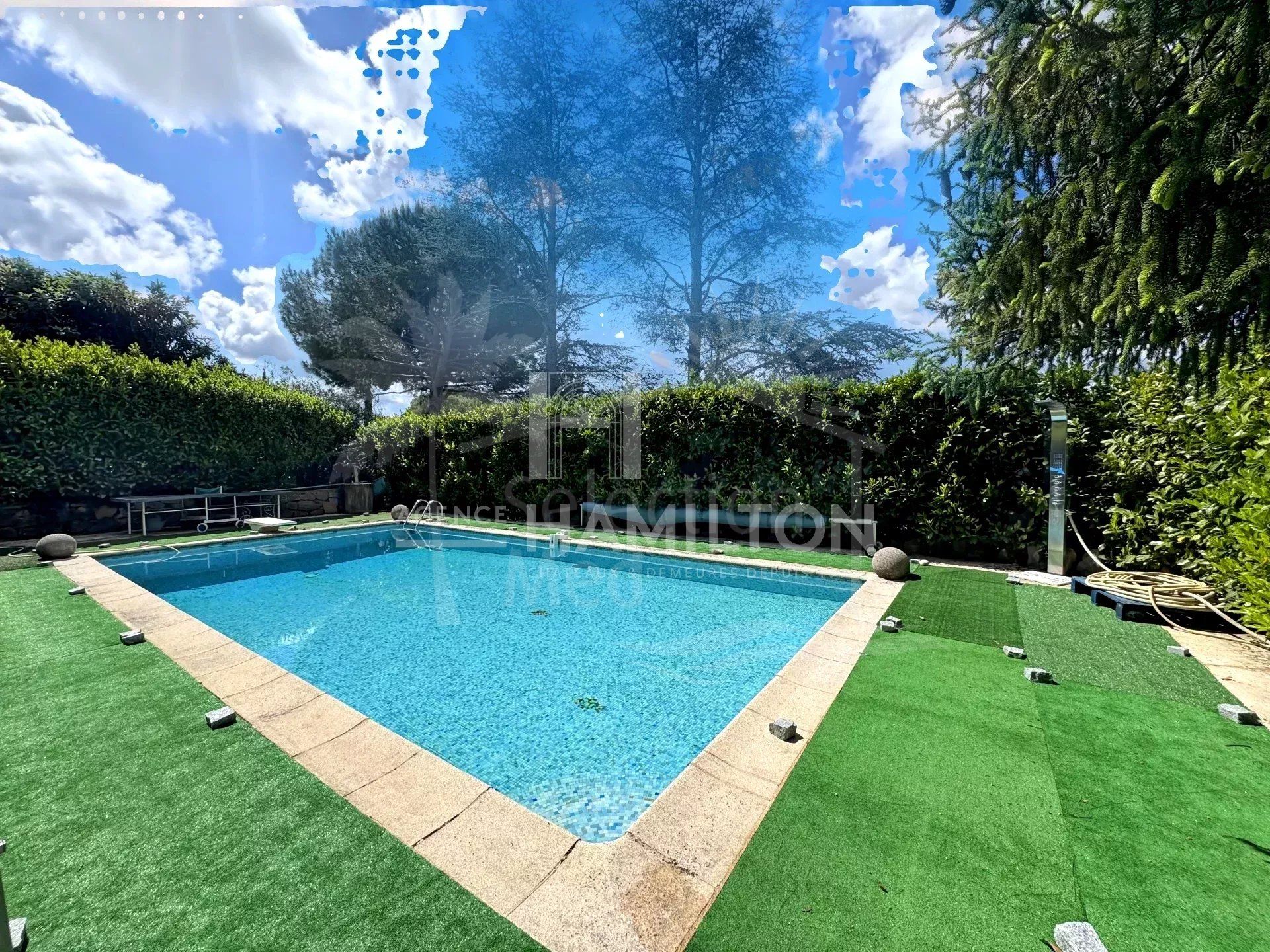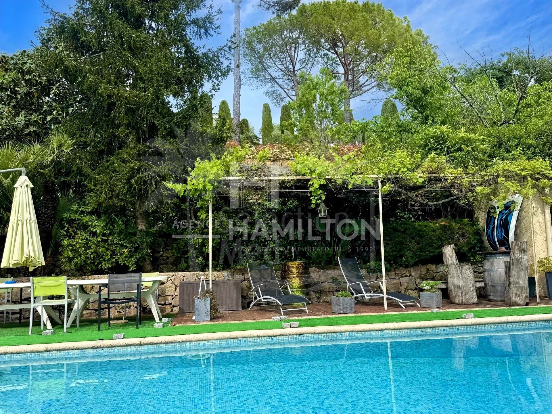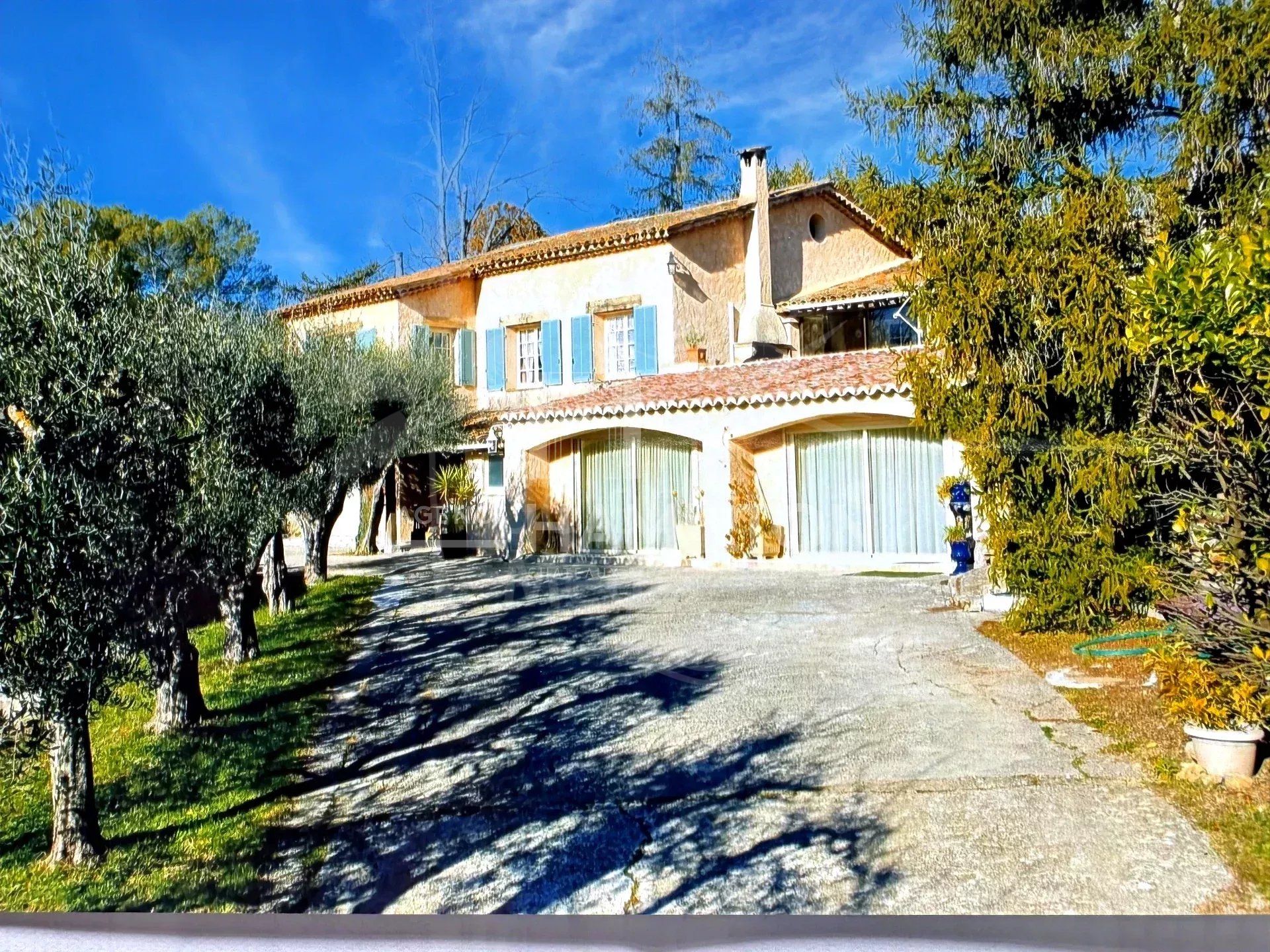 Maison à vendre à Opio avec 4 chambres, 3 salles de bains, construit à 1970 et a piscine. Dimensions: 300m² construit et 2500m² parcelle.