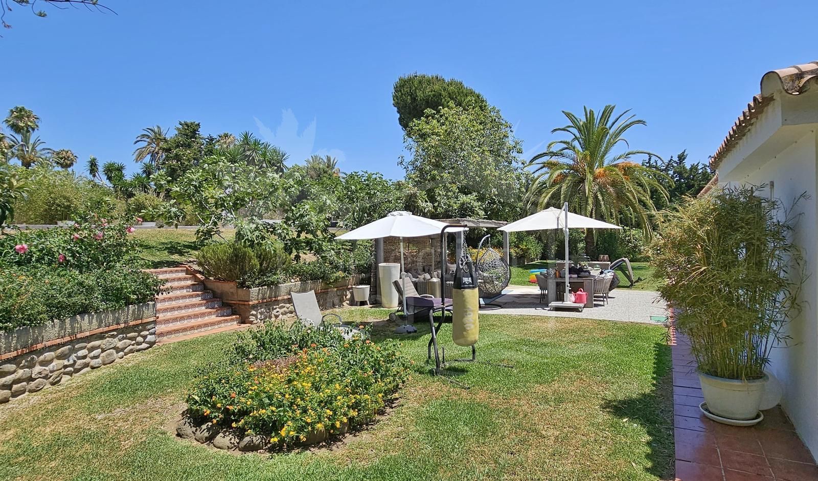 Villa à vendre à Paraiso Barronal, Estepona Est avec 5 chambres, 3 salles de bains, construit à 1998 et a piscine (privé), garage (privé) et jardin (privé). Dimensions: 307m² construit et 2445m² parcelle.