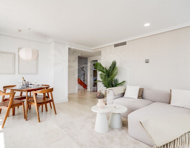 Duplex Penthouse à vendre à Beach Side New Golden Mile, Estepona Est avec 3 chambres, 2 salles de bains, 1 salles de bain en-suite, construit à 2004 et a piscine (communautaire), garage (privé) et jardin (communautaire). Dimensions: 221m² construit, 156m²...