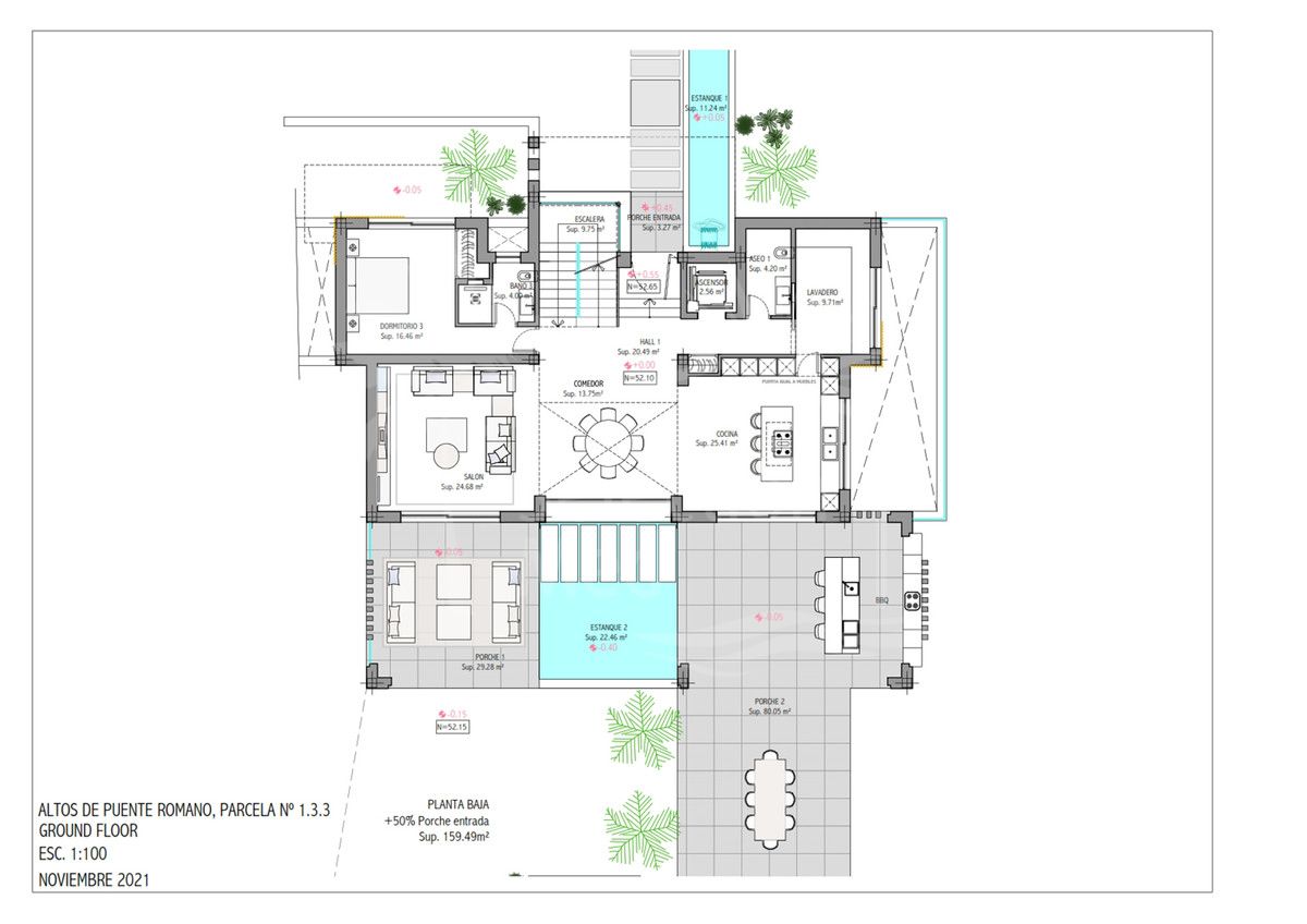 S'étendant sur une impressionnante surface construite de 720m², la villa dispose de sept chambres spacieuses et de huit salles de bains élégamment aménagées, garantissant un hébergement ample pour la famille et les invités. Les intérieurs sont soigneusement conçus pour maximiser le confort et la sophistication, chaque détail étant méticuleusement pensé pour refléter un mode de vie luxueux et moderne. Complétant l'espace intérieur généreux, une magnifique terrasse de 187m² est idéale pour des repas en plein air, des réceptions ou simplement pour profiter du climat méditerranéen.
