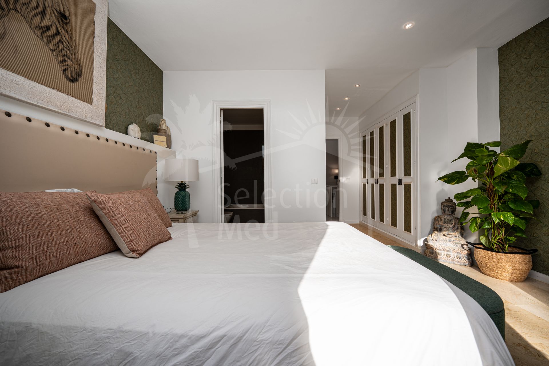 À quelques pas de la mer, cette townhouse rénovée est située dans l’urbanisation très prisée de Laguna Beach à Estepona.