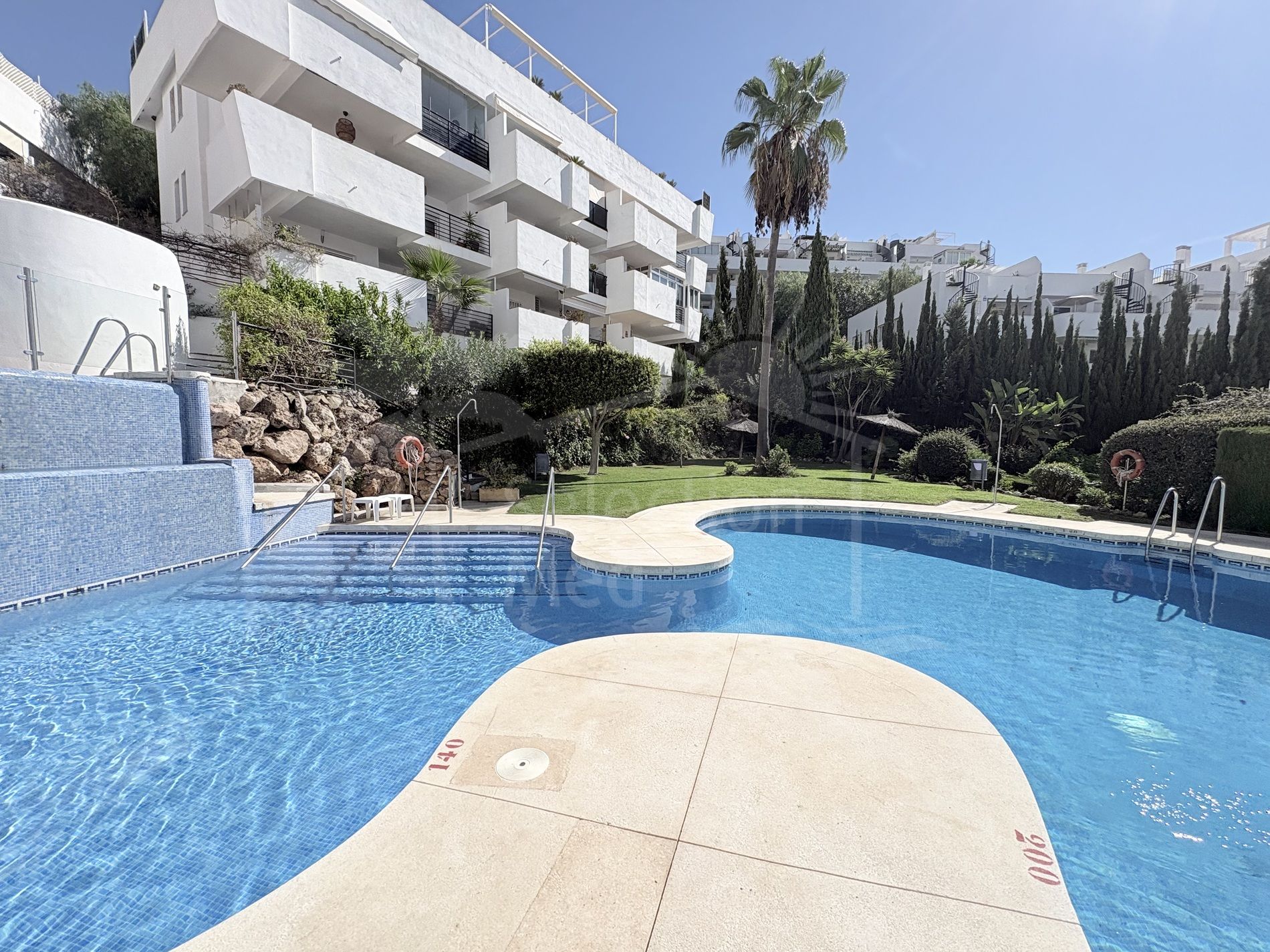Idéalement situé dans le quartier résidentiel calme de Riviera del Sol, à seulement 5 minutes en voiture de la plage, des restaurants, des supermarchés, des écoles et de toutes les commodités essentielles, ce bel appartement d'angle allie intimité, confort et vue spectaculaire.
