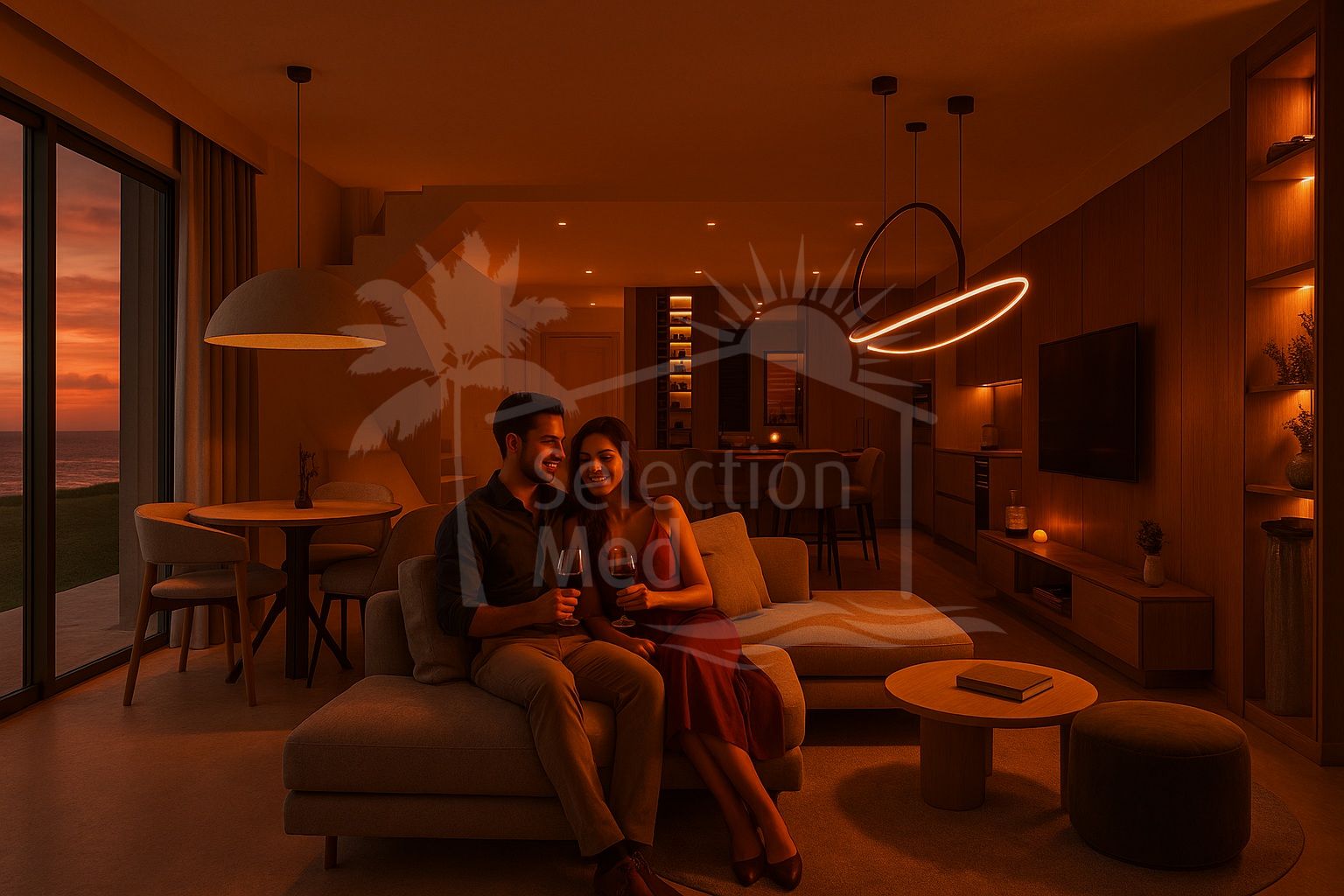 La propriété est conçue pour profiter pleinement de la vie en plein air et des vues dégagées, avec une vue sur la mer depuis tous les niveaux de vie et un vaste solarium sur le toit offrant des panoramas spectaculaires. De grandes terrasses prolongent les espaces de vie vers l'extérieur, offrant des lieux parfaits pour se détendre ou recevoir, sans les contraintes d'entretien d'un jardin privé.