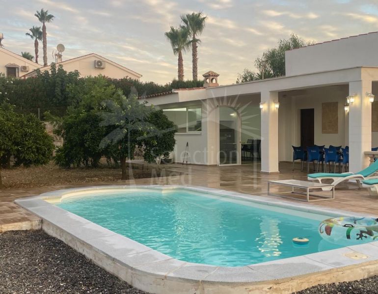 Logement de construction neuve: 1 chambre, 1 salle de bain complète, cuisine, salon-manger et terrasse couverte. Surface construite : 137 m2. Extérieur: grand jardin avec piscine et solarium. Grande terrasse techada. Fait maison pour outils de jardin. Grande aire de stationnement. Parcelle: 3.758 m2...
