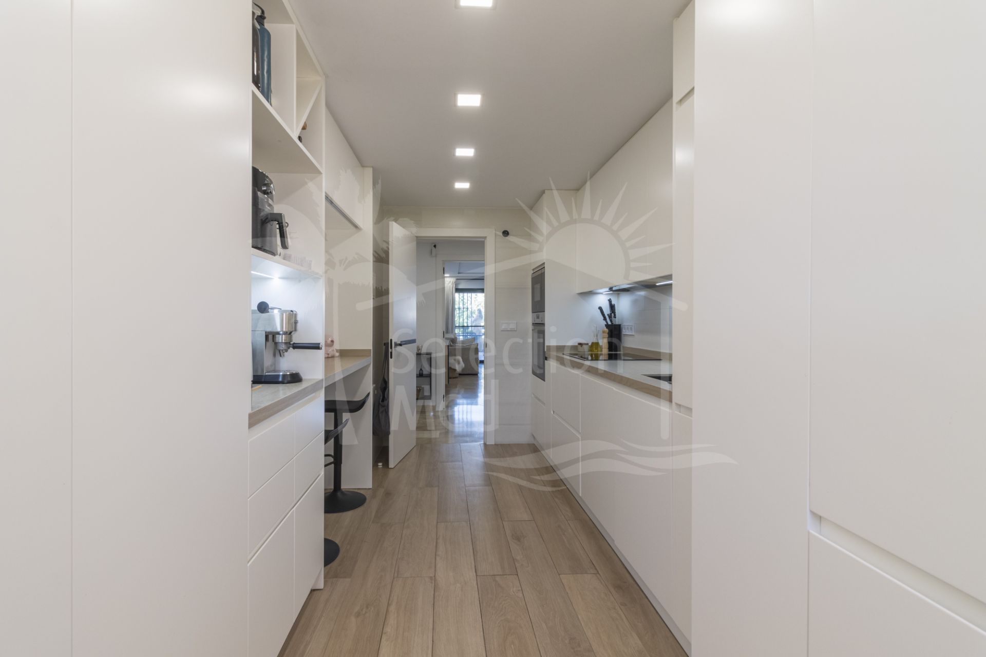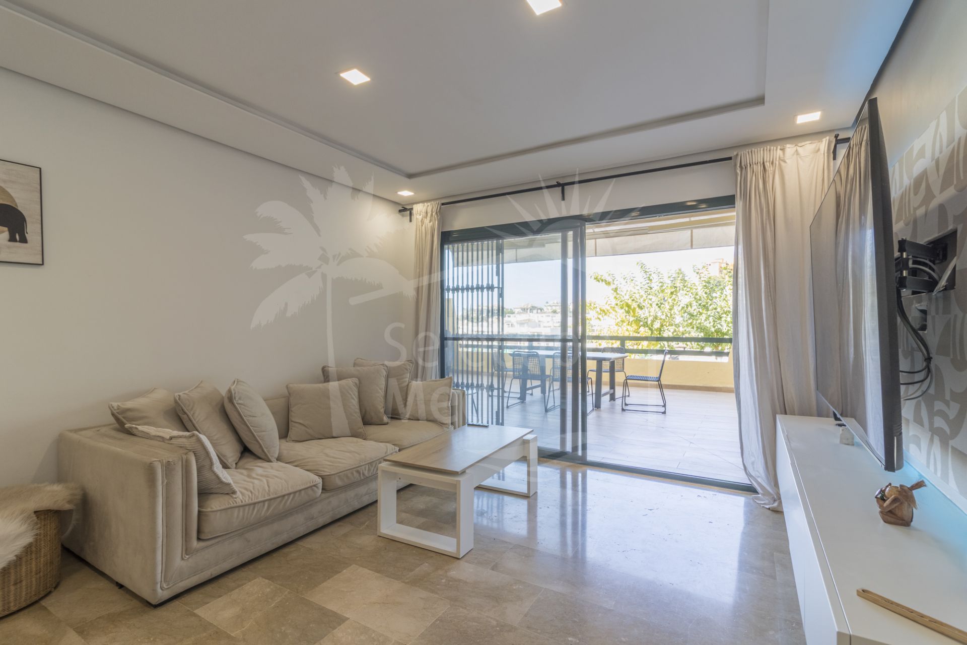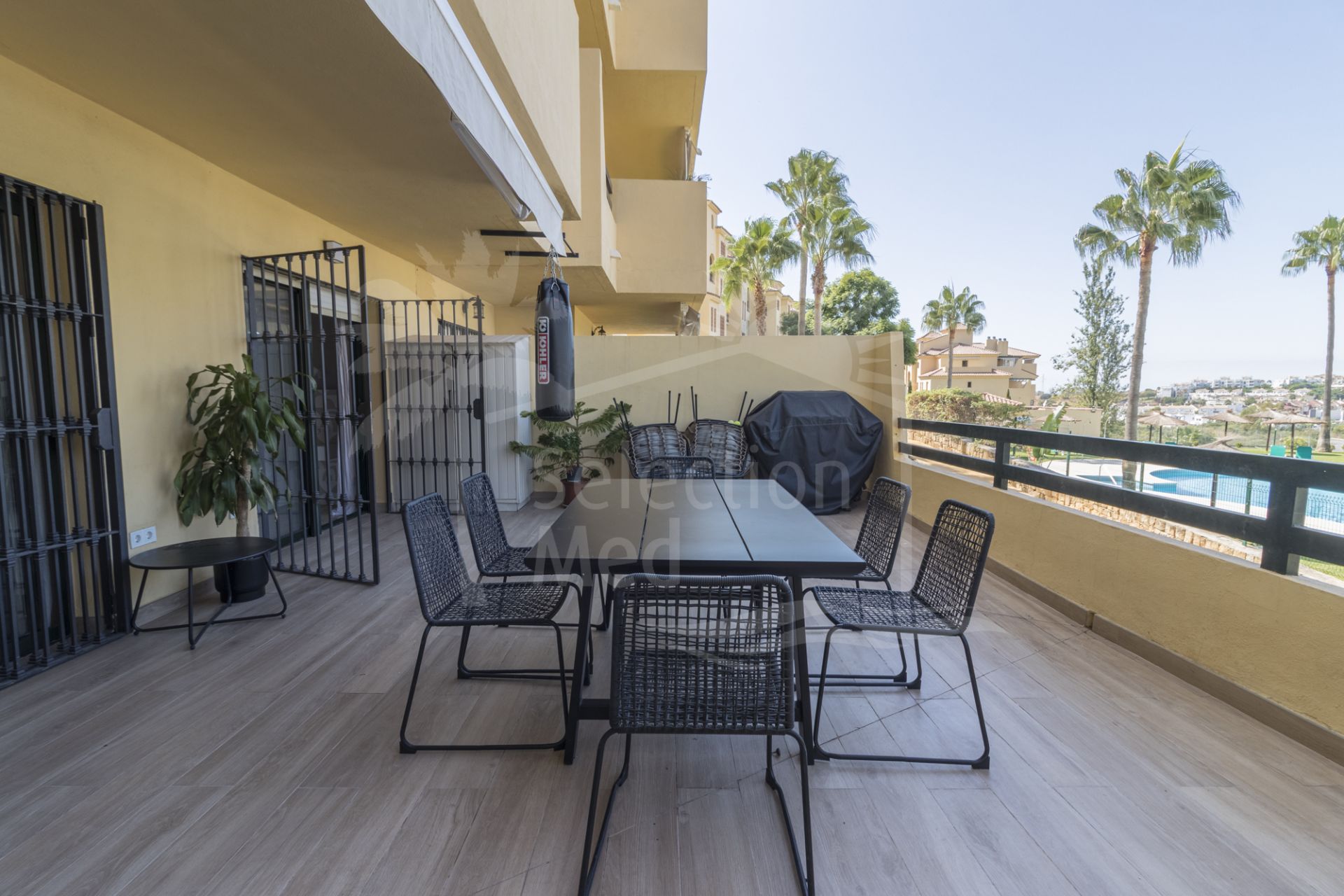 Appartement à vendre à Selwo, Estepona Est avec 2 chambres, 2 salles de bains, construit à 2005 et a piscine (communautaire), garage (privé) et jardin (communautaire). Dimensions: 110m² construit et 25m² terrasse.