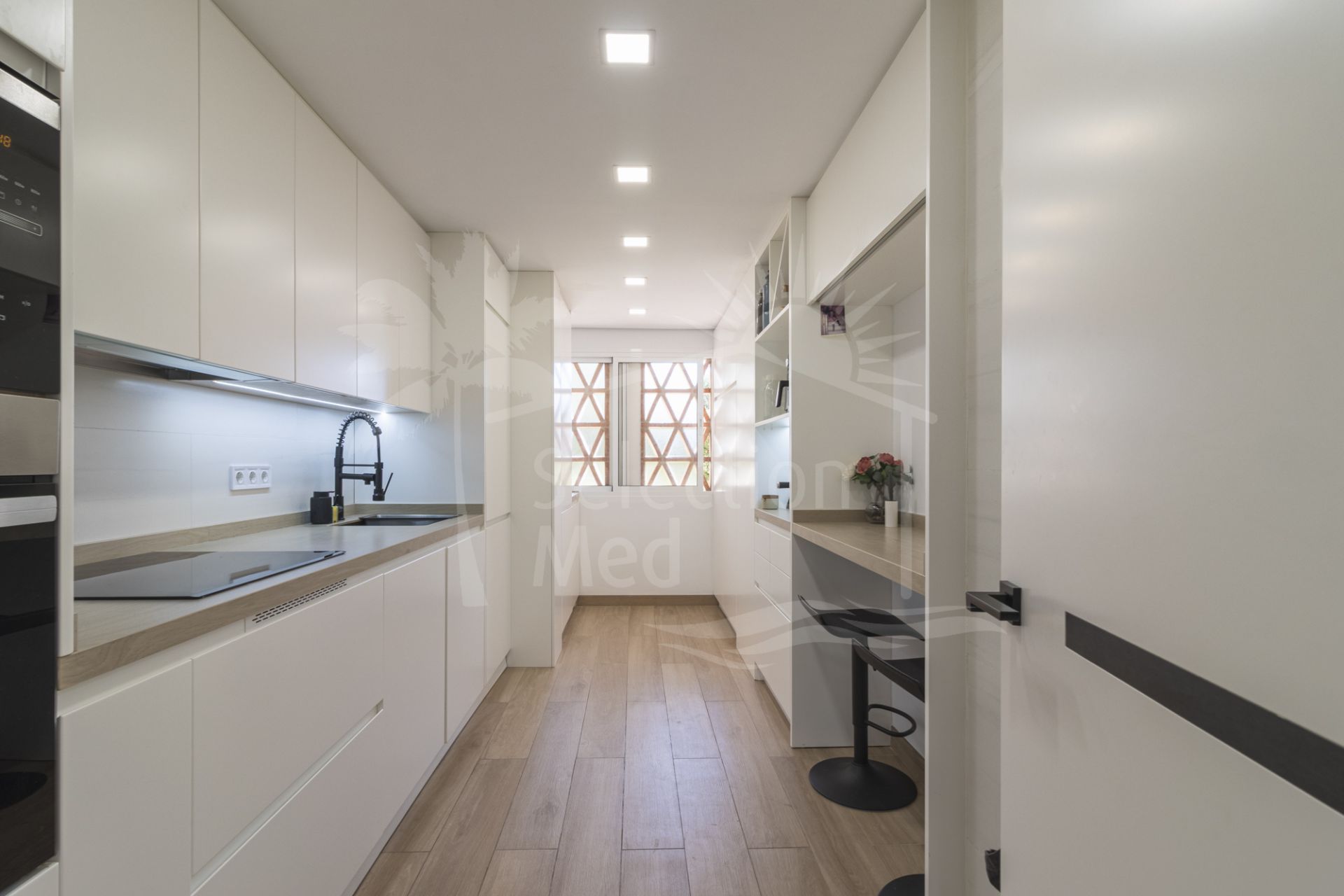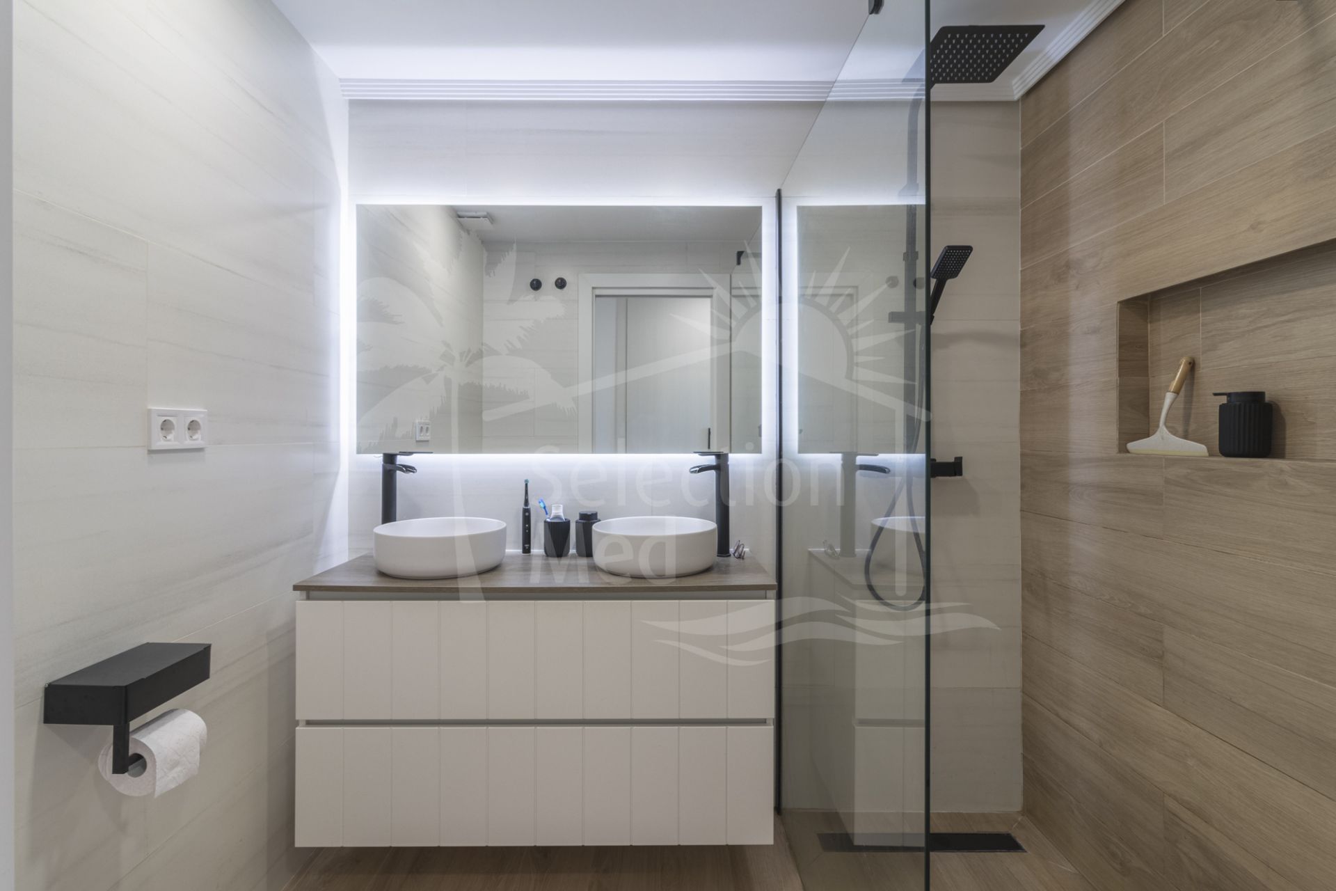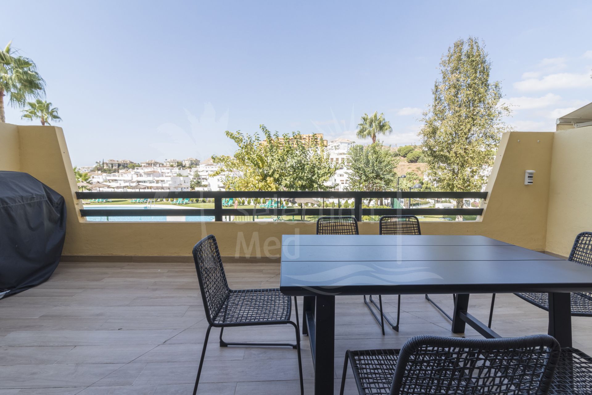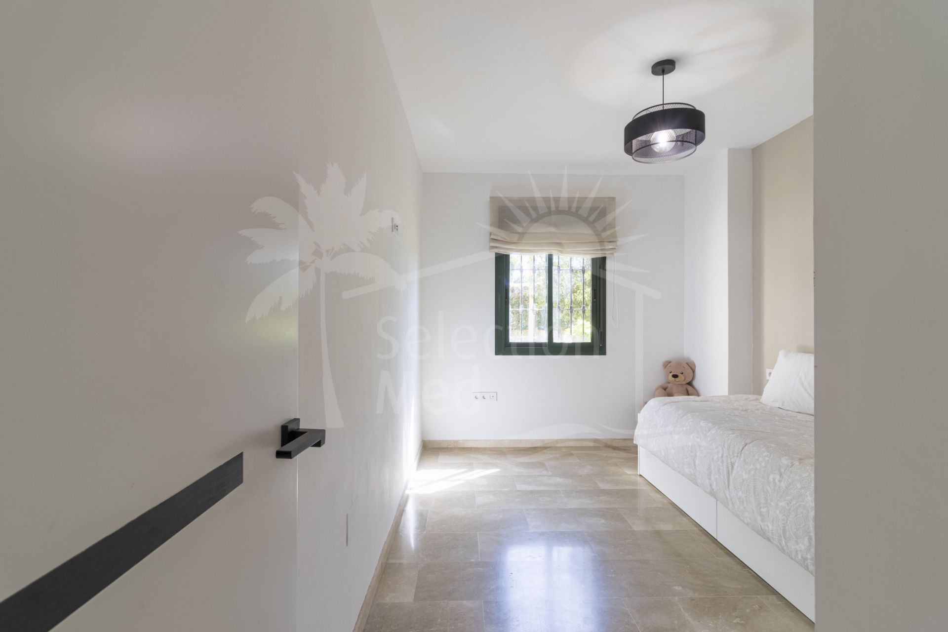 Appartement à vendre à Selwo, Estepona Est avec 2 chambres, 2 salles de bains, construit à 2005 et a piscine (communautaire), garage (privé) et jardin (communautaire). Dimensions: 110m² construit et 25m² terrasse.