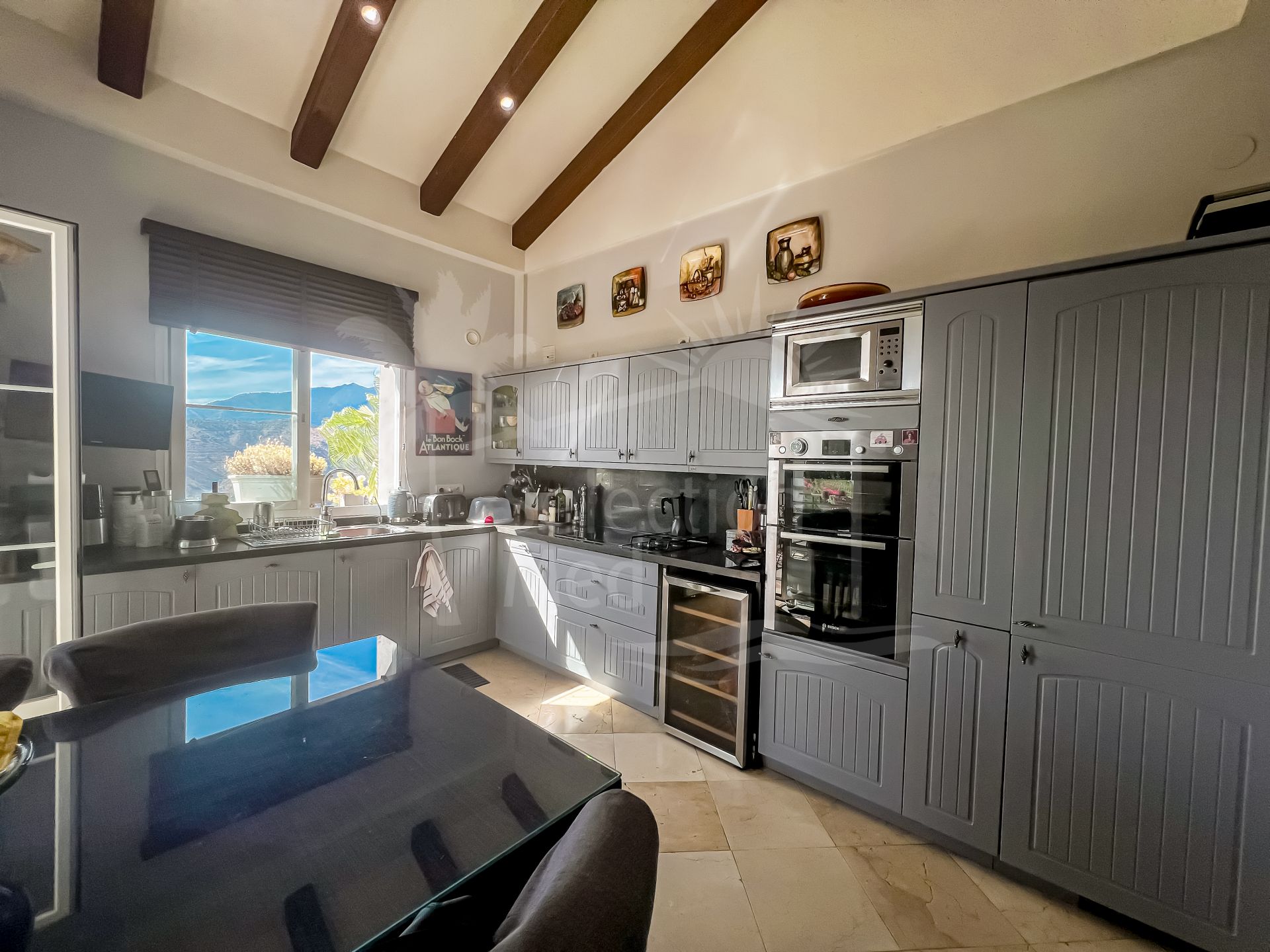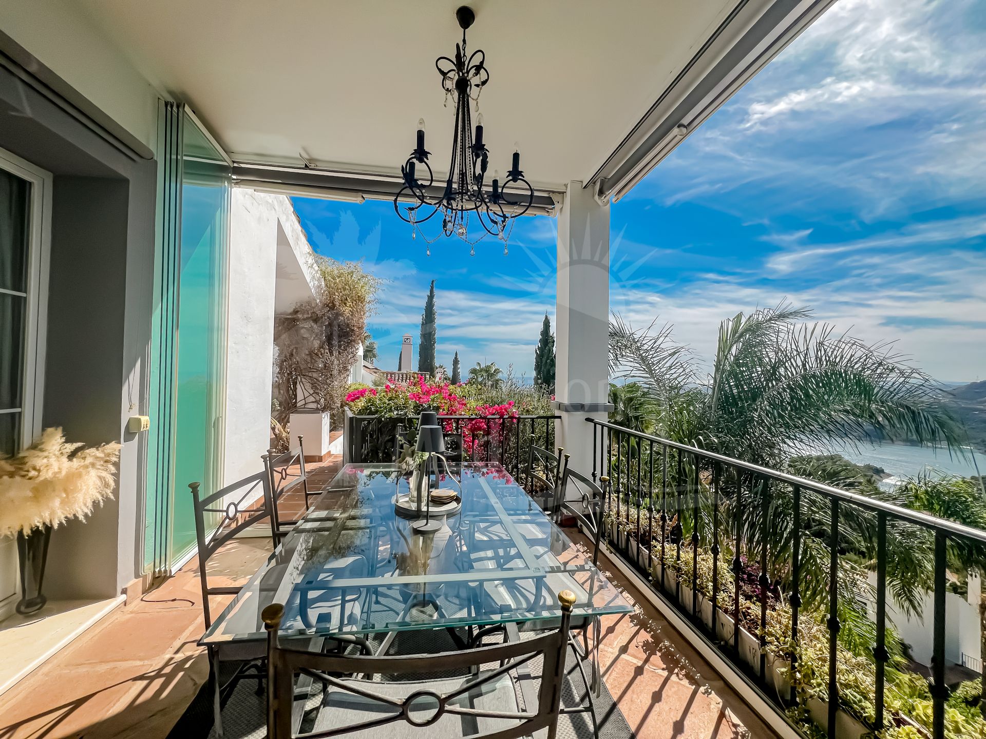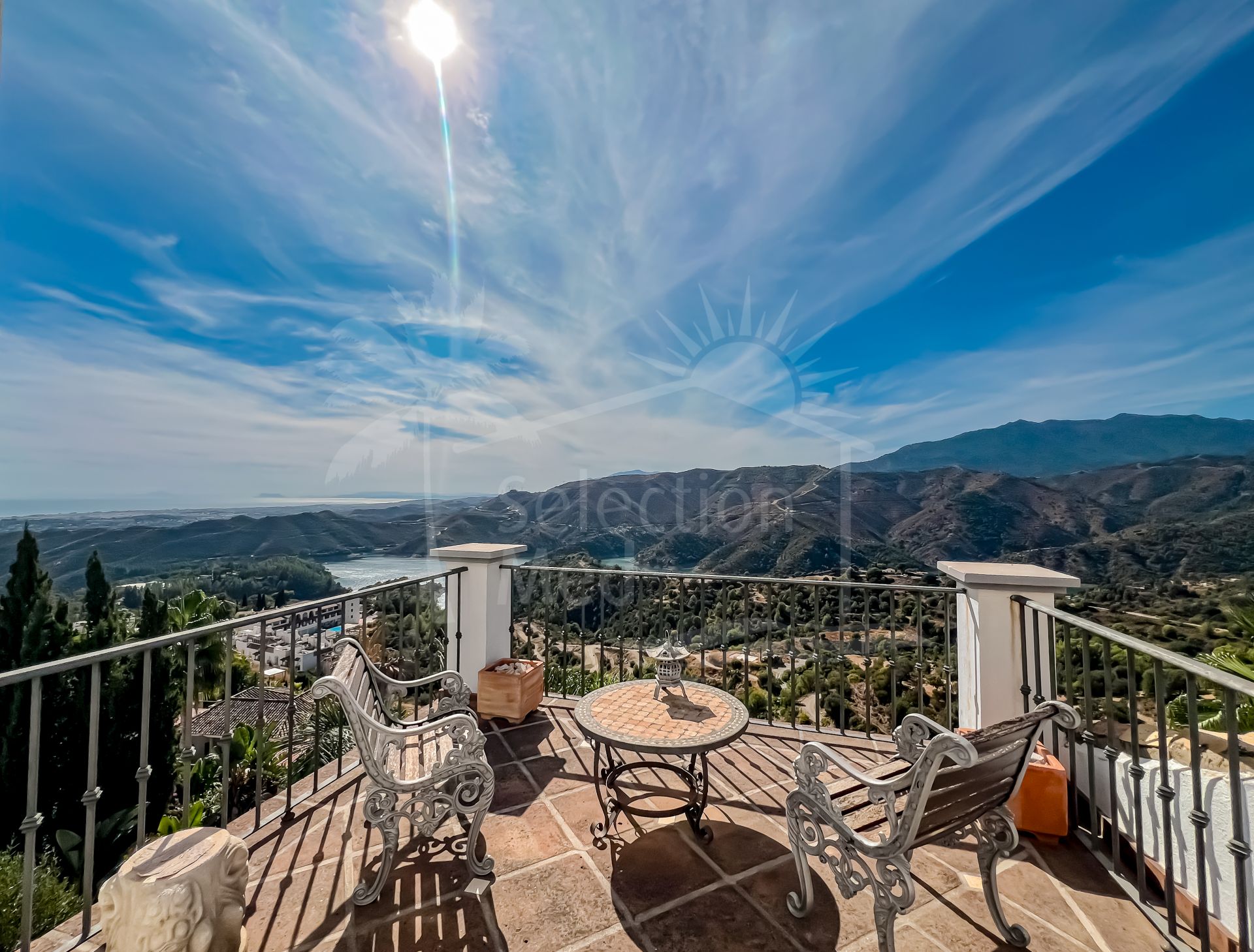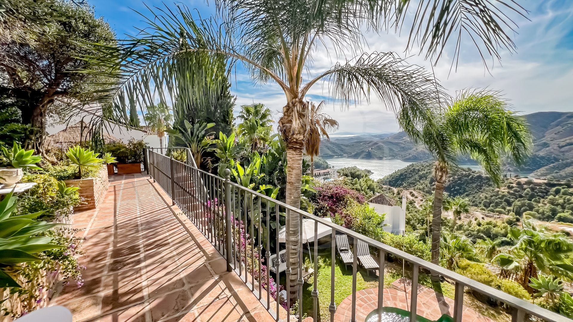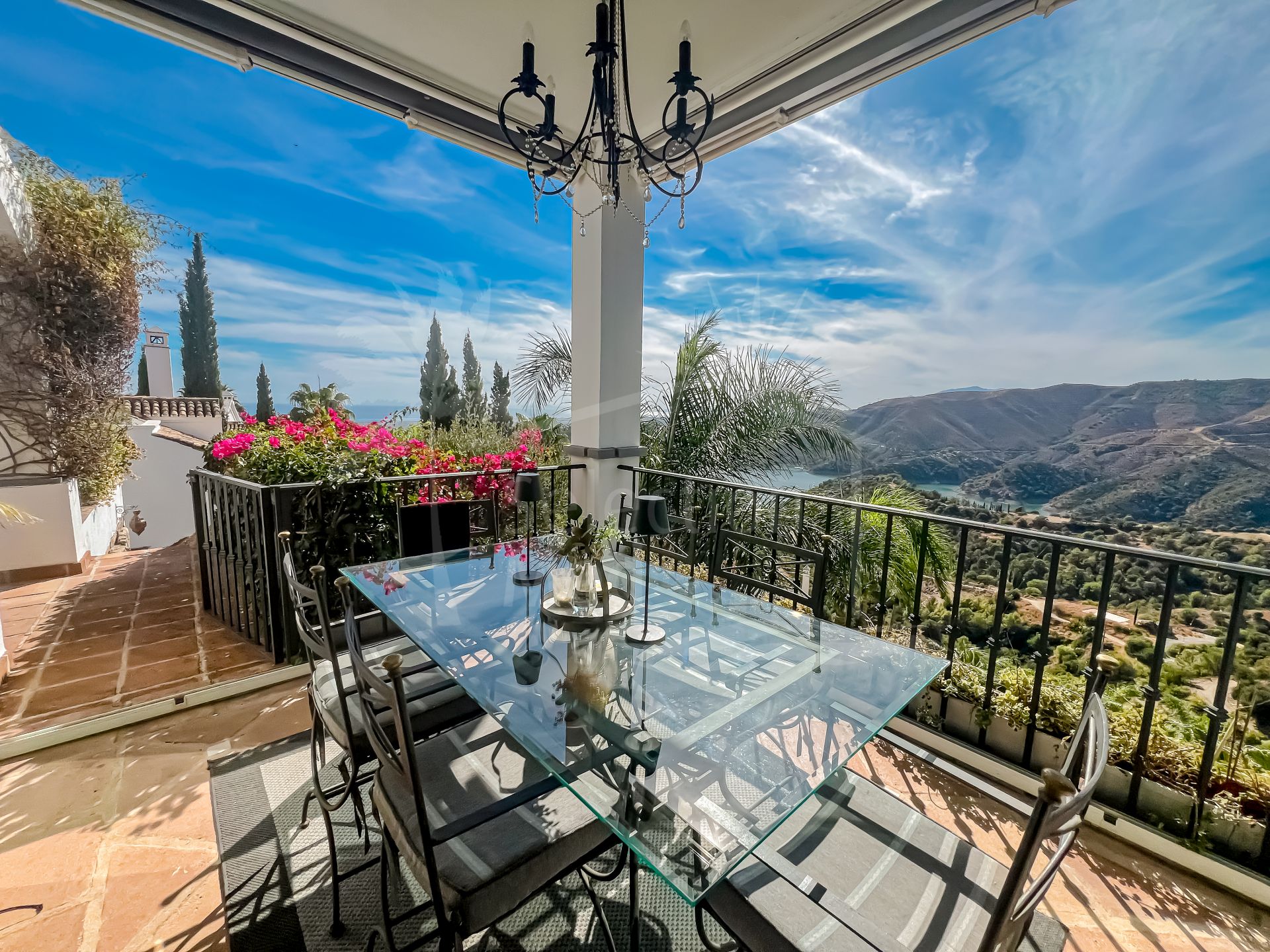 En entrant dans la maison, vous êtes accueilli dans un vaste espace de vie sur votre gauche. Celui-ci s’ouvre harmonieusement sur une terrasse — partiellement couverte, partiellement ouverte — où vous pourrez admirer des vues à couper le souffle sur la mer, Gibraltar et le lac d’Istán. C’est l’endroit idéal pour savourer votre café du matin dans un environnement paisible.