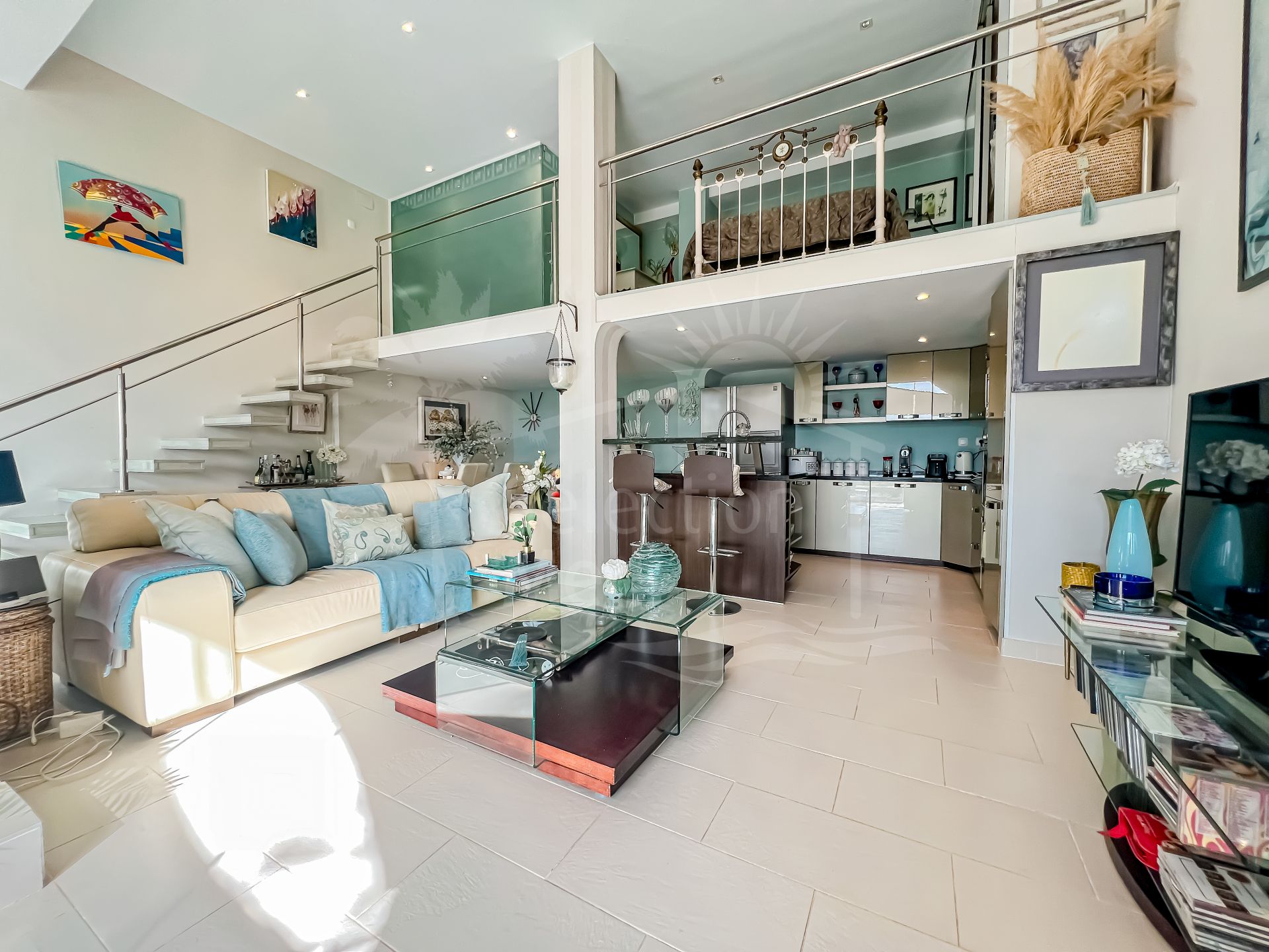 L’appartement d’invités est spacieux, avec une cuisine ouverte sur le séjour. Une mezzanine accueille la chambre et la salle de bains. De grandes baies vitrées s’ouvrent sur une terrasse couverte menant directement à la piscine, assurant une abondance de lumière naturelle et une fluidité intérieur-extérieur. L’appartement d’invités est accessible depuis l’extérieur de la maison, ce qui lui confère un potentiel de revenu locatif.