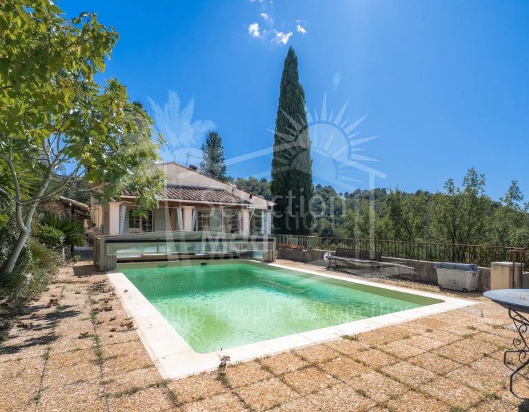 Maison à vendre à Valbonne avec 3 chambres, 3 salles de bains, 1 toilettes et a piscine et garage (abri voiture). Dimensions: 210m² construit, 1500m² parcelle et 150m² intérieur. Cette propriété, orientation sud-ouest, dispose des commodités suivantes: À proximité des commerces,...