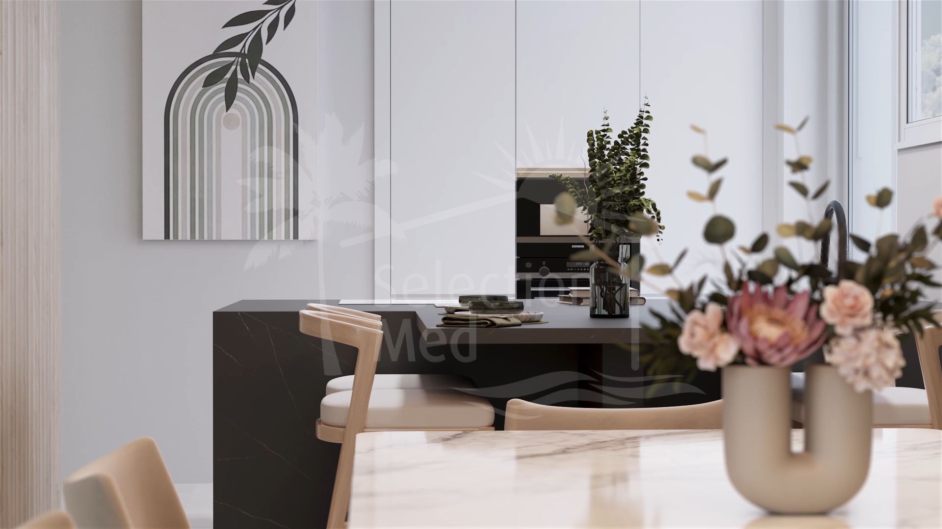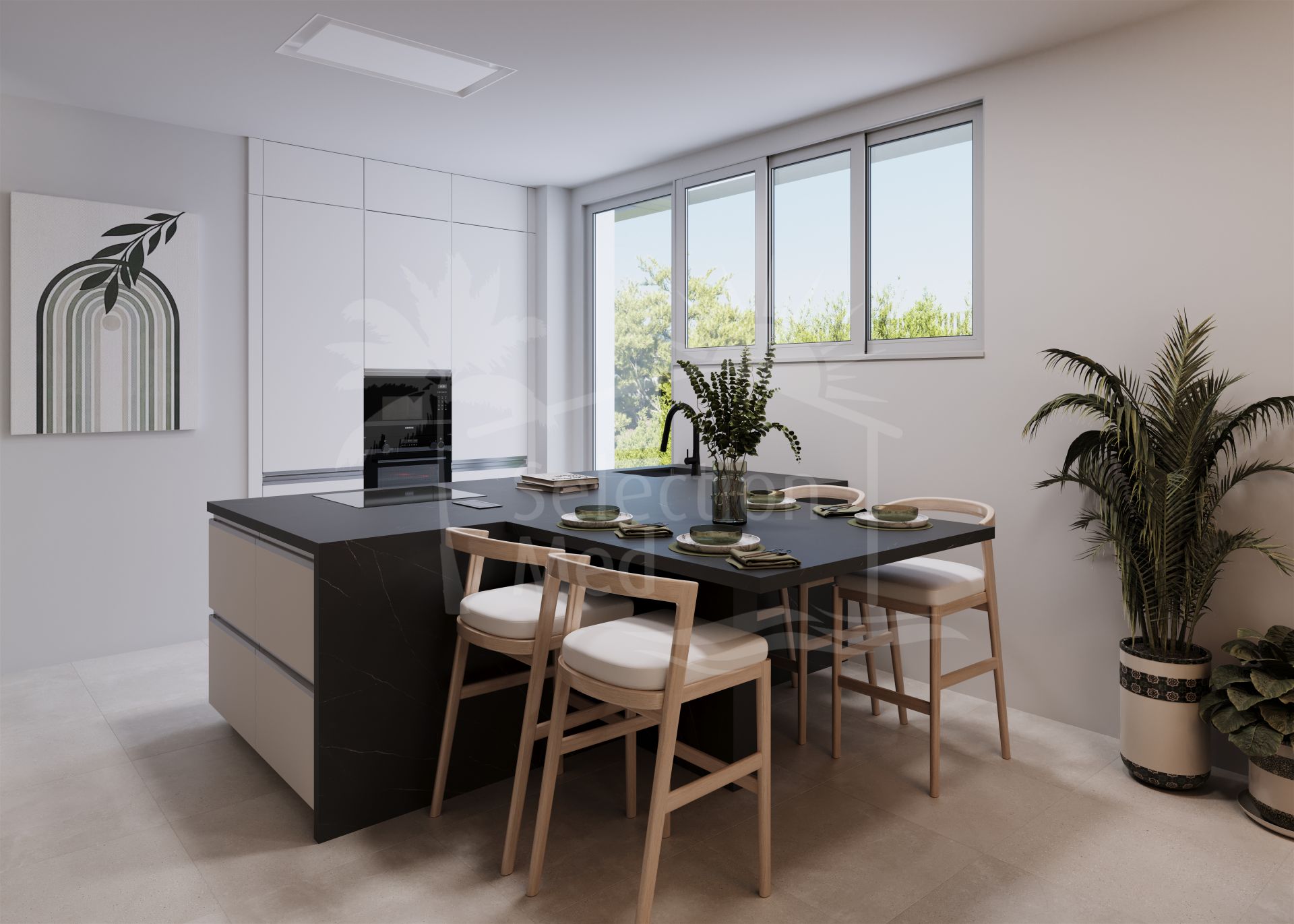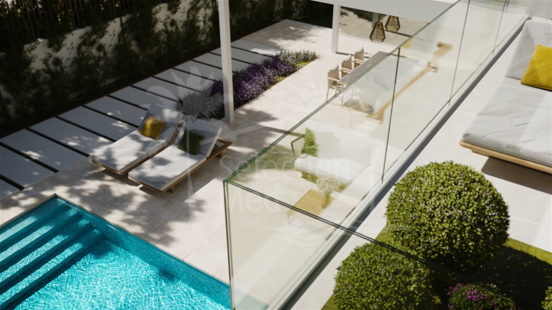 La villa disposera de quatre niveaux, avec un sous-sol, et au rez-de-chaussée principal, un salon / salle à manger plan ouvert, une cuisine américaine entièrement équipée, et des terrasses couvertes spacieuses pour manger en plein air. Au niveau supérieur se trouvent les trois chambres doubles, toutes avec salle de bains privative, et une autre terrasse. En outre, il y a un solarium spacieux d'où il ya une vue spectaculaire sur la campagne environnante et la mer.