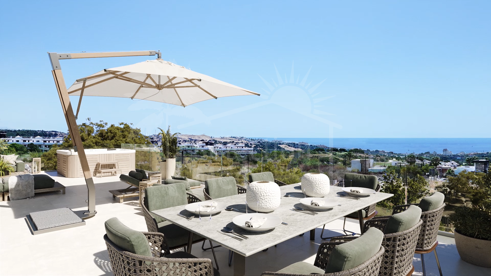 Située sur l'un des points les plus hauts du complexe de golf de plus en plus populaire de Valle Romano, la propriété bénéficiera d'une vue panoramique sur la mer, d'un jardin paysagé privé, avec port de voiture pour 2 voitures et d'une piscine privée.