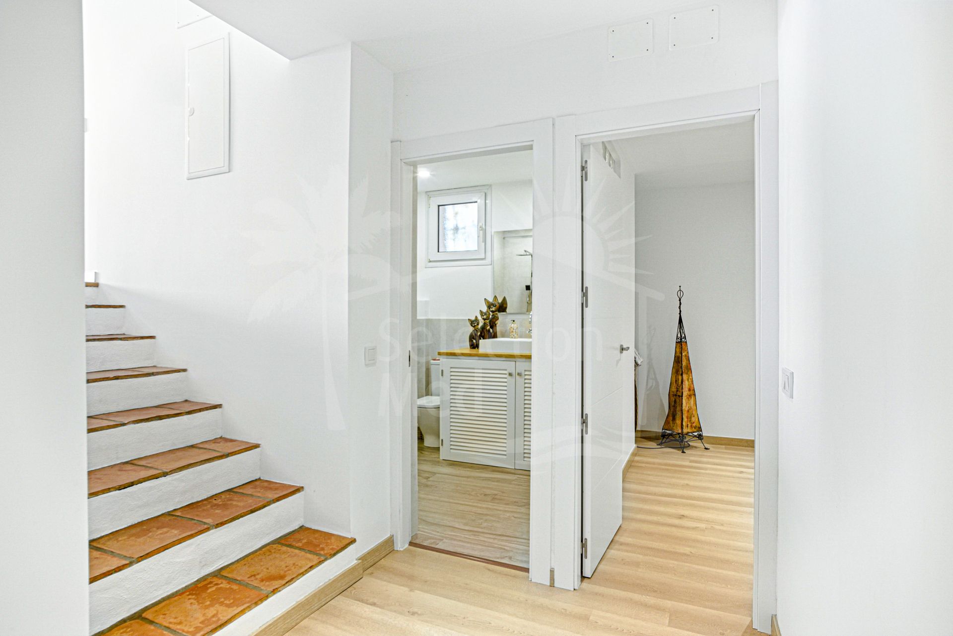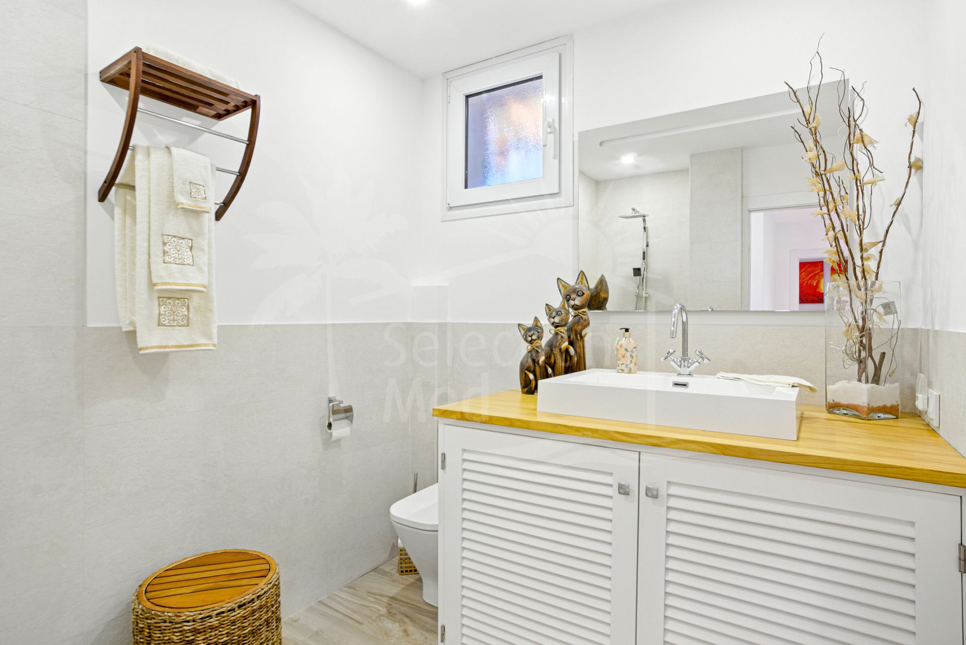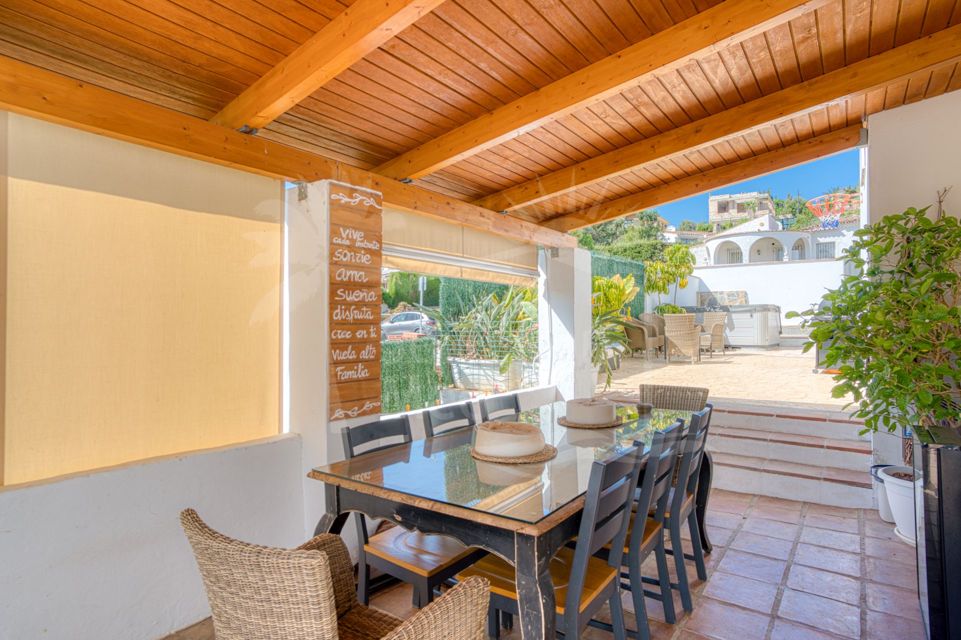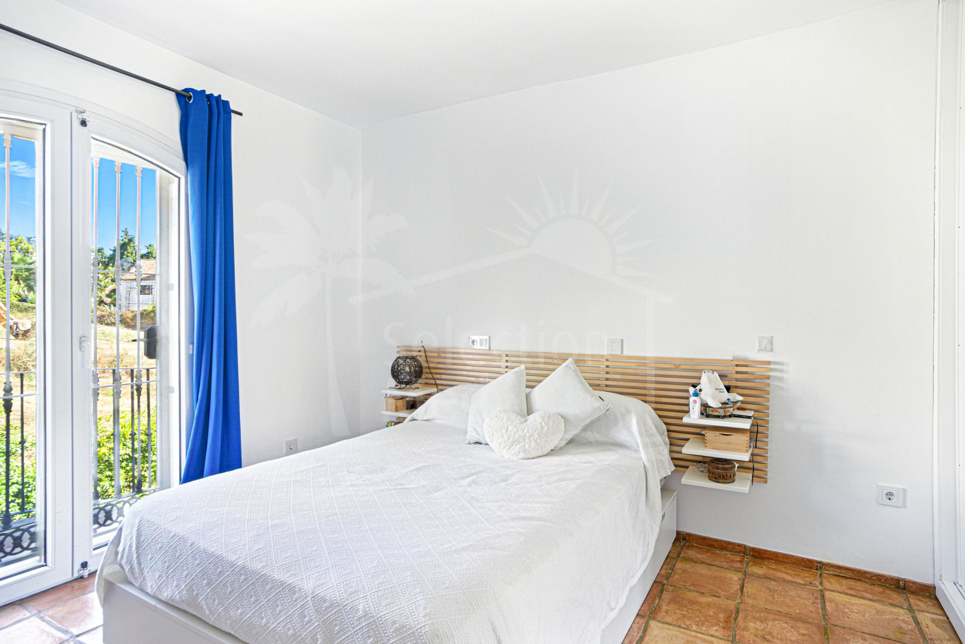 Fantastique villa avec vue sur le golf dans la zone prestigieuse de Valle Romano (Estepona), situé près de la plage, des supermarchés, des restaurants et des bars de plage. Cette propriété bénéficie d'une orientation sud-ouest et offre une combinaison parfaite de confort, d'intimité et d'un excellent emplacement dans un quartier calme et bien relié. La maison est répartie sur trois étages, à l'étage principal, il y a un salon spacieux avec accès direct à la terrasse, le jardin et la piscine privée, une cuisine entièrement équipée, deux chambres et une salle de bains complète. L'étage supérieur dispose de la chambre principale avec salle de bains privative et accès à une grande terrasse avec vue fantastique. L'étage inférieur comprend deux chambres supplémentaires et une salle de bains. Une des chambres est actuellement utilisée comme un bureau, et ce niveau offre la possibilité d'être transformé en un appartement indépendant. Les autres caractéristiques comprennent les placards, la salle de rangement, le garage privé, le système d'alarme, les caméras de sécurité et les panneaux solaires.