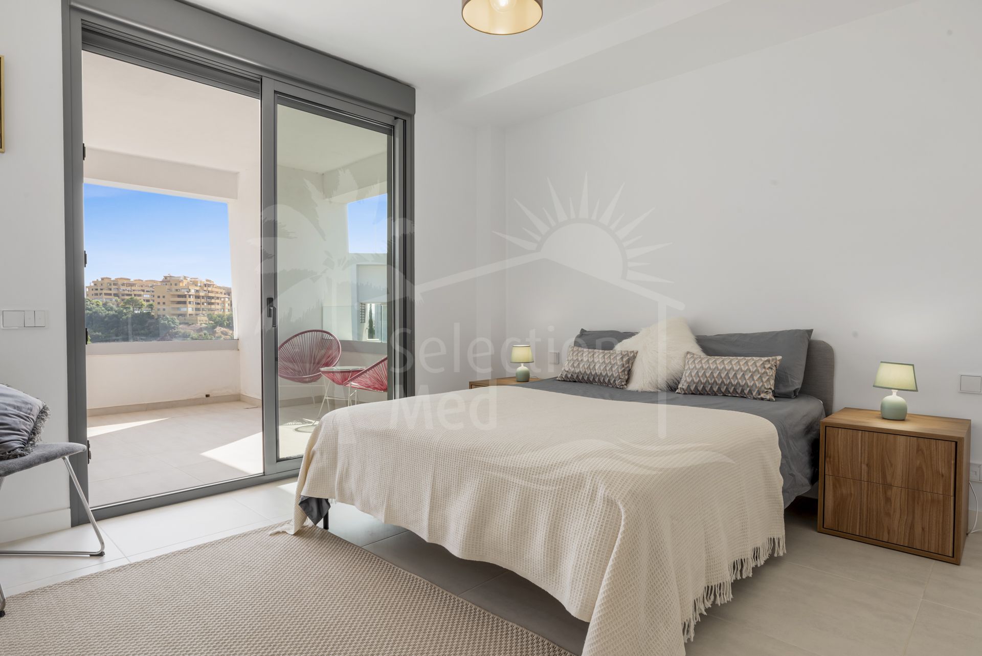 Cette propriété, orientation sud-est, dispose des commodités suivantes: cuisine équipée, climatisation, proche des écoles, entièrement meublé, vue mer, vue campagne, pièce de service, résidence fermée, excellent état, garageincludedinprice, ascenseur et golf à proximité.