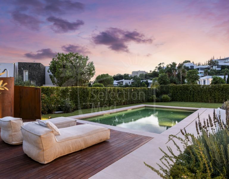 Découvrez l’art de vivre méditerranéen contemporain dans cette villa neuve de 4 chambres à vendre à Puerto del Capitán, Benahavís — une communauté fermée exclusive à seulement quelques minutes de Puerto Banús, San Pedro et des plages de la Costa...