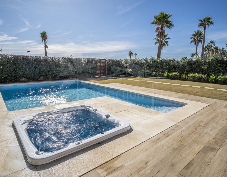 Villa à vendre à Zona F, Sotogrande Alto avec 5 chambres, 4 salles de bains, 1 toilettes, construit à 2018 et a piscine (privé), garage (privé) et jardin (privé). Dimensions: 650m² construit, 1644m² parcelle, 602m² intérieur et 48m² terrasse. Cette propriété,...