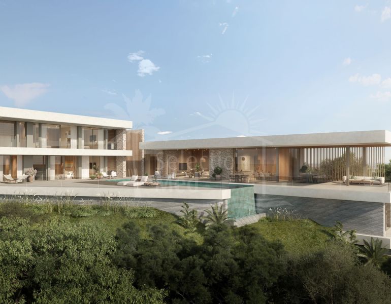 Villa à vendre à Estepona avec 4 chambres, 5 salles de bains et a piscine (privé) et jardin. Dimensions: 764.31m² construit et 375.62m² terrasse. Cette propriété dispose des commodités suivantes: appartement séparé, vue mer et téléphone.
