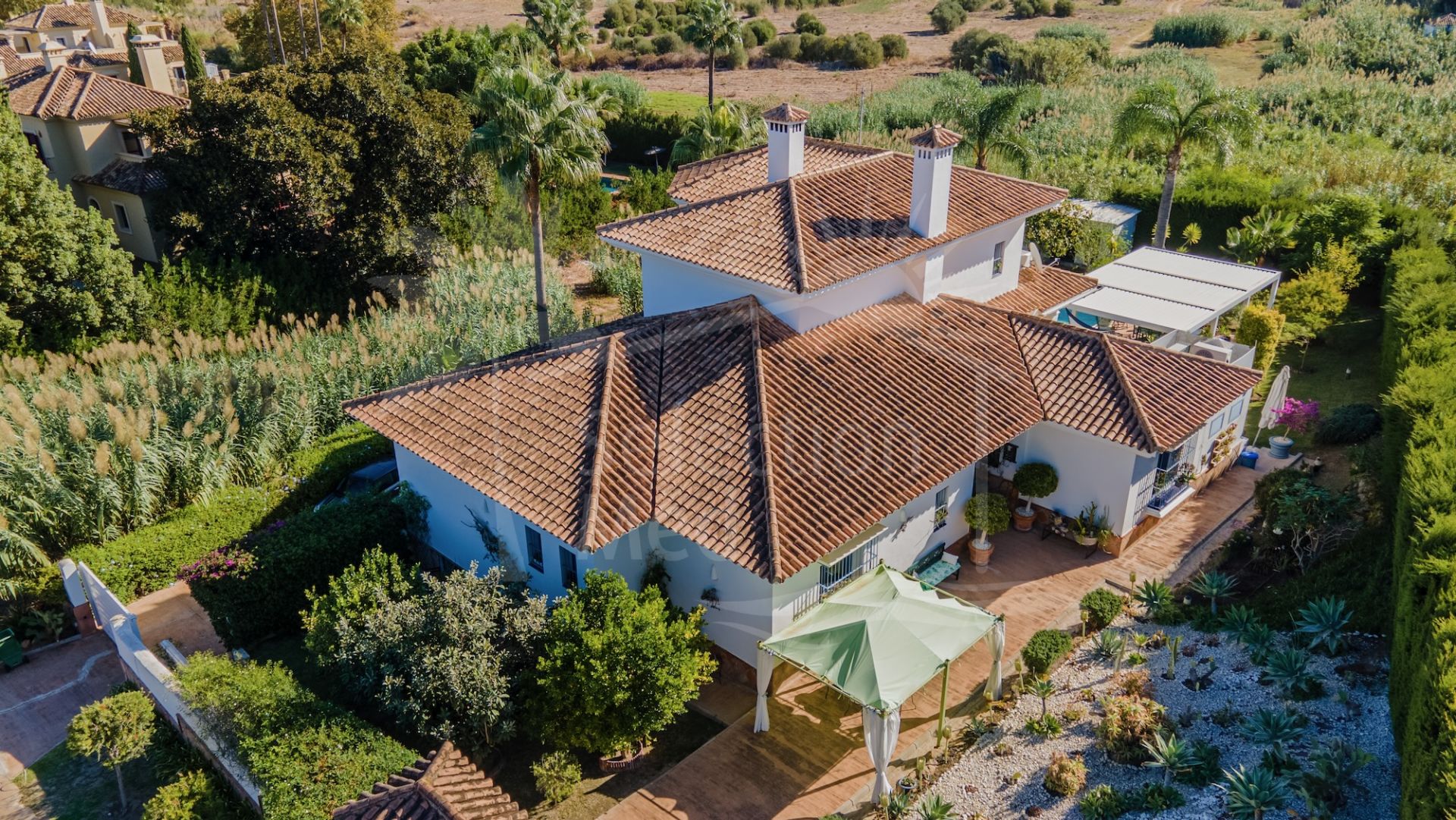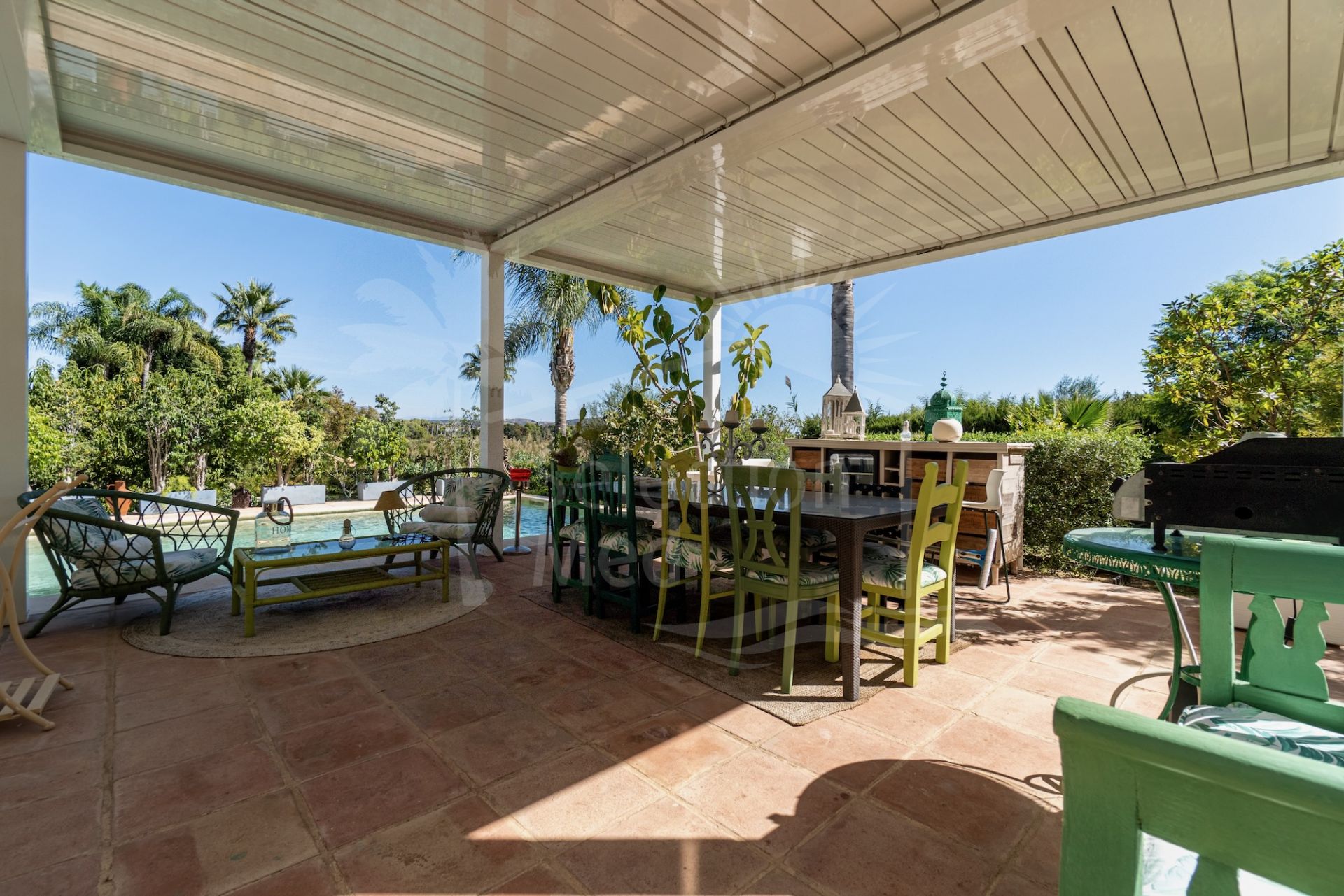 Villa à vendre à Zona B, Sotogrande Costa avec 6 chambres, 5 salles de bains, 4 salles de bain en-suite, 1 toilettes, construit à 2002 et a piscine (privé) et jardin (privé). Dimensions: 503m² construit, 1398m² parcelle, 442m² intérieur et 61m² terrasse.