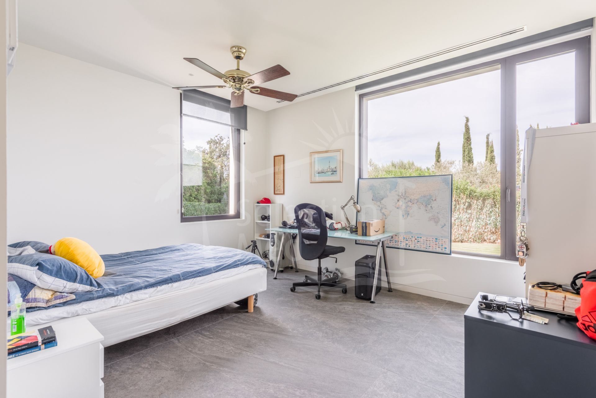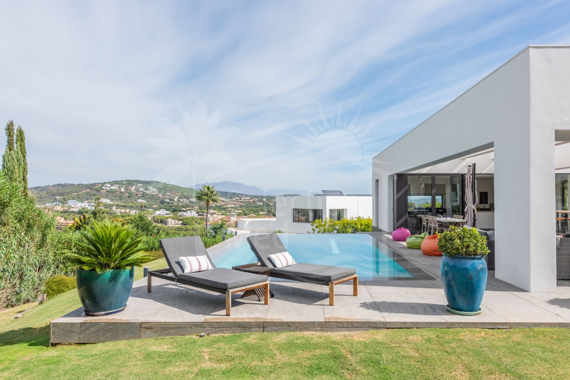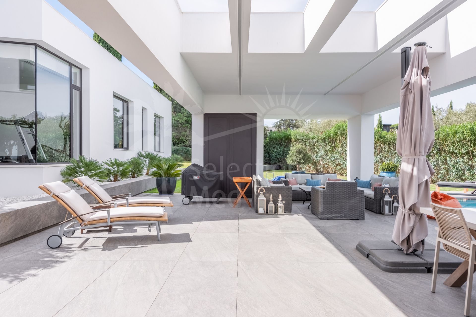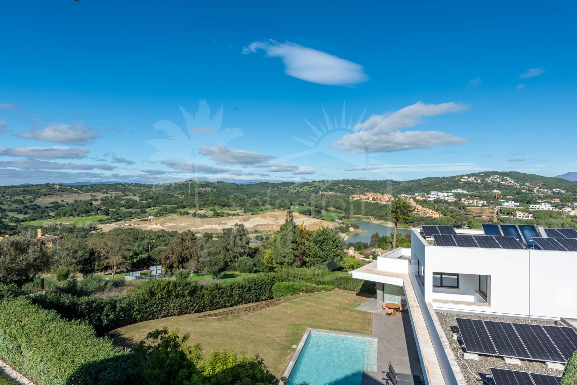 Villa à vendre à Zona F, Sotogrande Alto avec 5 chambres, 4 salles de bains, 1 toilettes, construit à 2018 et a piscine (privé), garage (privé) et jardin (privé). Dimensions: 650m² construit, 1644m² parcelle, 602m² intérieur et 48m² terrasse.
