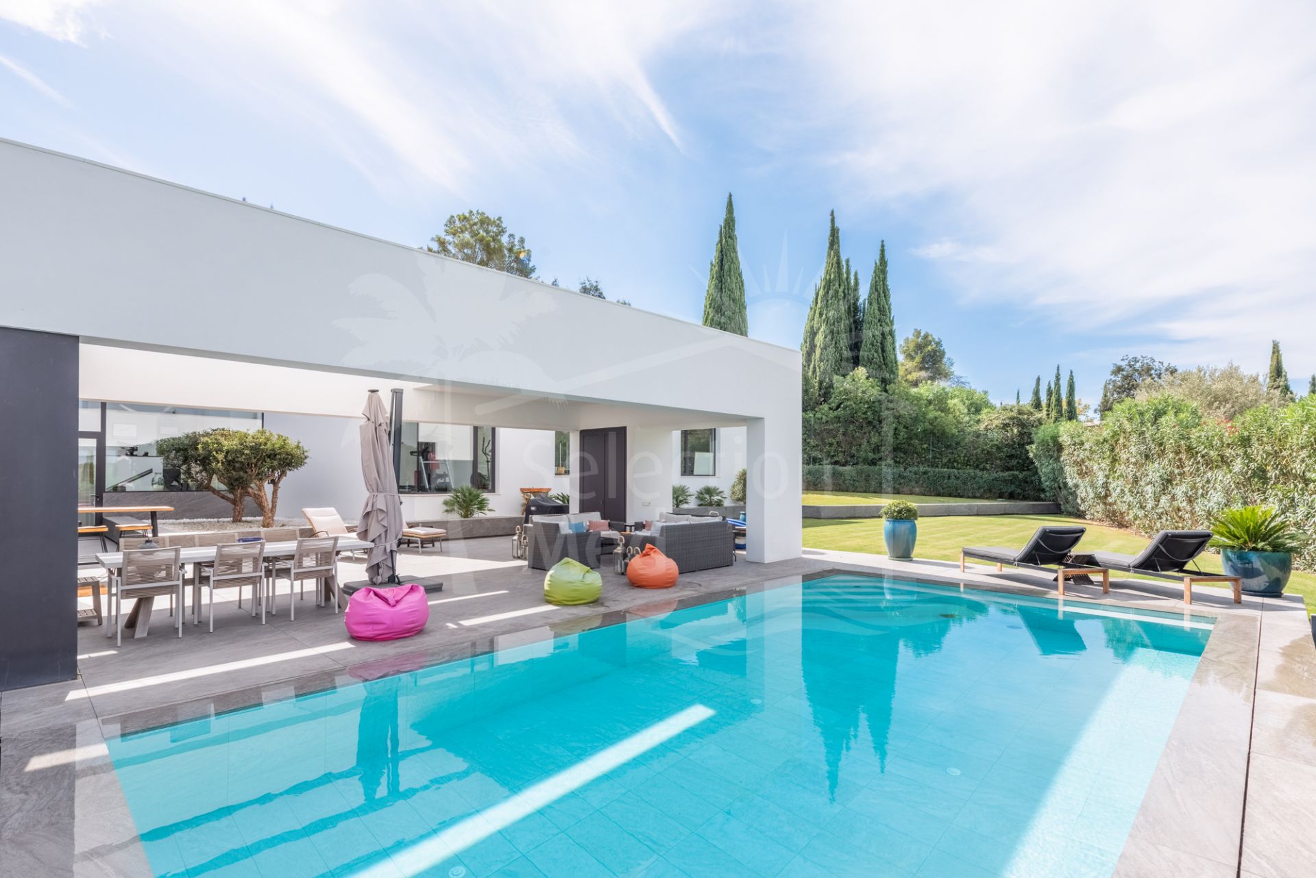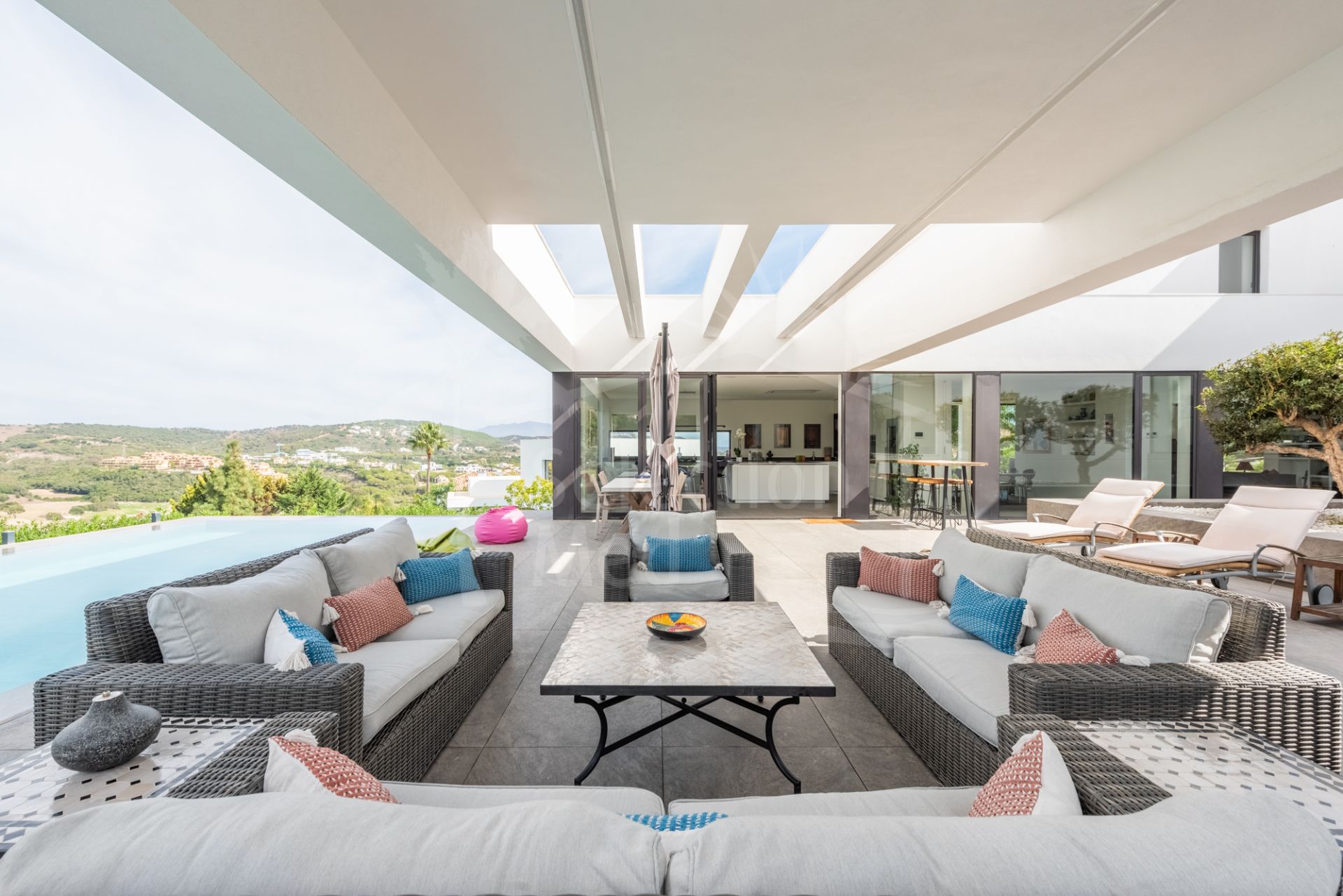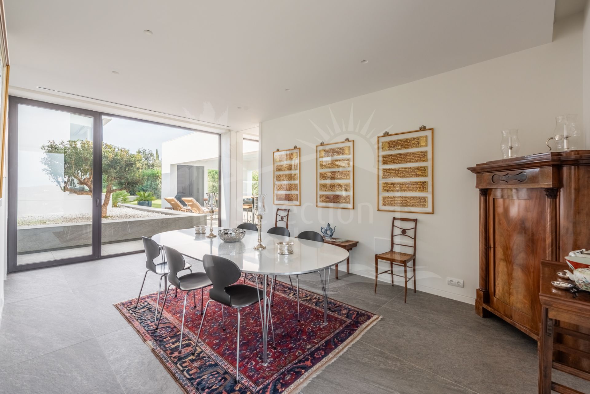 Villa à vendre à Zona F, Sotogrande Alto avec 5 chambres, 4 salles de bains, 1 toilettes, construit à 2018 et a piscine (privé), garage (privé) et jardin (privé). Dimensions: 650m² construit, 1644m² parcelle, 602m² intérieur et 48m² terrasse.